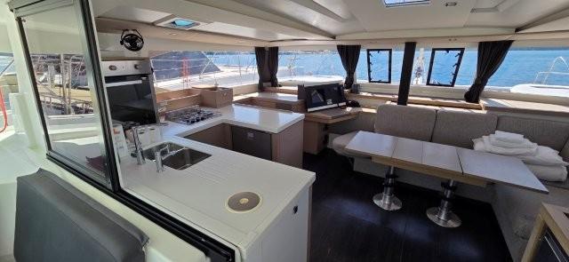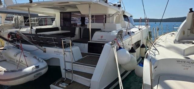 By inventing the Astréa 42, Fountaine Pajot Sailing Catamarans reaffirms its ongoing commitment to build and innovate based on its experience. The Astréa 42 builds on the strengths that have made the Saona 47 so successful: its inverted bow stands out as the trademark of the series. This innovative feature sketches out an elegant and dynamic silhouette, while creating stunning volumes inside the boat in spite of a relatively small overall size, with a mere 12.58 metres in length.