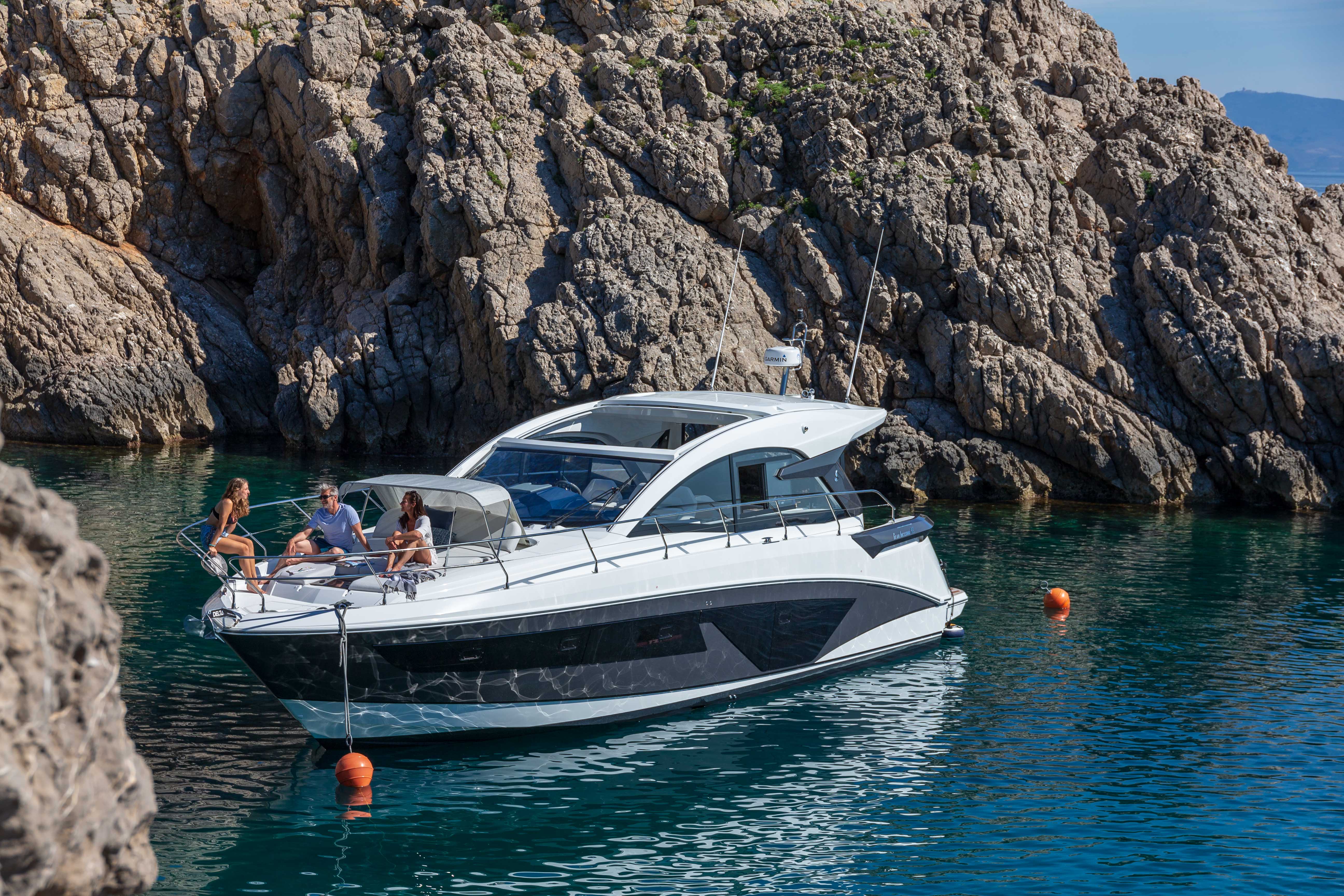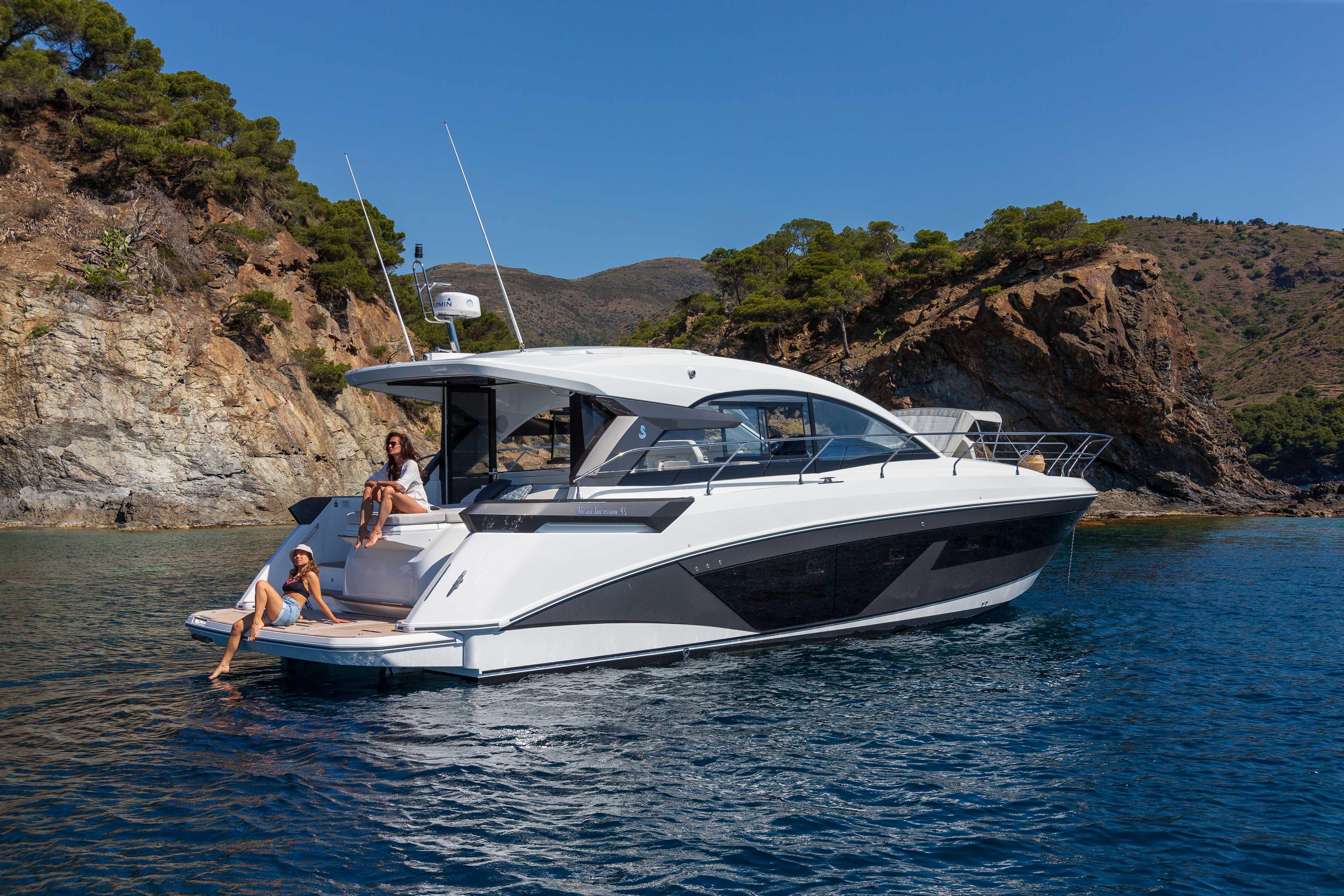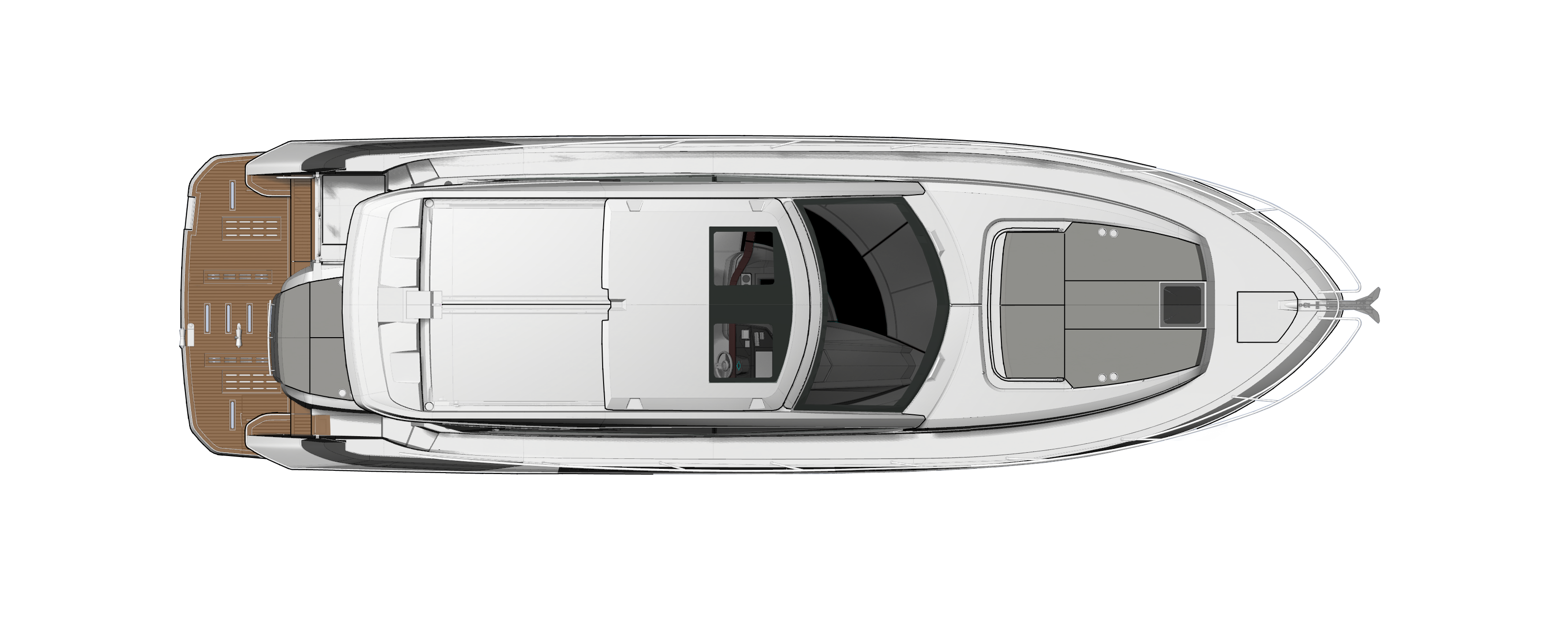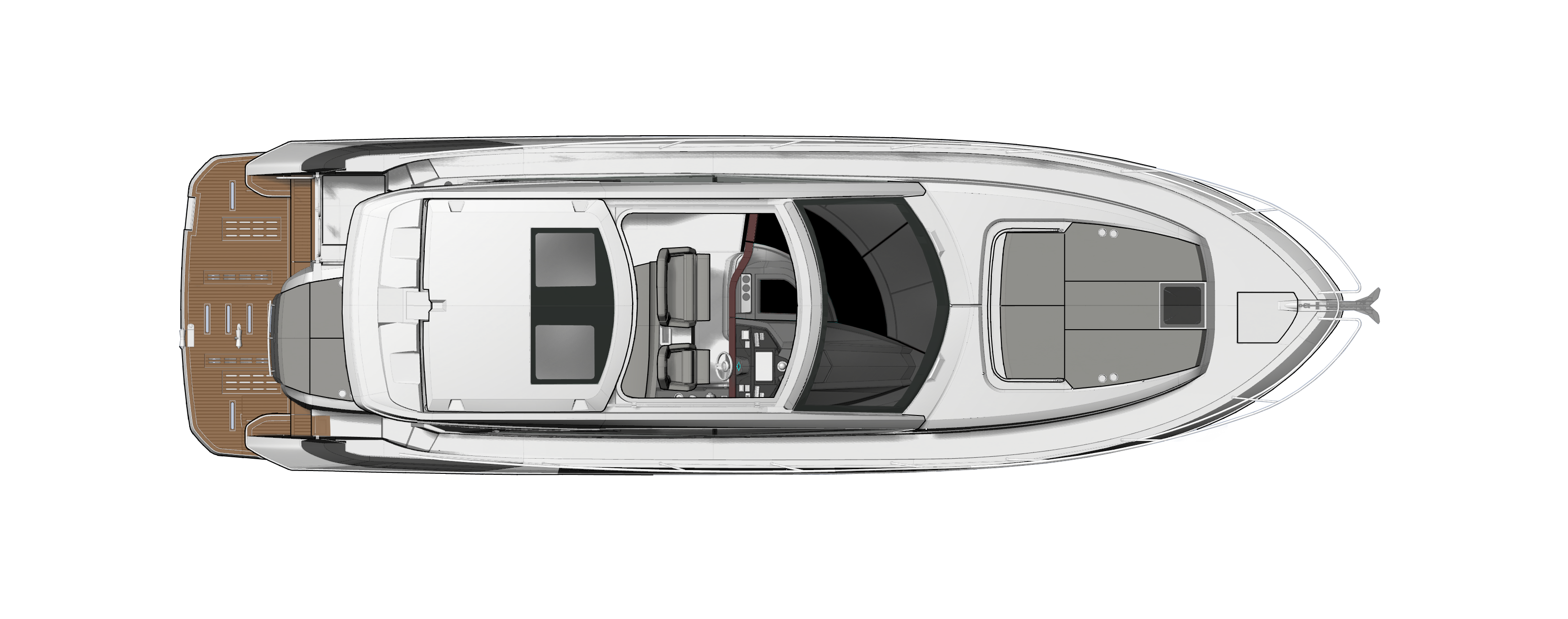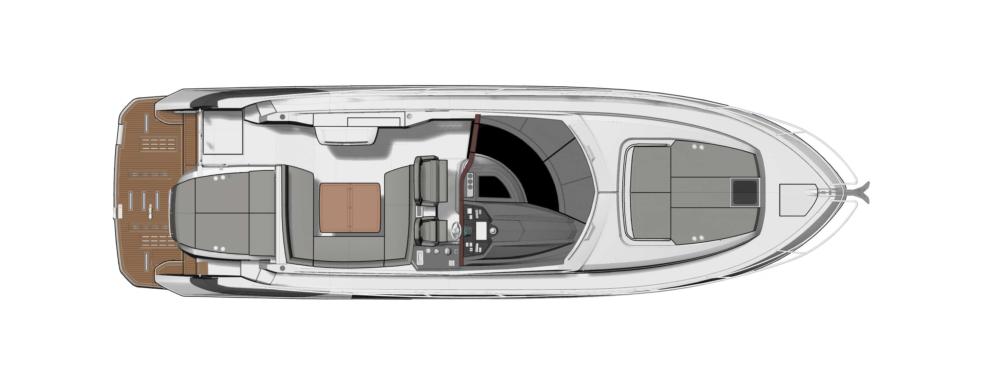 With its sporty look and excellent handling on the water, the Gran Turismo 45 guarantees that everyone will have a good time together on the boat. The vast sunbathing area to aft and the wide U-shaped cockpit seating offers passengers an ideal space in which to relax and chat.