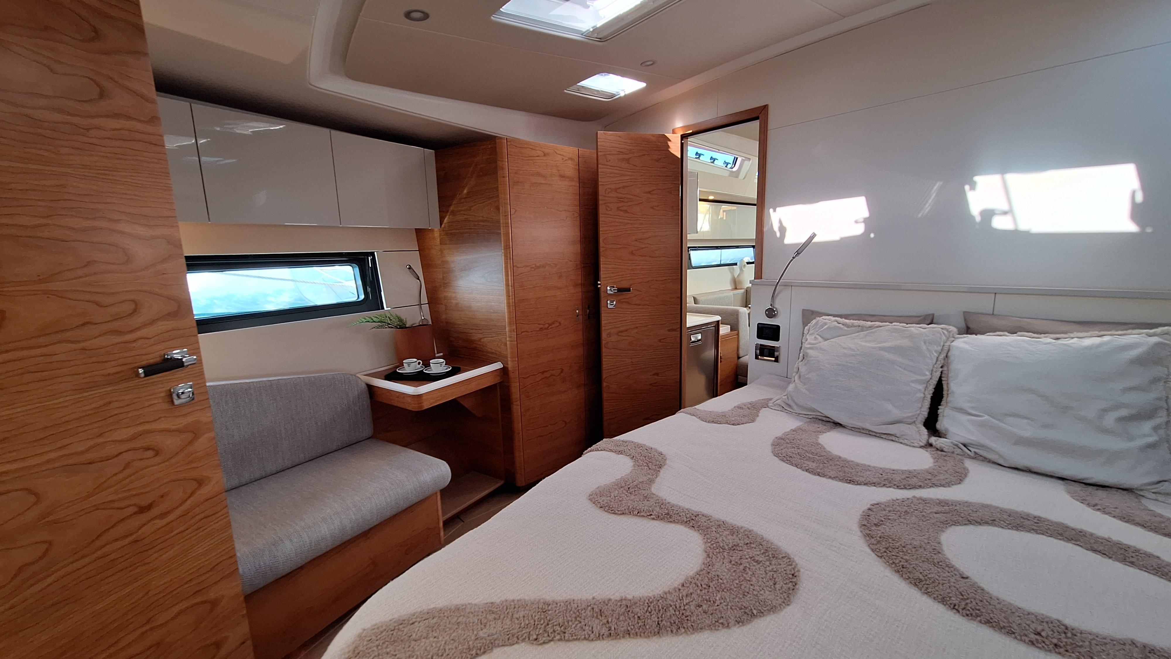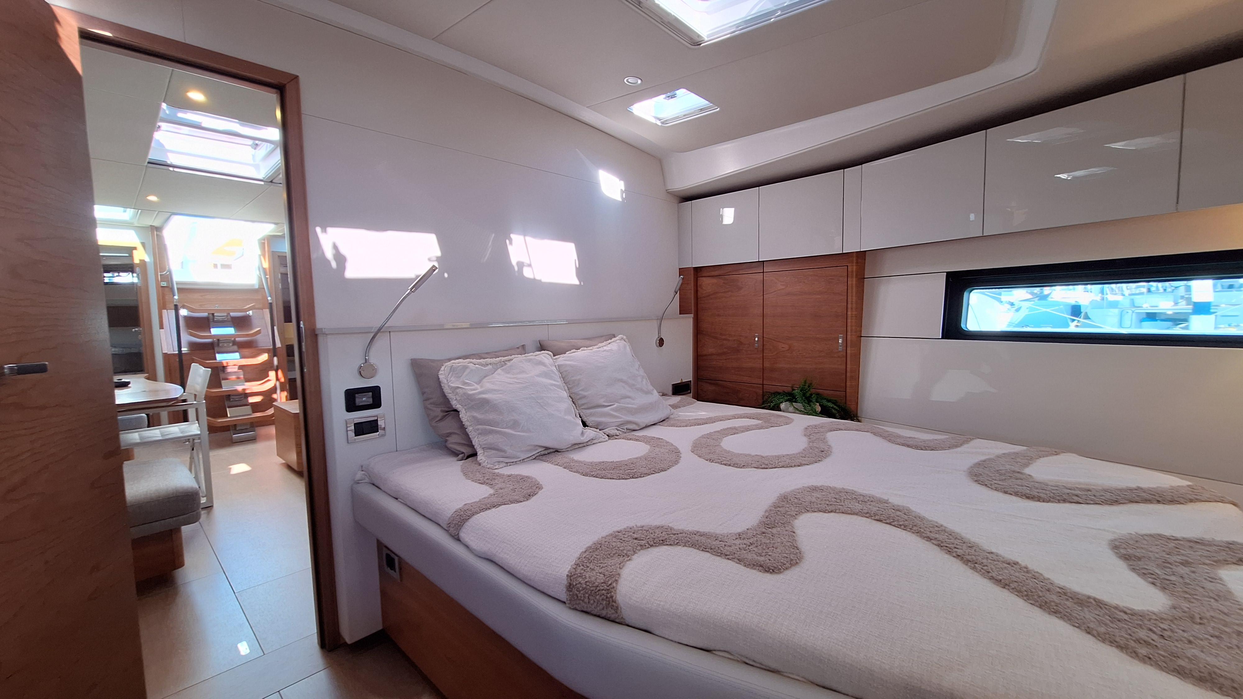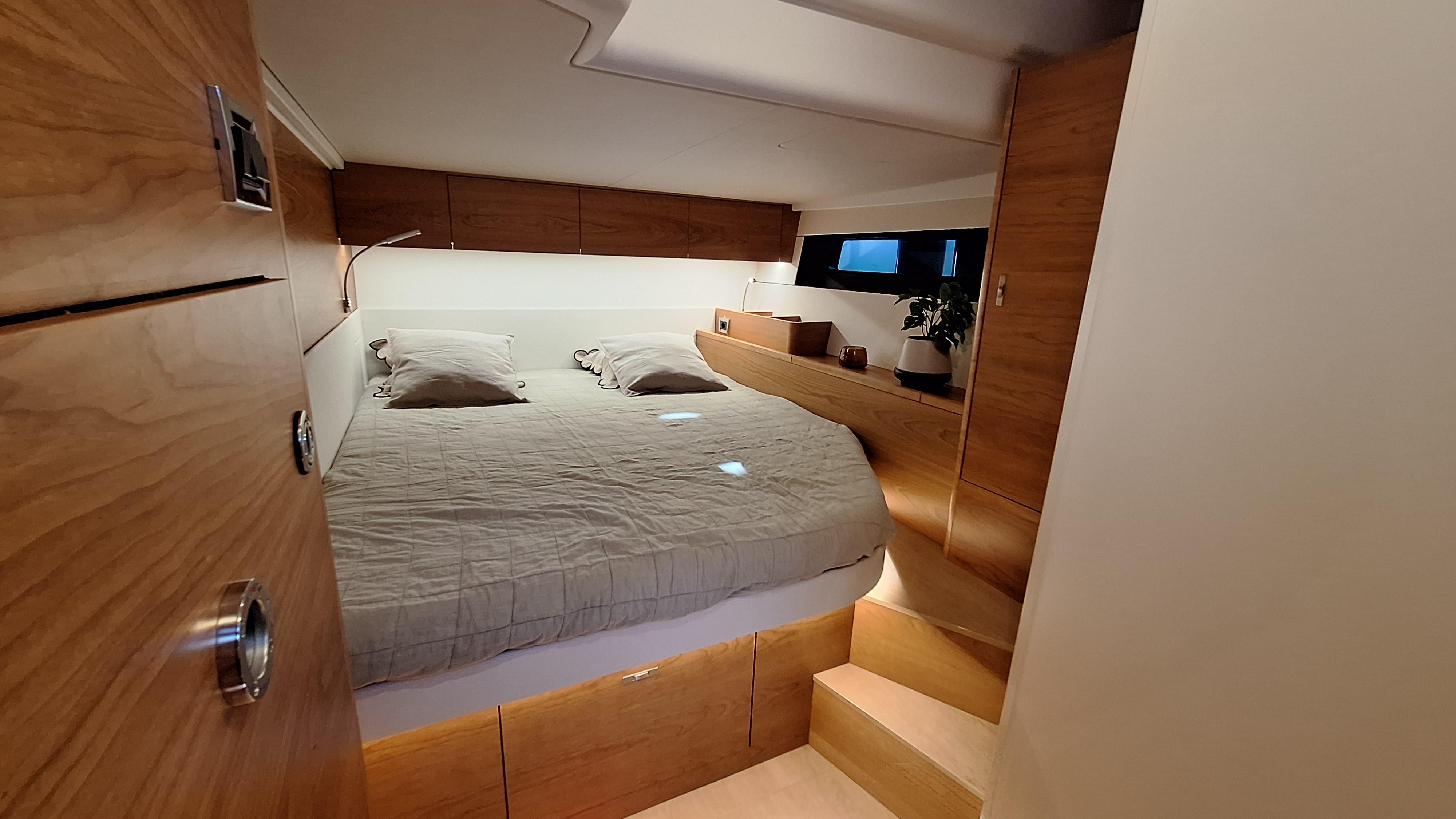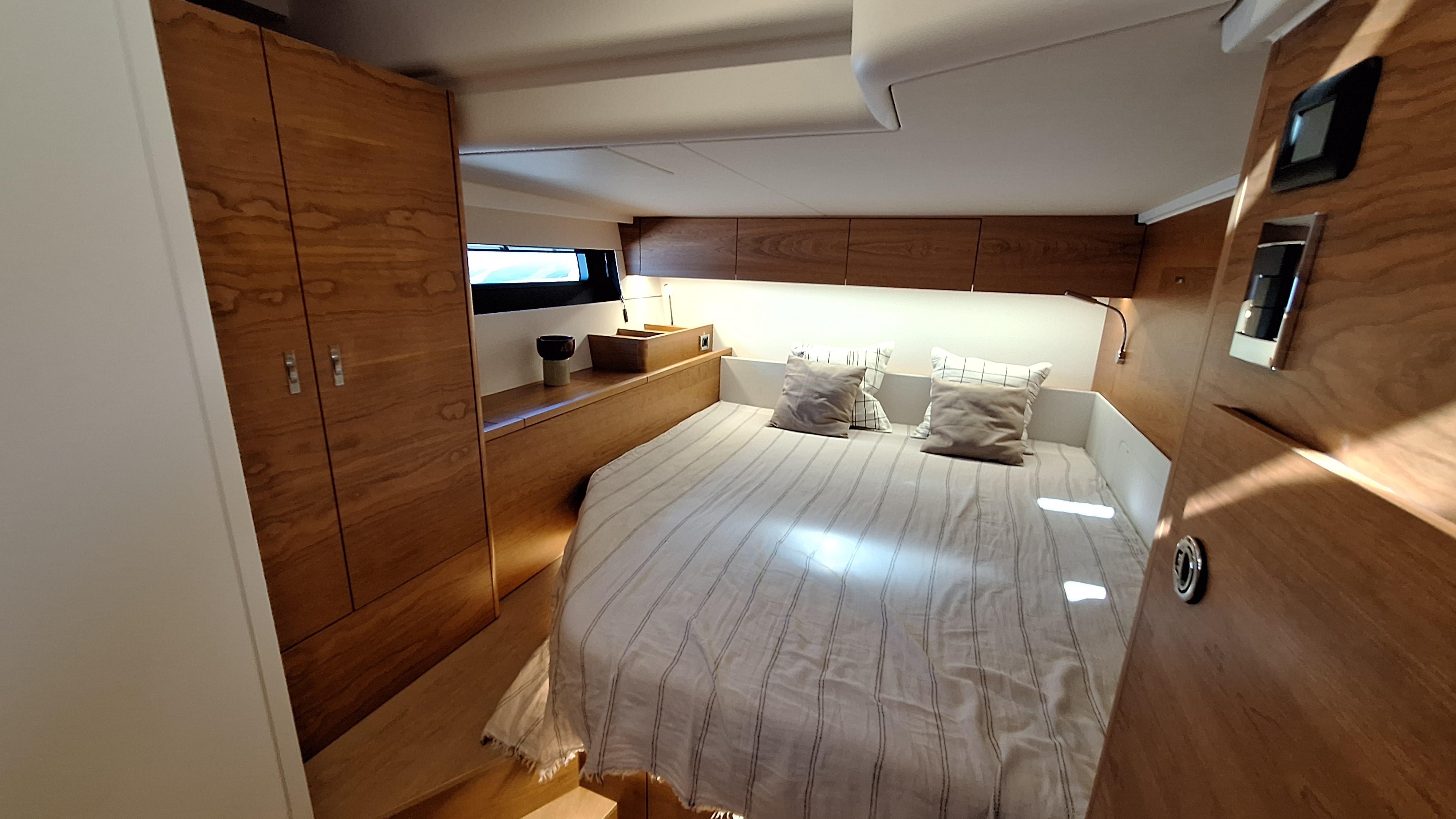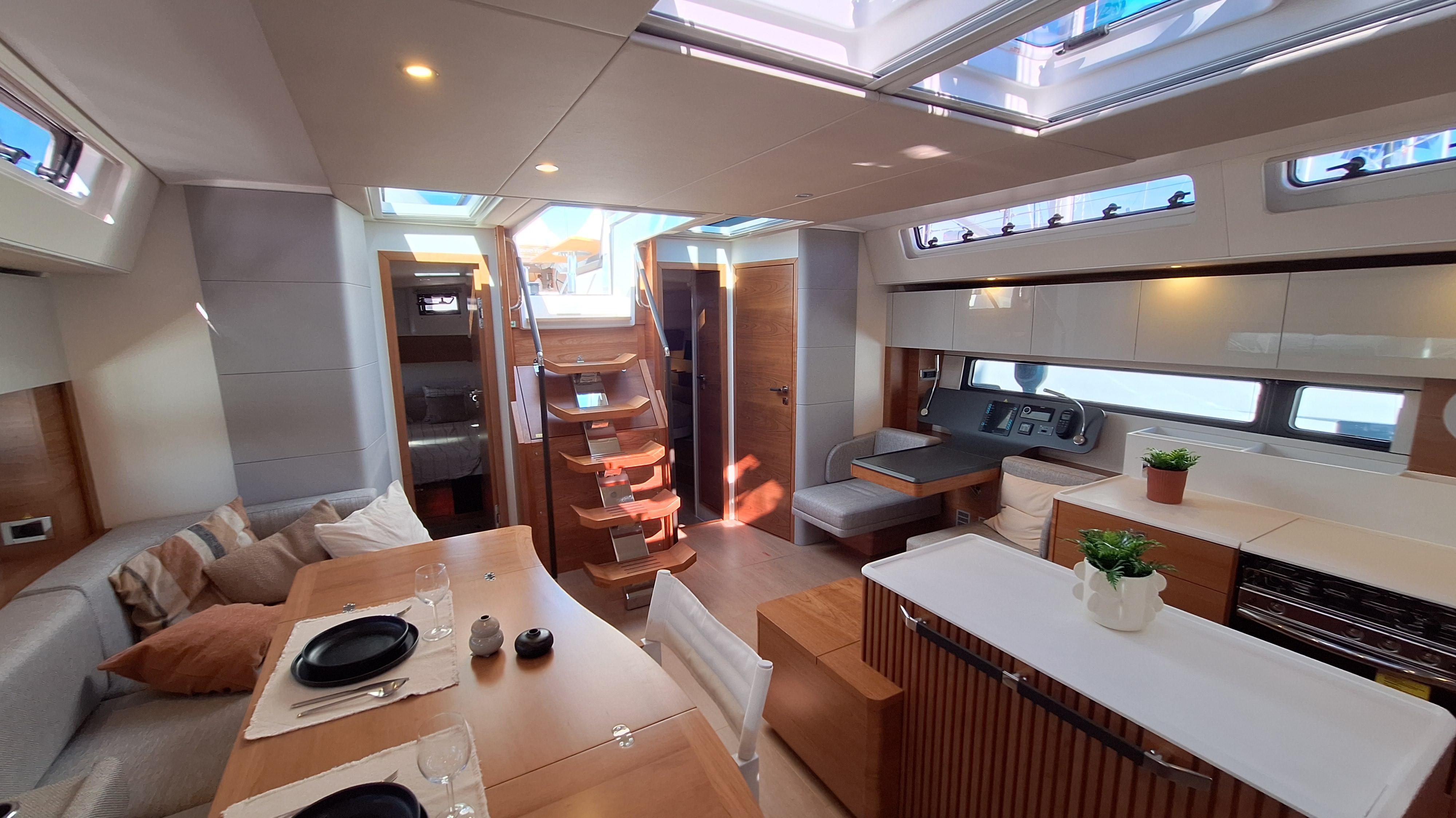 Ultimate Outdoor Comfort: The spacious cockpit is designed for easy single-handed sailing, while the revolutionary deck layout maximizes both comfort and performance. The hydraulic gangway and bathing platform provide easy access and enhance your on-water experiences.