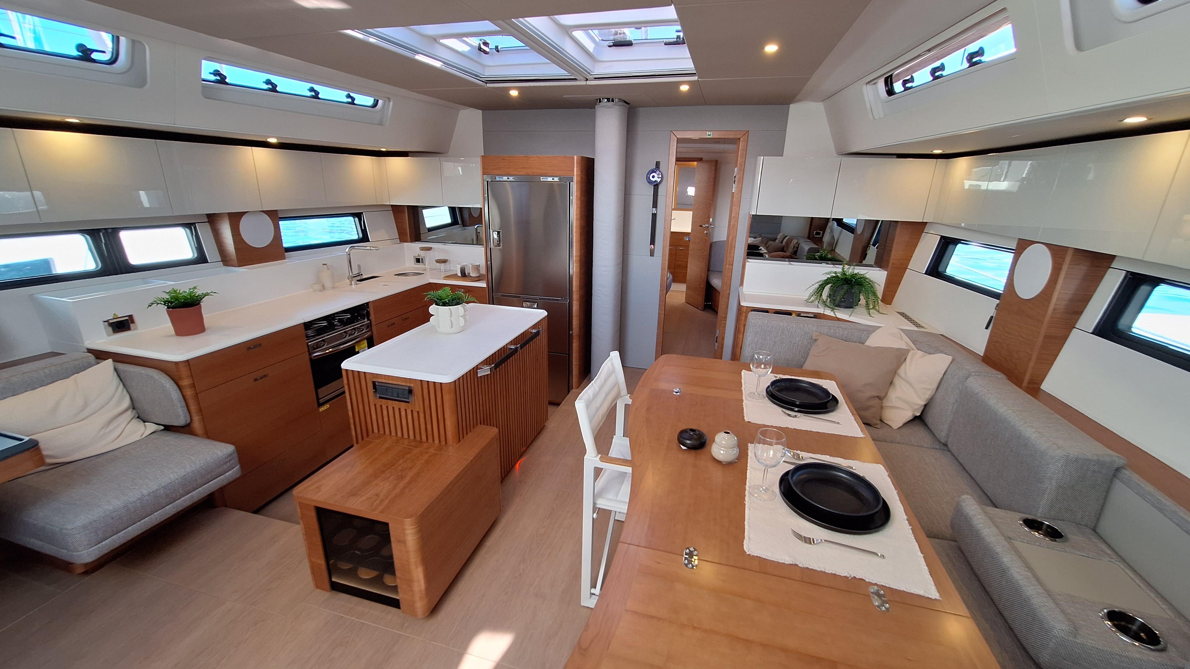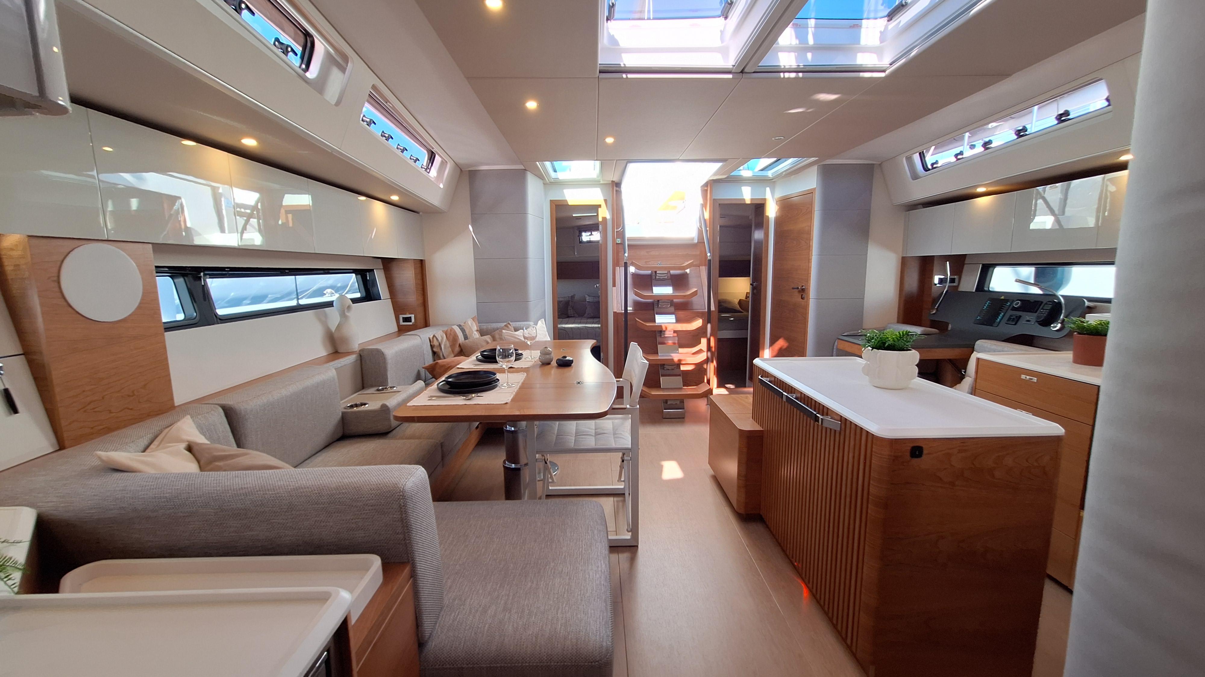 Elegant and Spacious Interiors: From the expansive owner’s cabin to the versatile saloon and well-appointed guest cabins, the Hanse 590 offers a luxurious and practical retreat on the water.