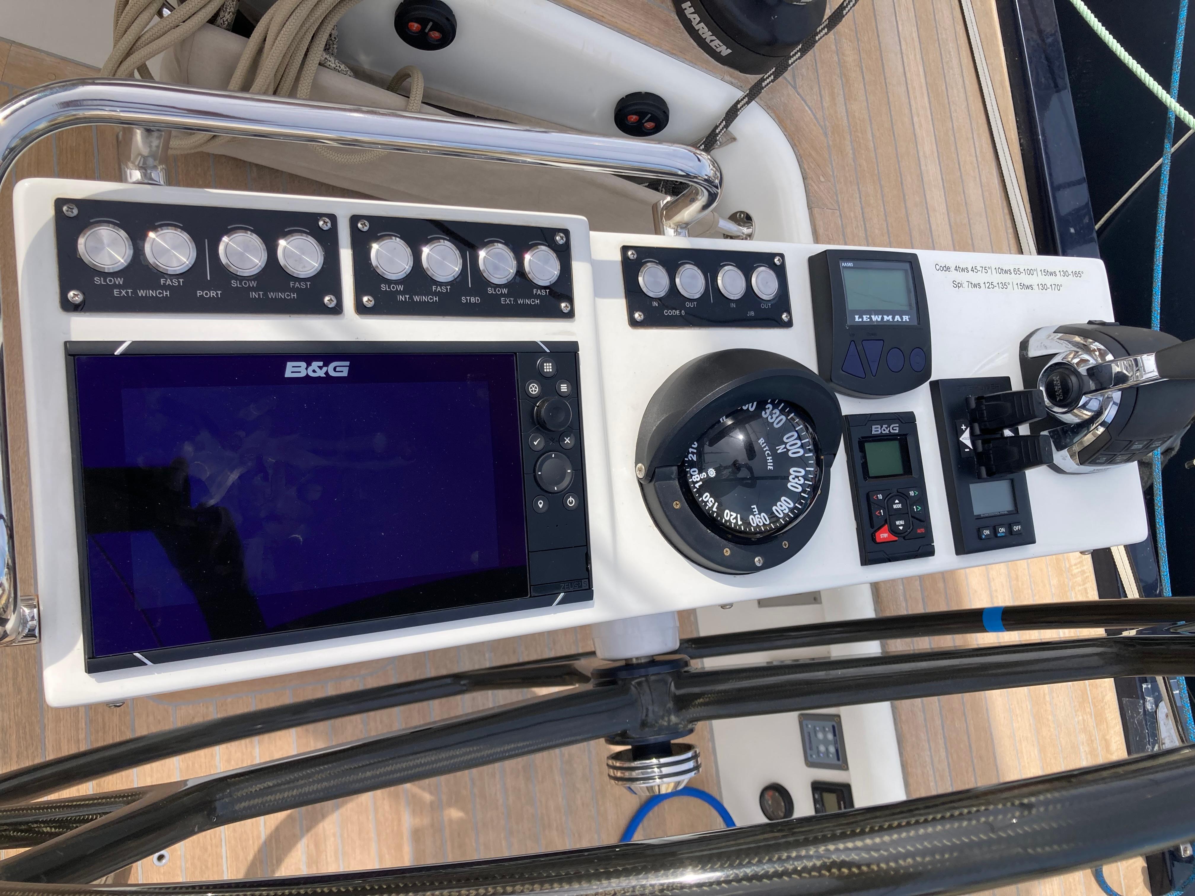 "NEMO" is a stunning Solaris 55 privately owned. It is pretty difficult to find what could be missing on that yacht. 230V generator, bow ans stern thrusters, air conditionning, all winches electric, electrical in-boom furling main sail, tender garage, black painted mast, full set of electronic from B&G including 3 x multifonctions display to whom one of 16'', dark blue painted hull, full teak decks....We know well that yacht that we sold ne to the present owner.
