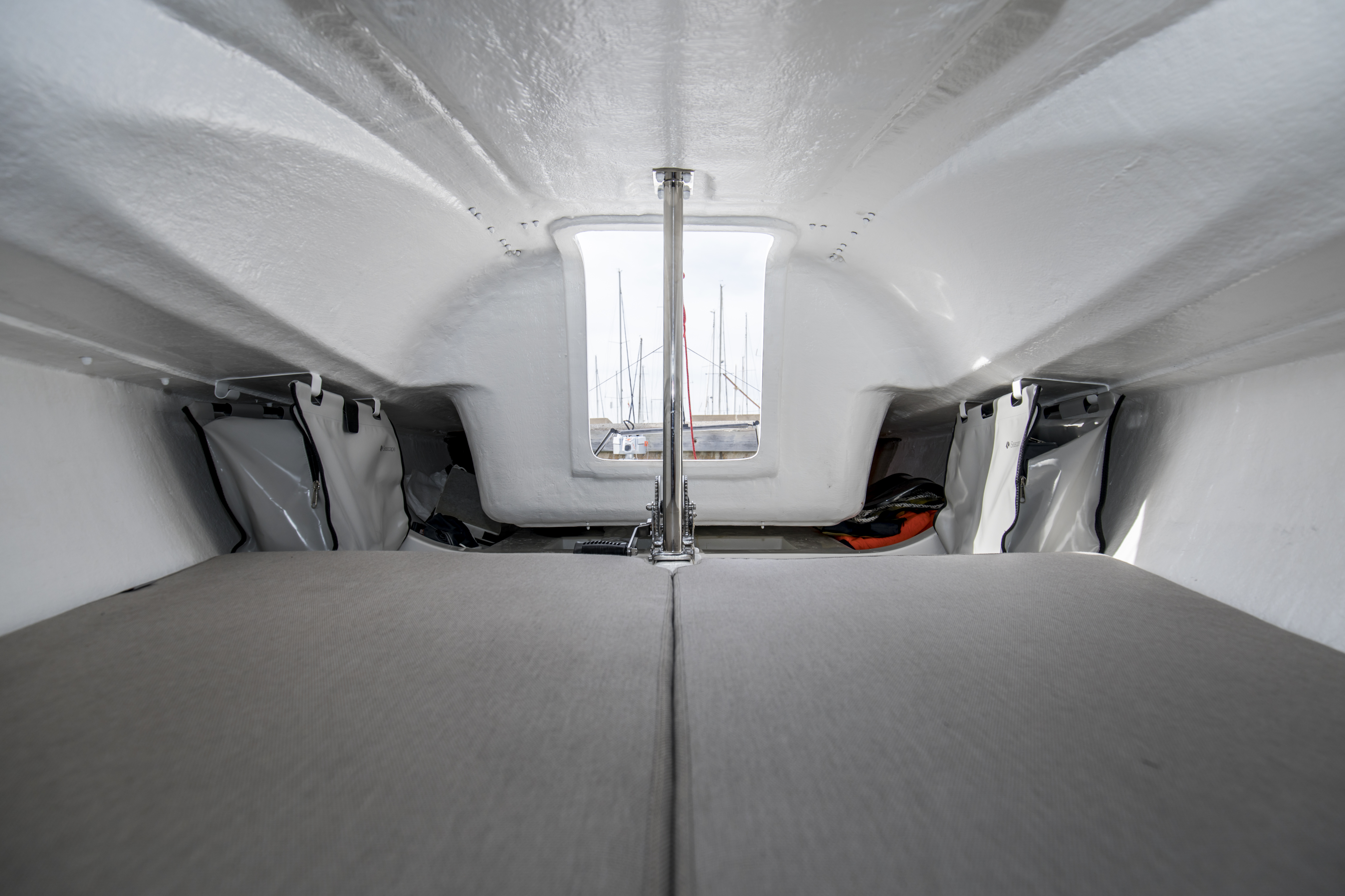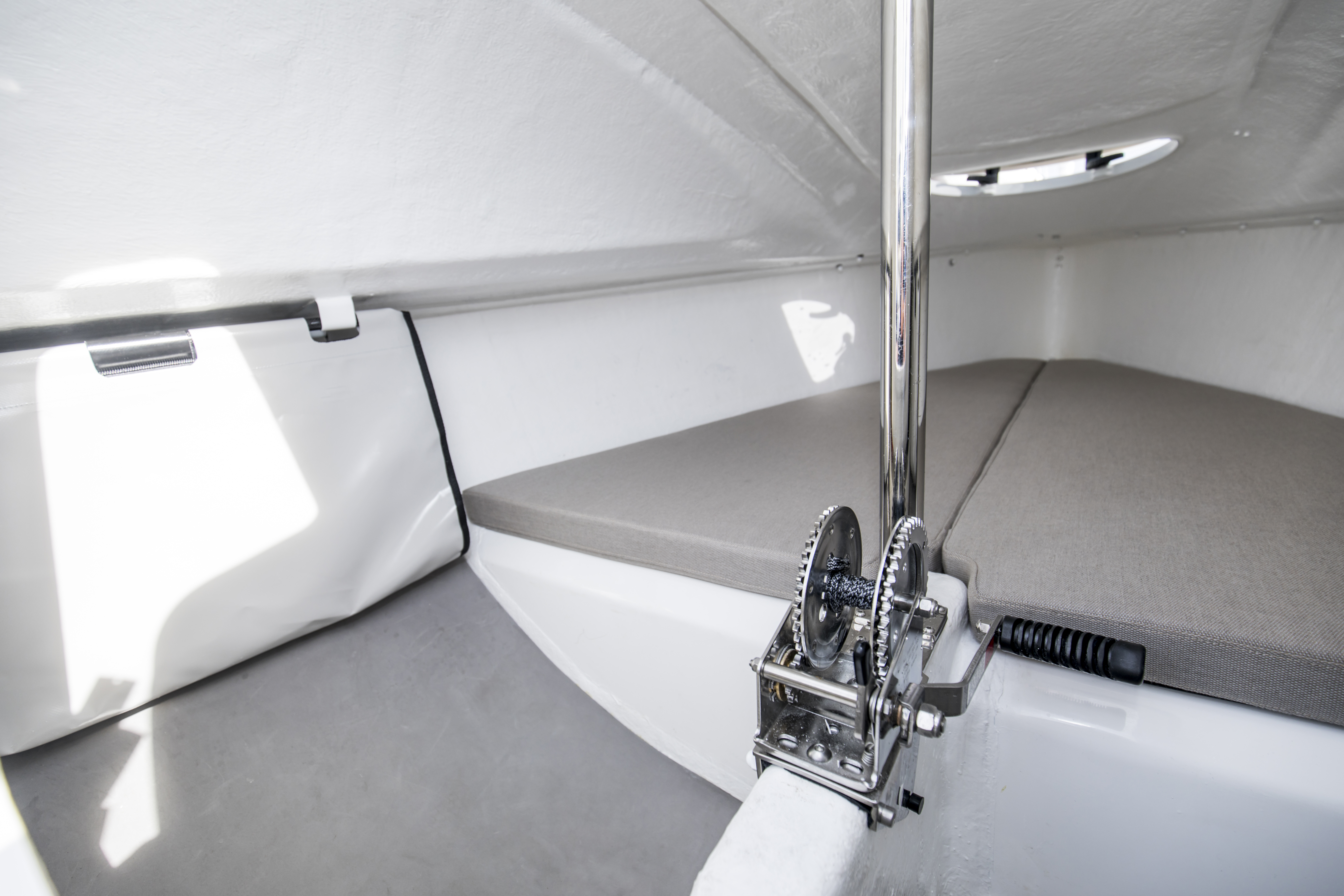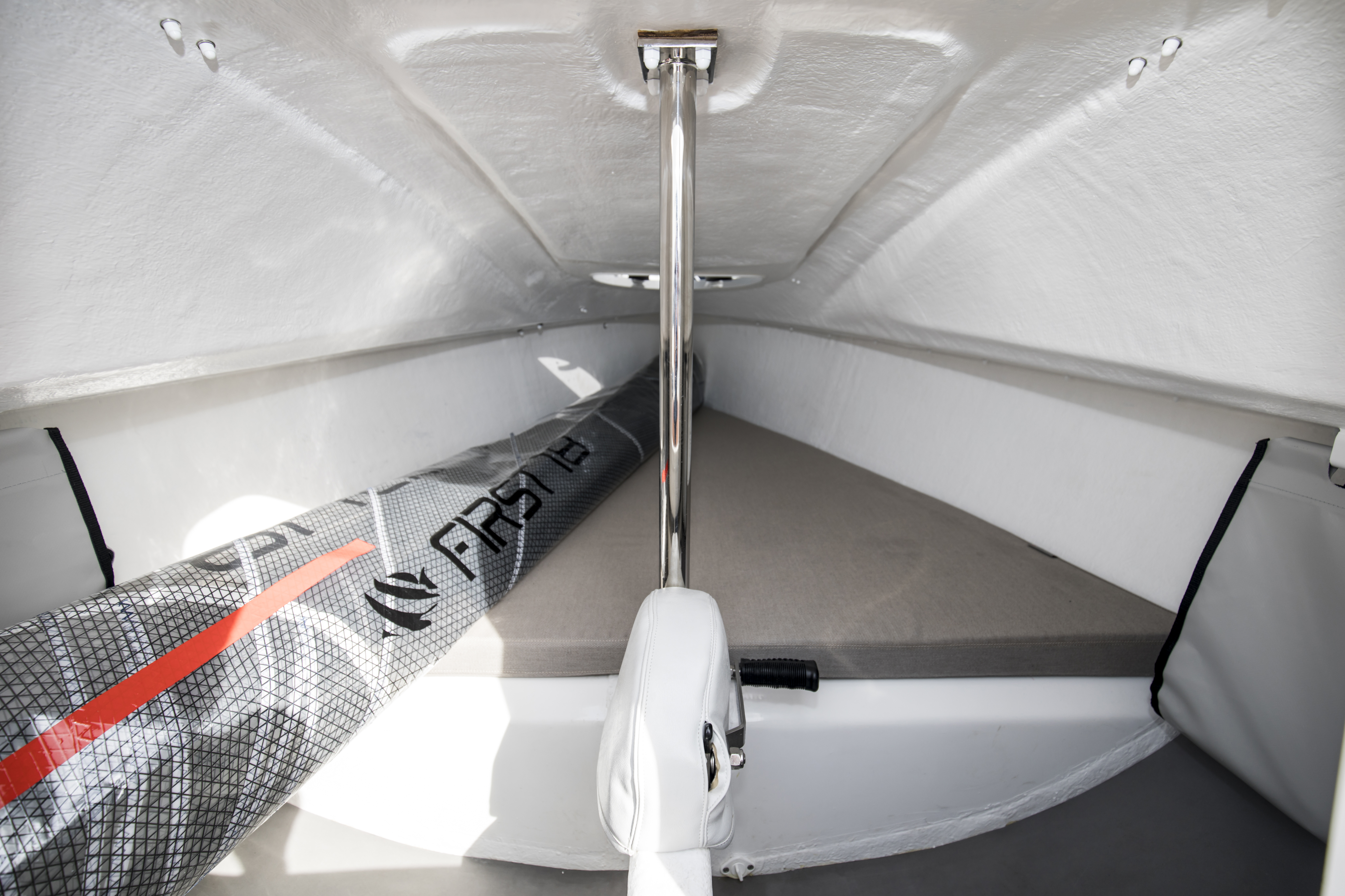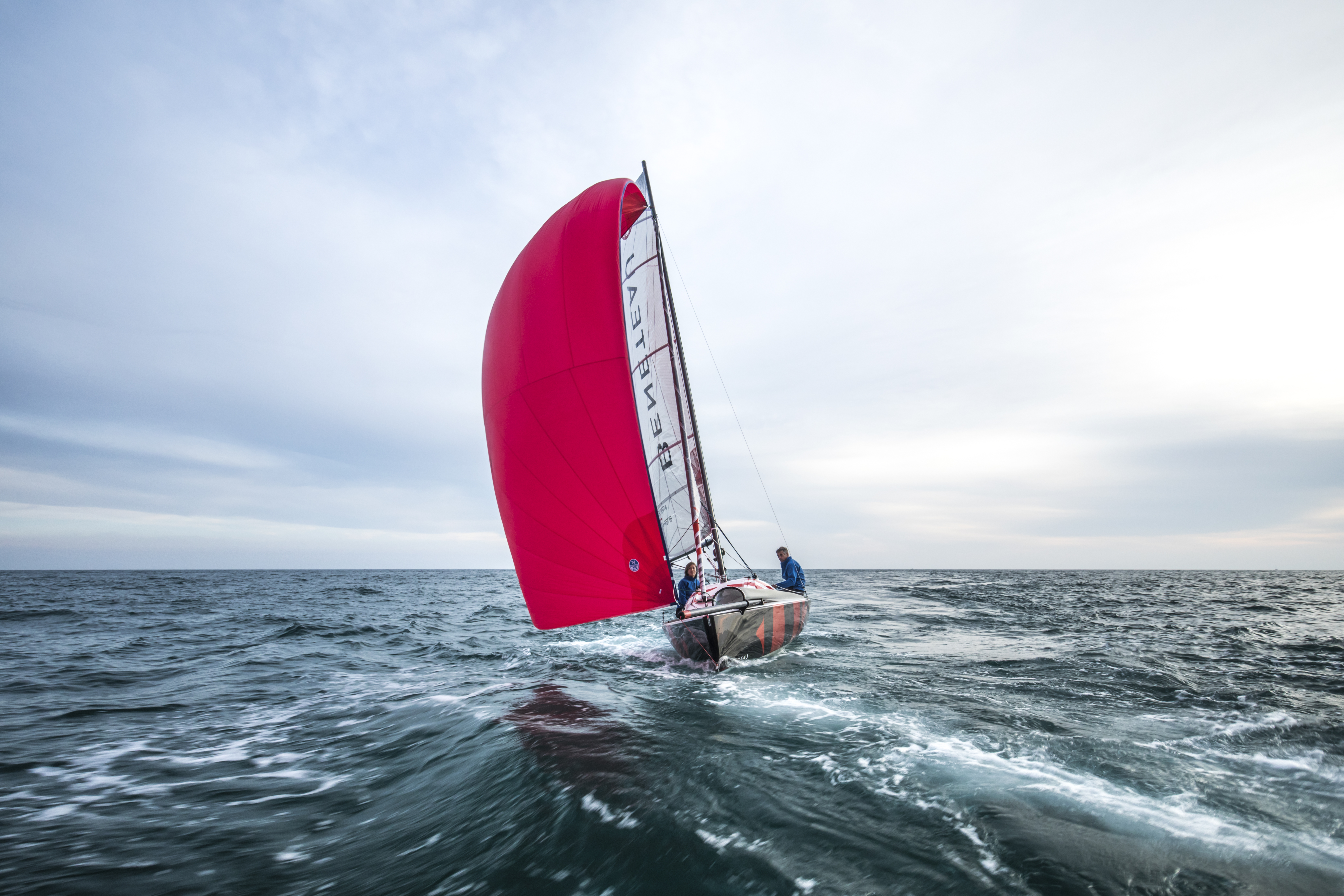 A large progressively chined hull gives you a taste of what is to come. The First 18 offers speed and sensations, whatever your programme. Stable and lightweight, with a planning hull and high-performance rigging, the First 18 makes the most of the slightest puff of wind to reach speeds that can equal it! Stiff in a breeze, she is also perfectly at ease when the wind picks up. Certified for four people aboard, the First 18 handles easily with a crew of two or solo, even under spinnaker. Thanks to her lifting keel, you can beach wherever you want.