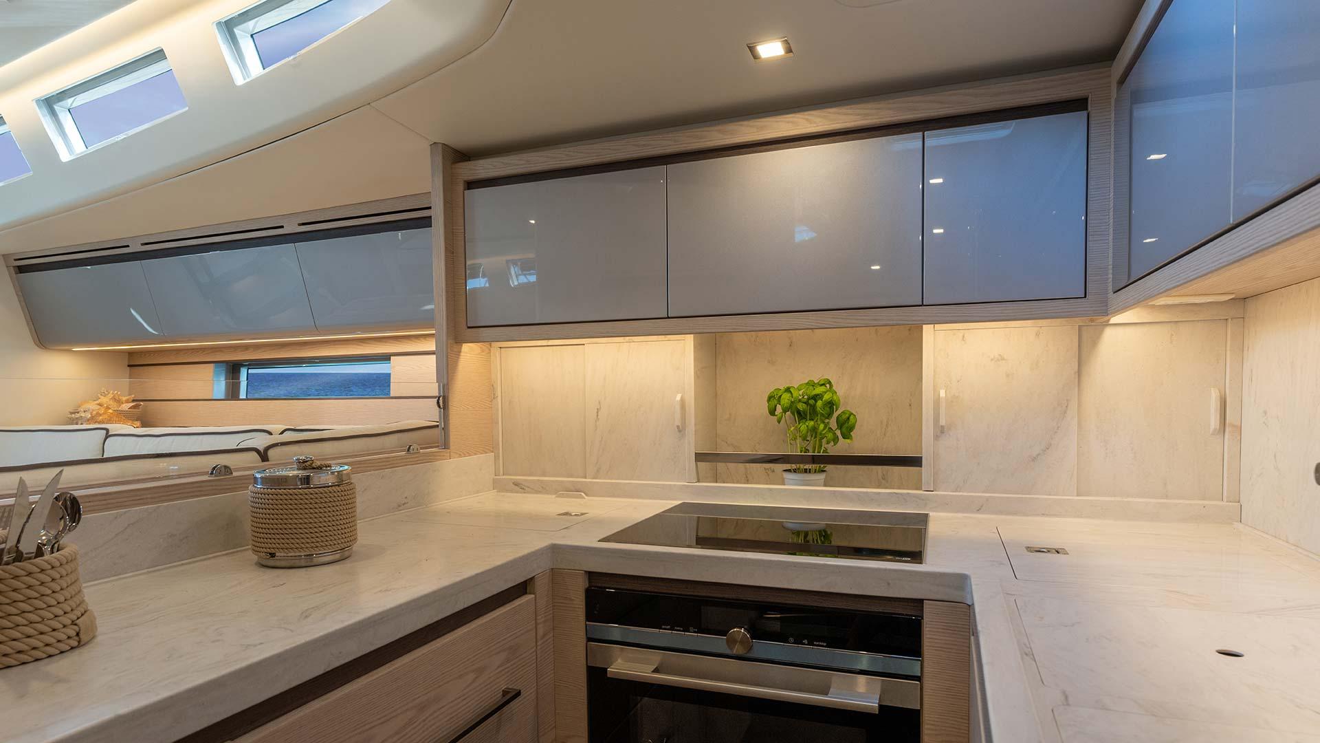 Particolare attenzione è stata data al risparmio di peso al fine di poter montare un motore Yanmar da ben 195 hp che permette prestazioni incredibili anche in assenza di vento. A motore raggiunge e supera ben 12 nodi di velocità di punta!!!