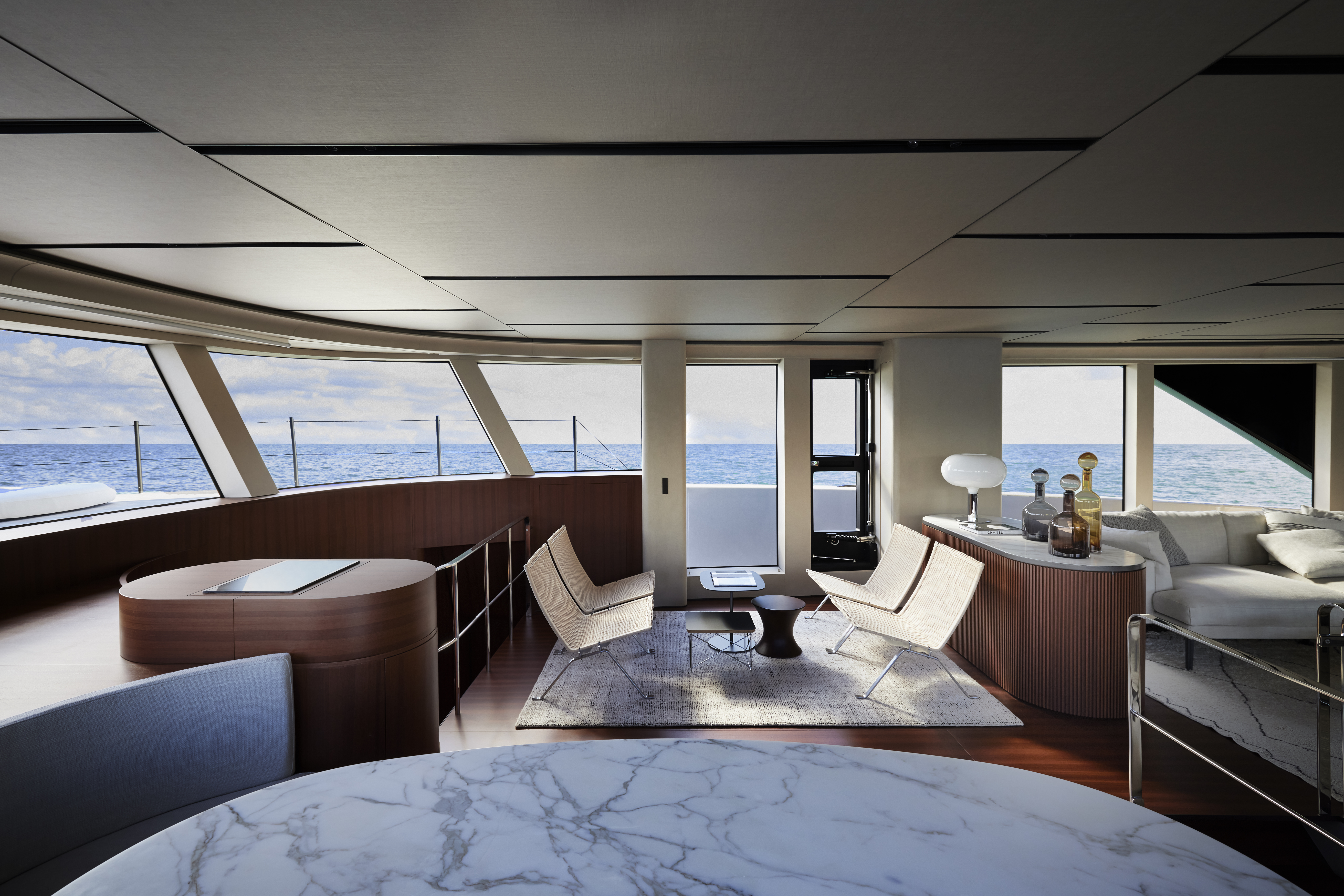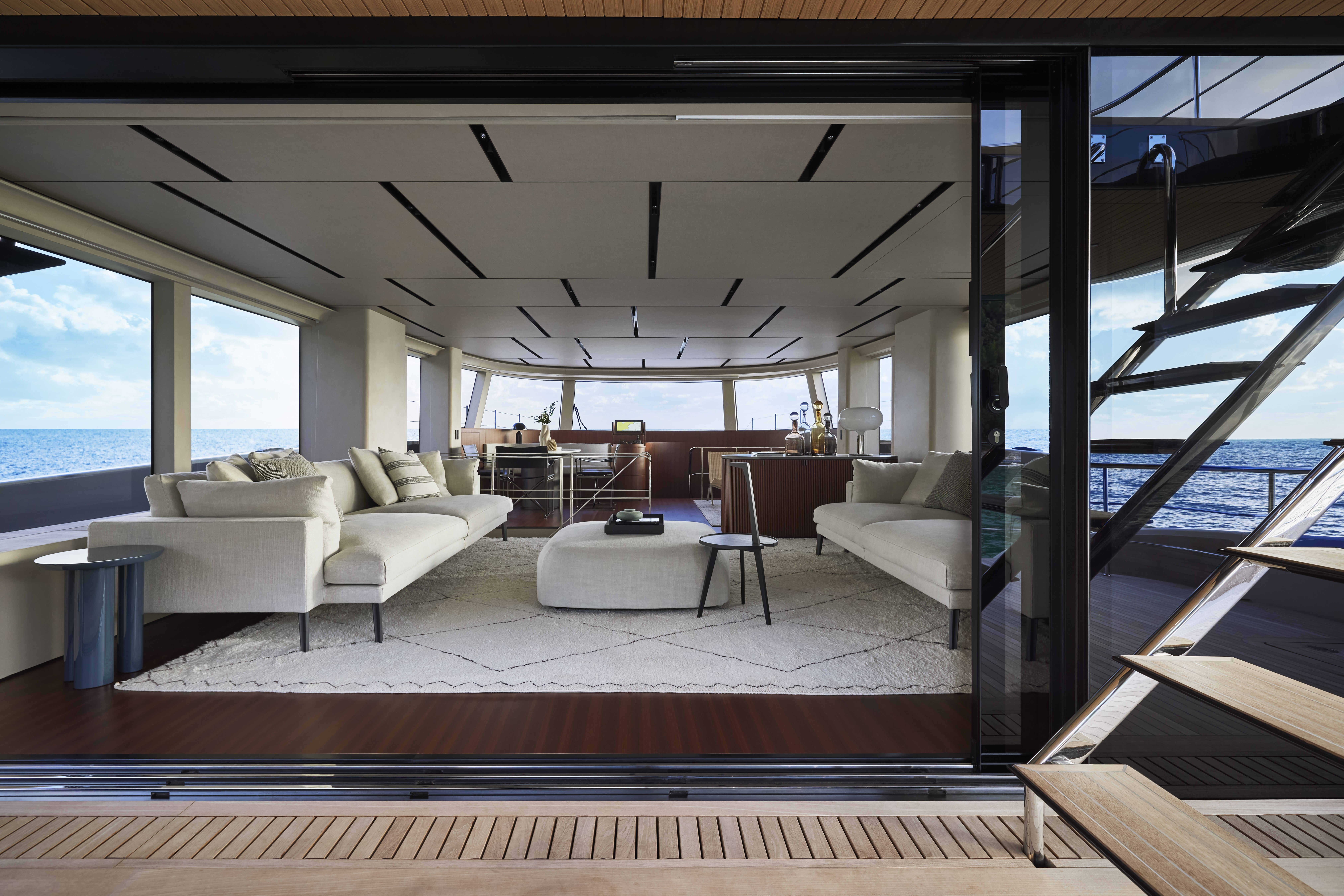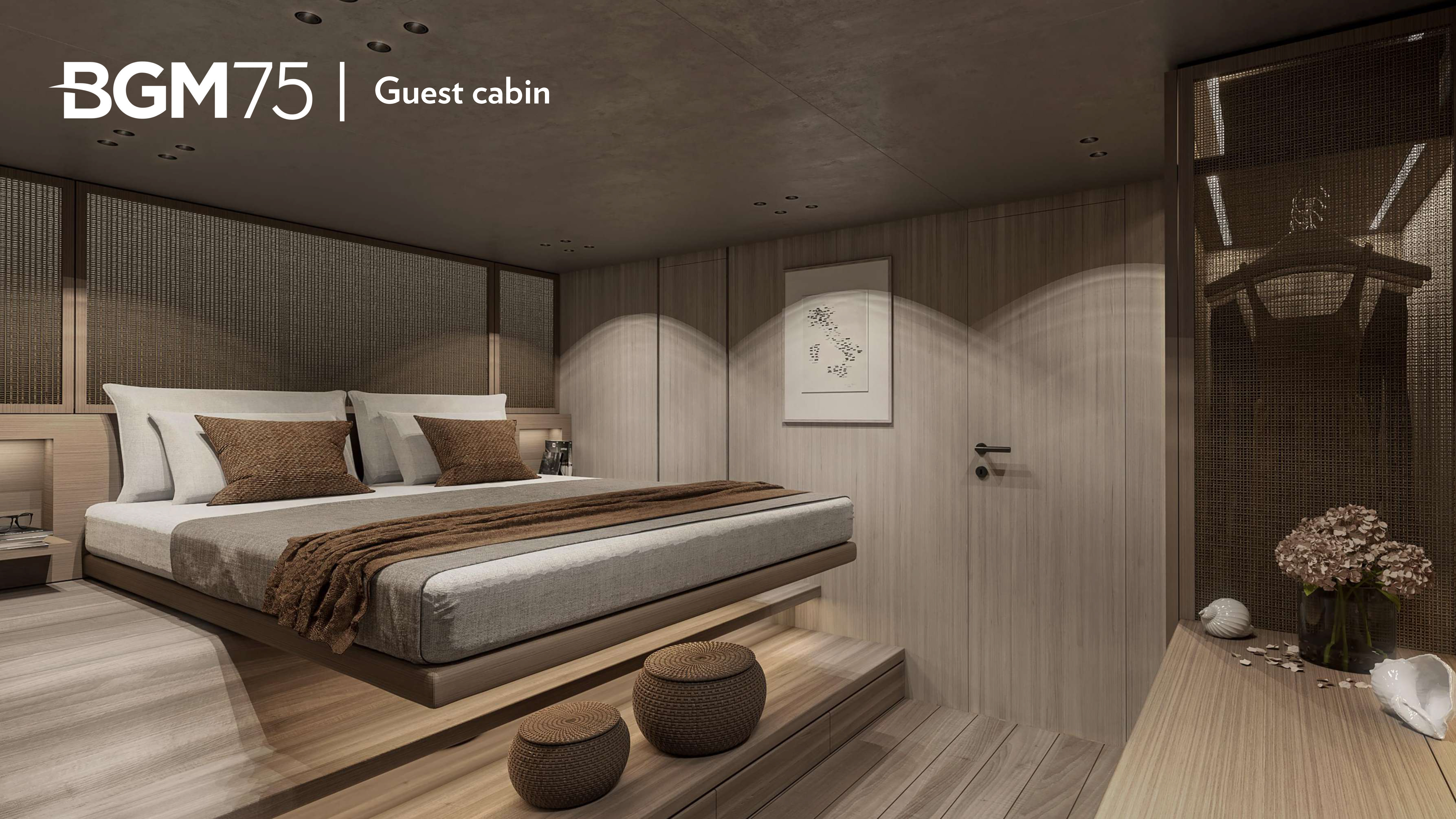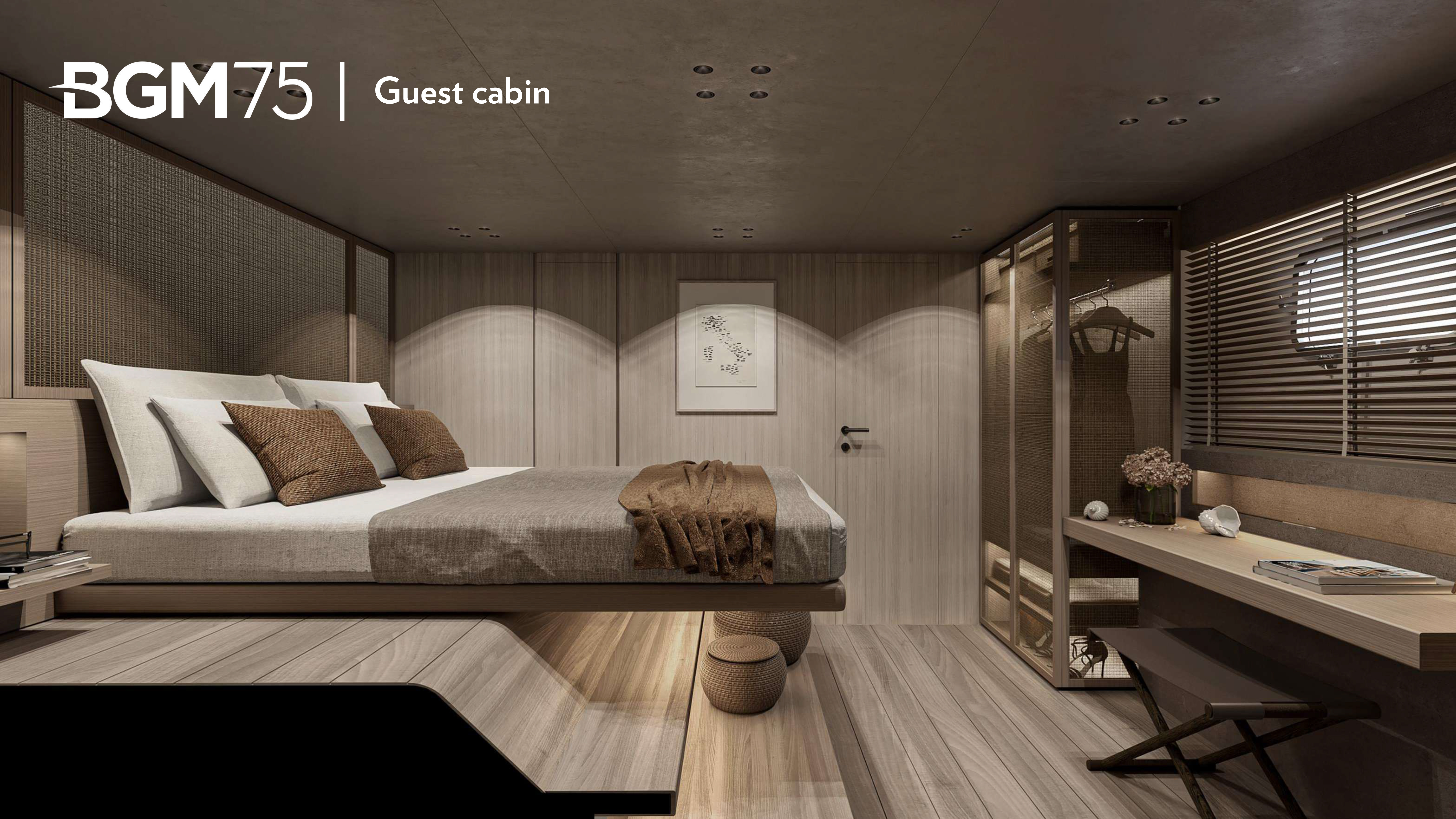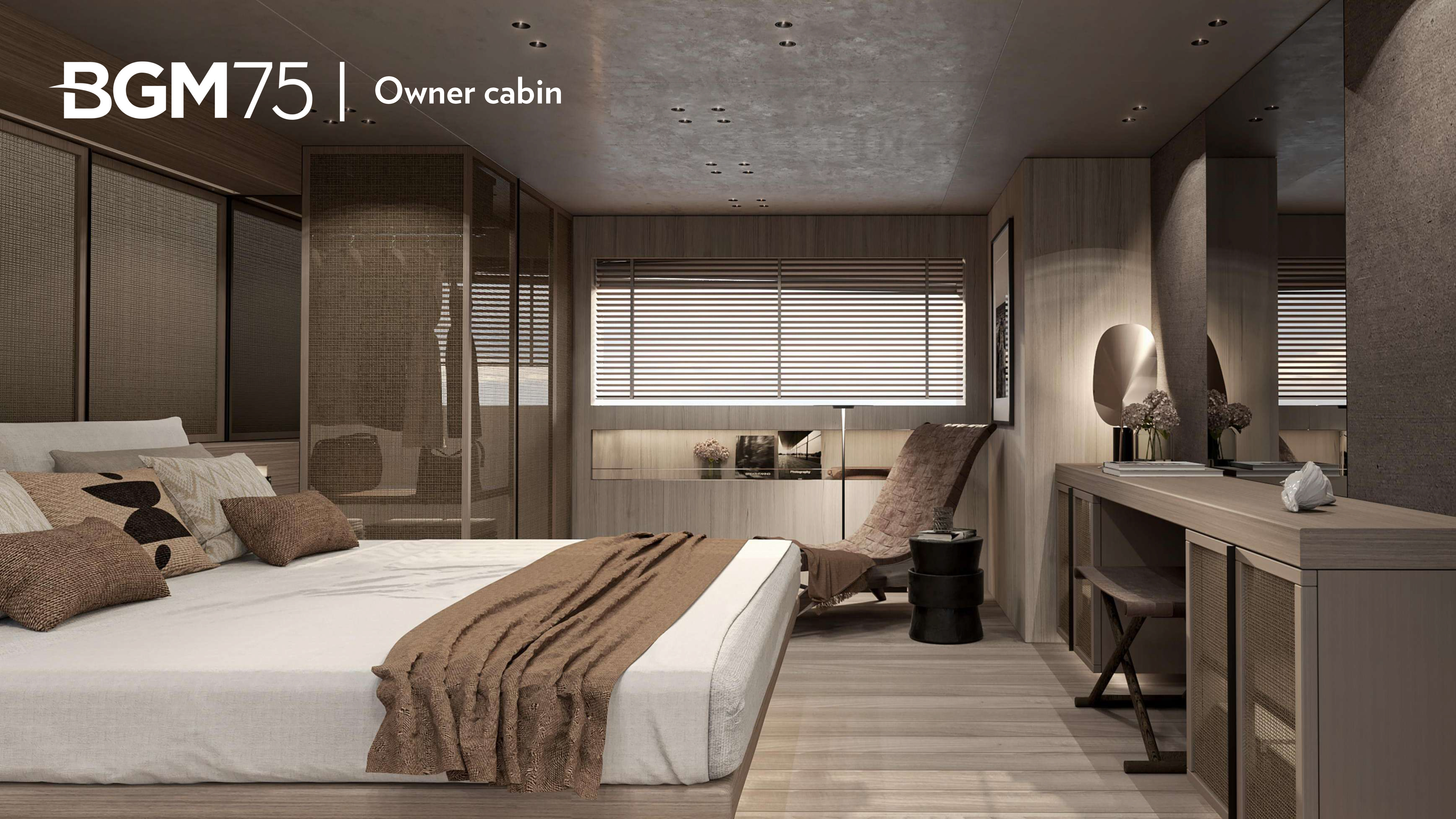 The BGM75 hull design delivers excellent seaworthy credentials, and protective sidewalls result from extra sturdy construction. A spacious beach area and generously sized saloon create exceptional comfort onboard. And movement around the yacht is made effortless with connected cockpits, optimised helm station position, and wide visibility. Inside, the sumptuous interior design boasts meticulous attention to detail and exudes understated elegance.