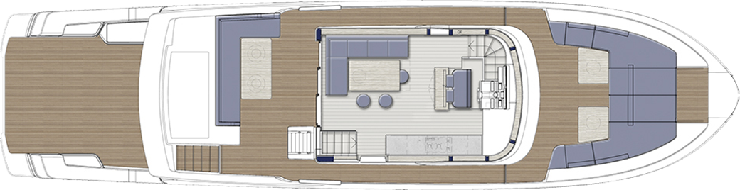 The revolutionary design of the Bluegame BGX73 features a layout not seen before in a 73-foot yacht. Combing elegant lines and spacious living areas, the centrally located master cabin provides easy access to a private lounge and communal living areas. Ample glazing throughout makes interior spaces light, and bright and rippled reflections of the ocean create a magnificent connection with the sea. A fast and accomplished seagoing yacht, the smooth throttle response and balanced helm create an effortless driving experience.