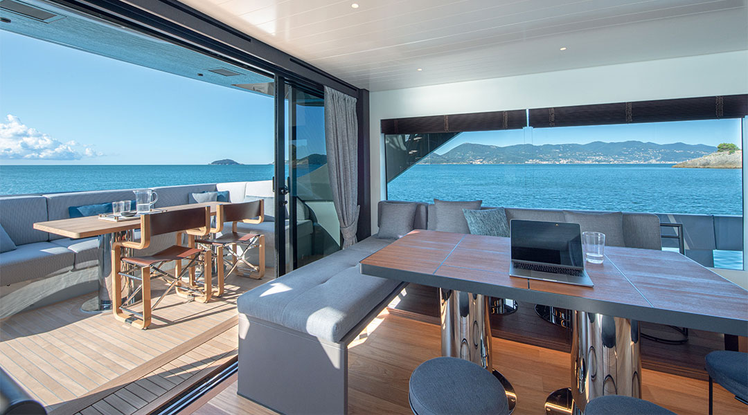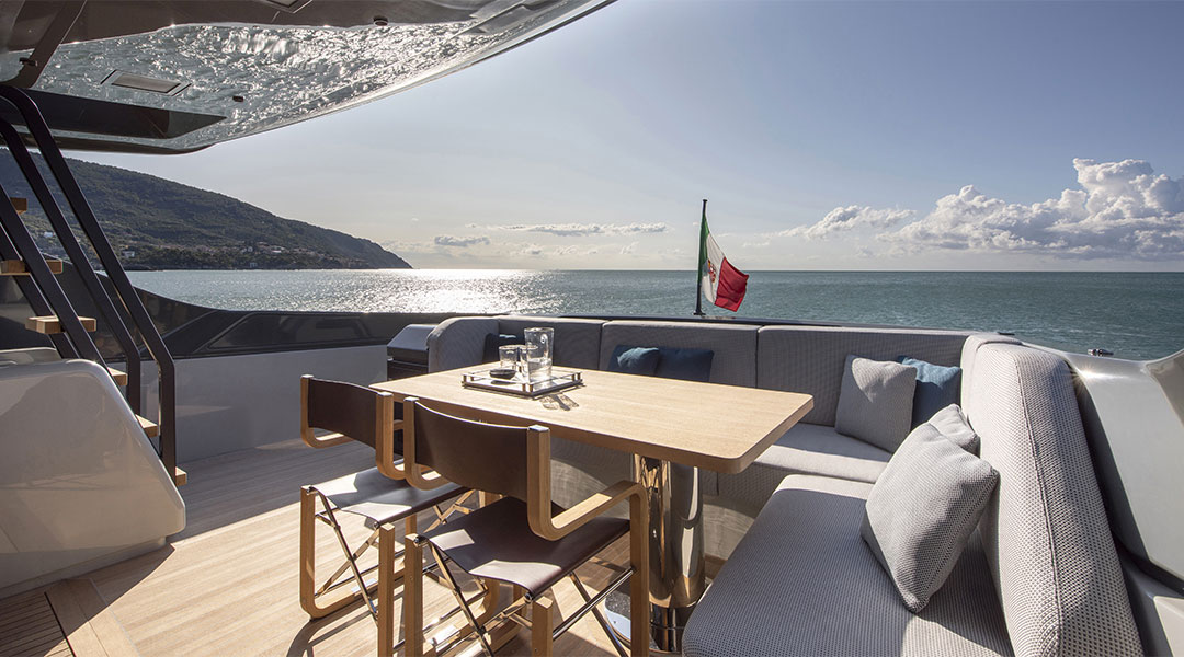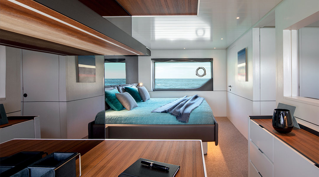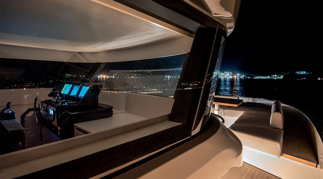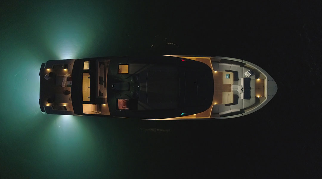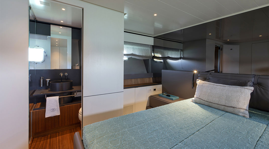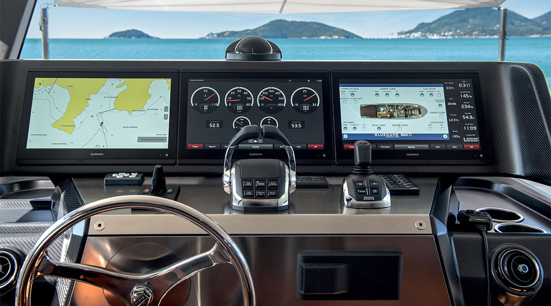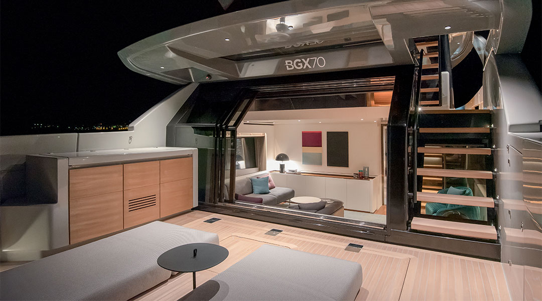 The revolutionary design of the Bluegame BGX73 features a layout not seen before in a 73-foot yacht. Combing elegant lines and spacious living areas, the centrally located master cabin provides easy access to a private lounge and communal living areas. Ample glazing throughout makes interior spaces light, and bright and rippled reflections of the ocean create a magnificent connection with the sea. A fast and accomplished seagoing yacht, the smooth throttle response and balanced helm create an effortless driving experience.