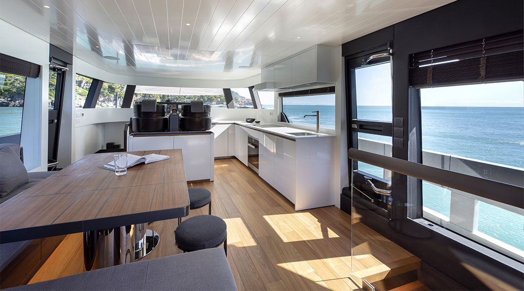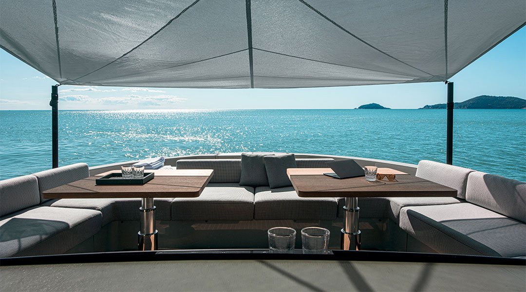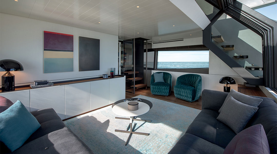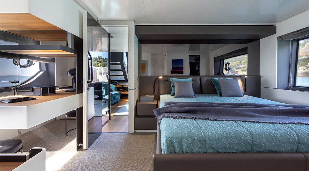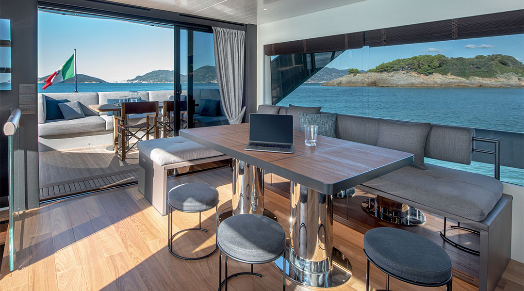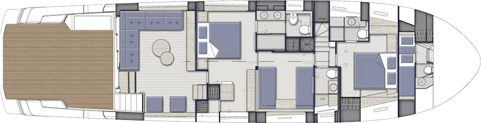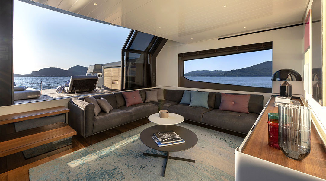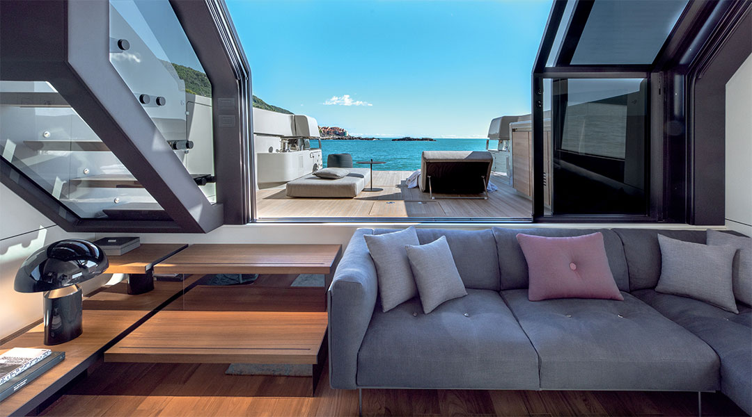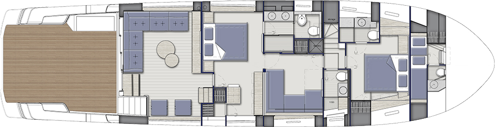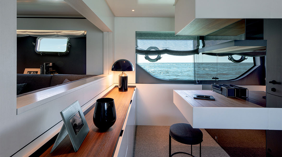 The revolutionary design of the Bluegame BGX73 features a layout not seen before in a 73-foot yacht. Combing elegant lines and spacious living areas, the centrally located master cabin provides easy access to a private lounge and communal living areas. Ample glazing throughout makes interior spaces light, and bright and rippled reflections of the ocean create a magnificent connection with the sea. A fast and accomplished seagoing yacht, the smooth throttle response and balanced helm create an effortless driving experience.