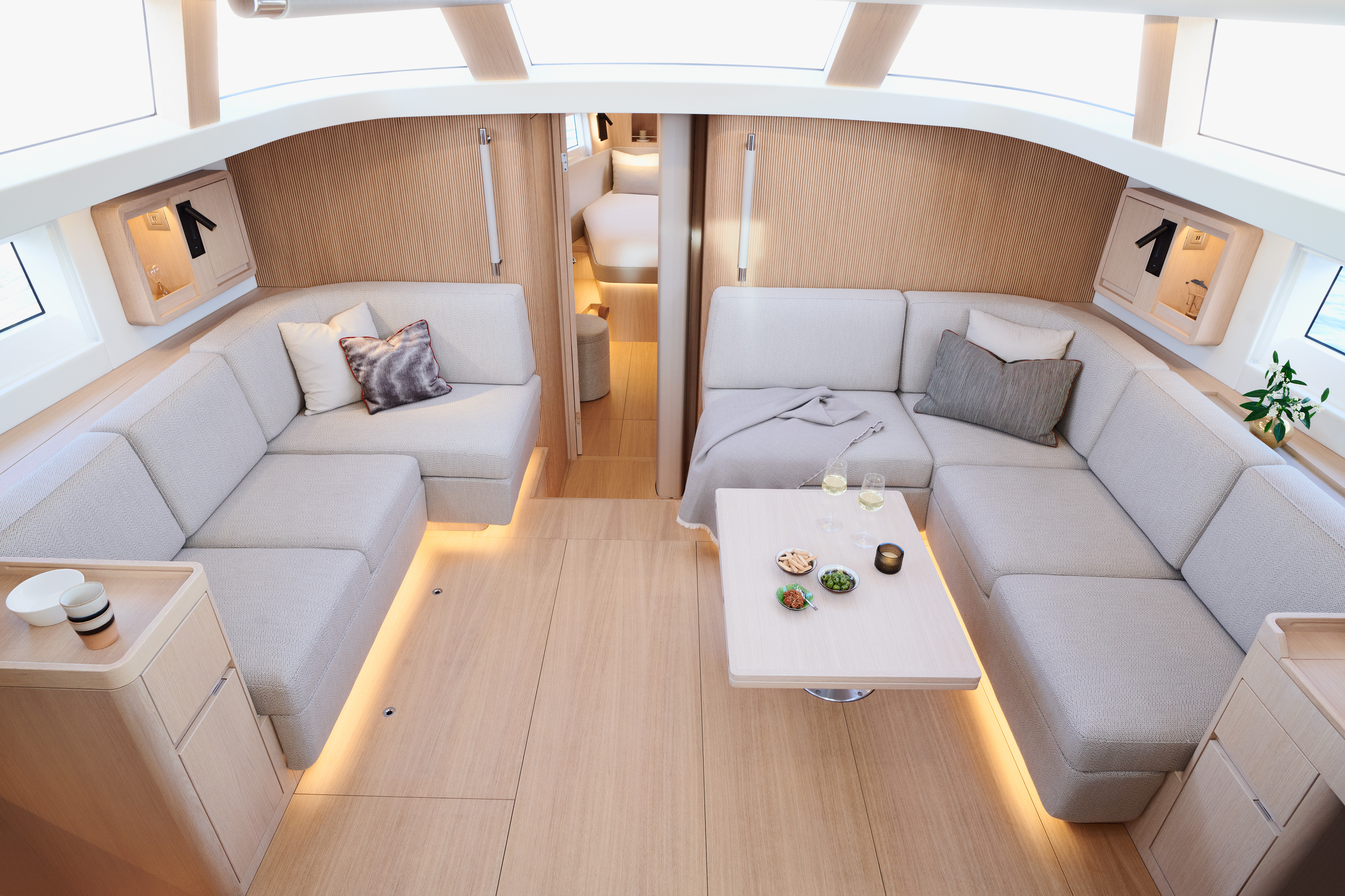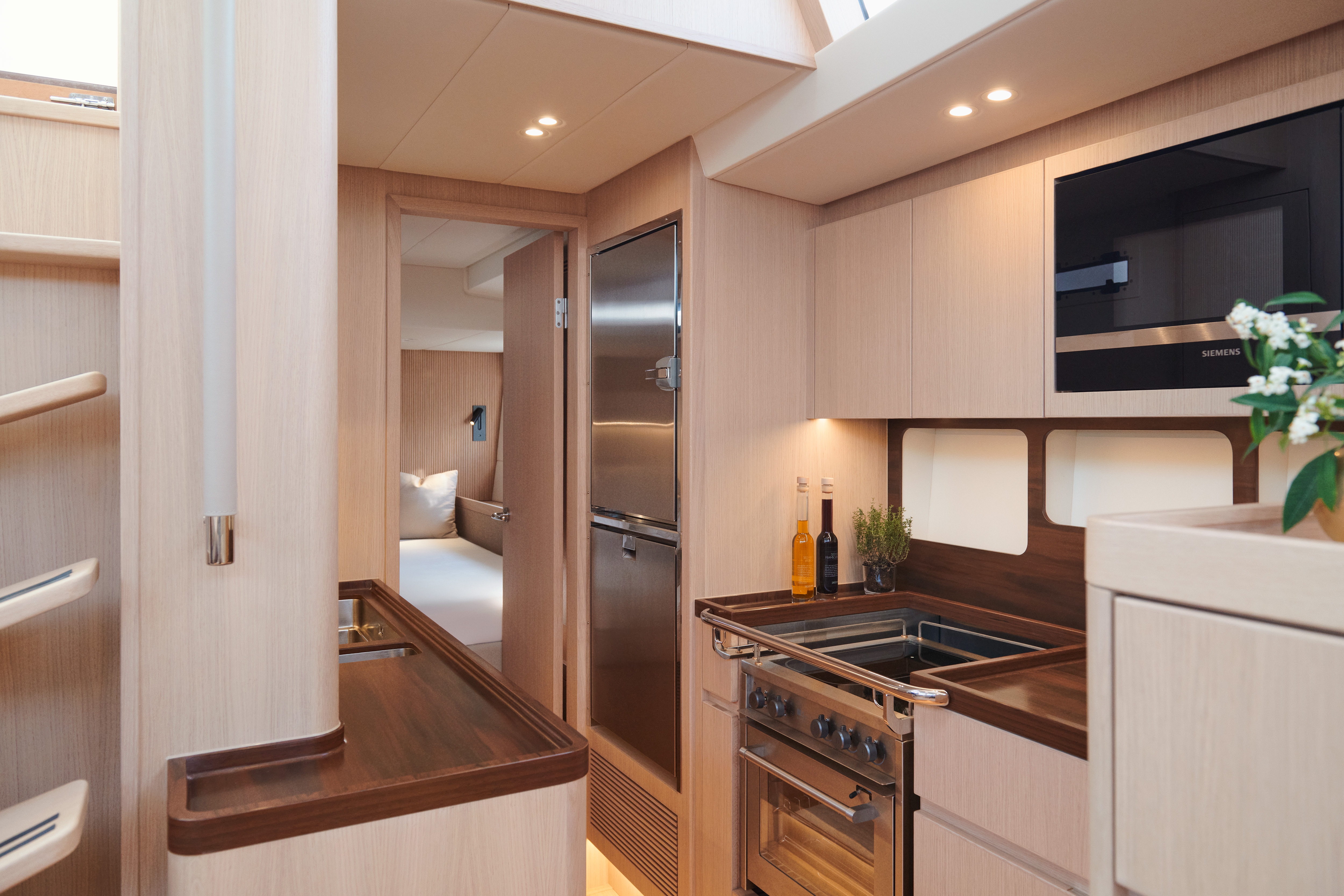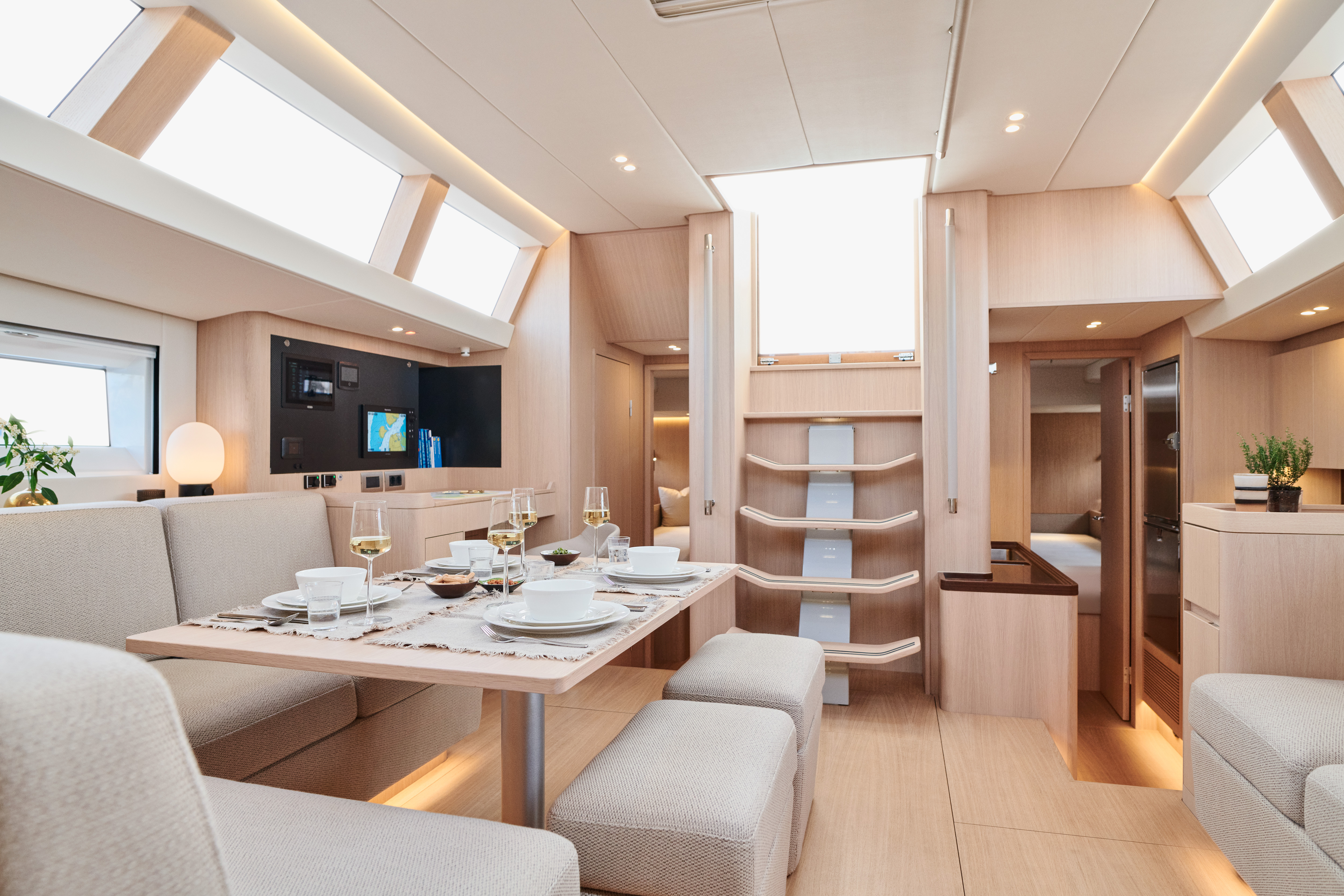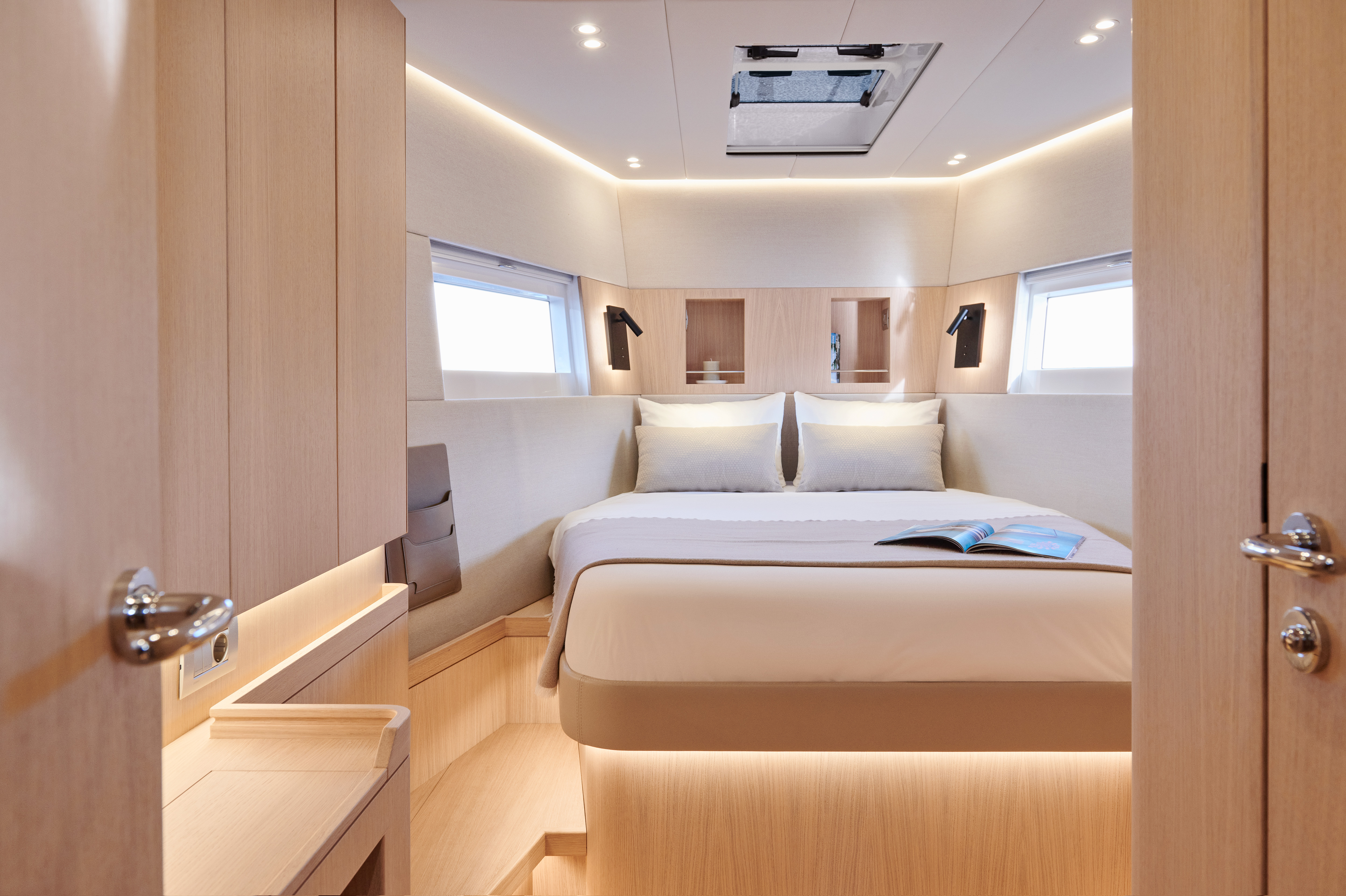 Displaying incredible onboard space, both above and below deck, the Contest 49CS creates a secure environment for all onboard. The three-cabin arrangement is ideal for safe, performance family sailing, while also providing space for a tender garage, as well as a submersible bathing platform.