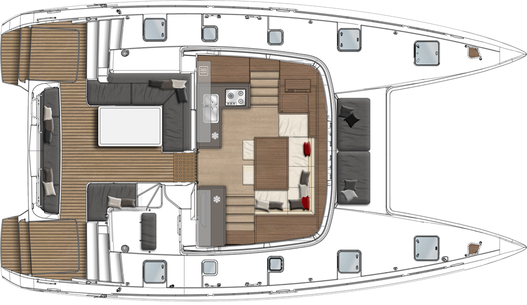 The Lagoon 40 is an incredibly easy boat to own and enjoy. The helm controls and self-tacking jib make single-handed tacking and reefing an absolute breeze. The single raised steering position provides all round views and maximises space in the open-plan cockpit. Performance is maximised by way of a tall, high aspect ratio mainsail and reduced weight in non-structural subcomponents. The interior features 3 or 4 generous sized cabins with semi-island beds and is now available with a walnut or white oak finish...