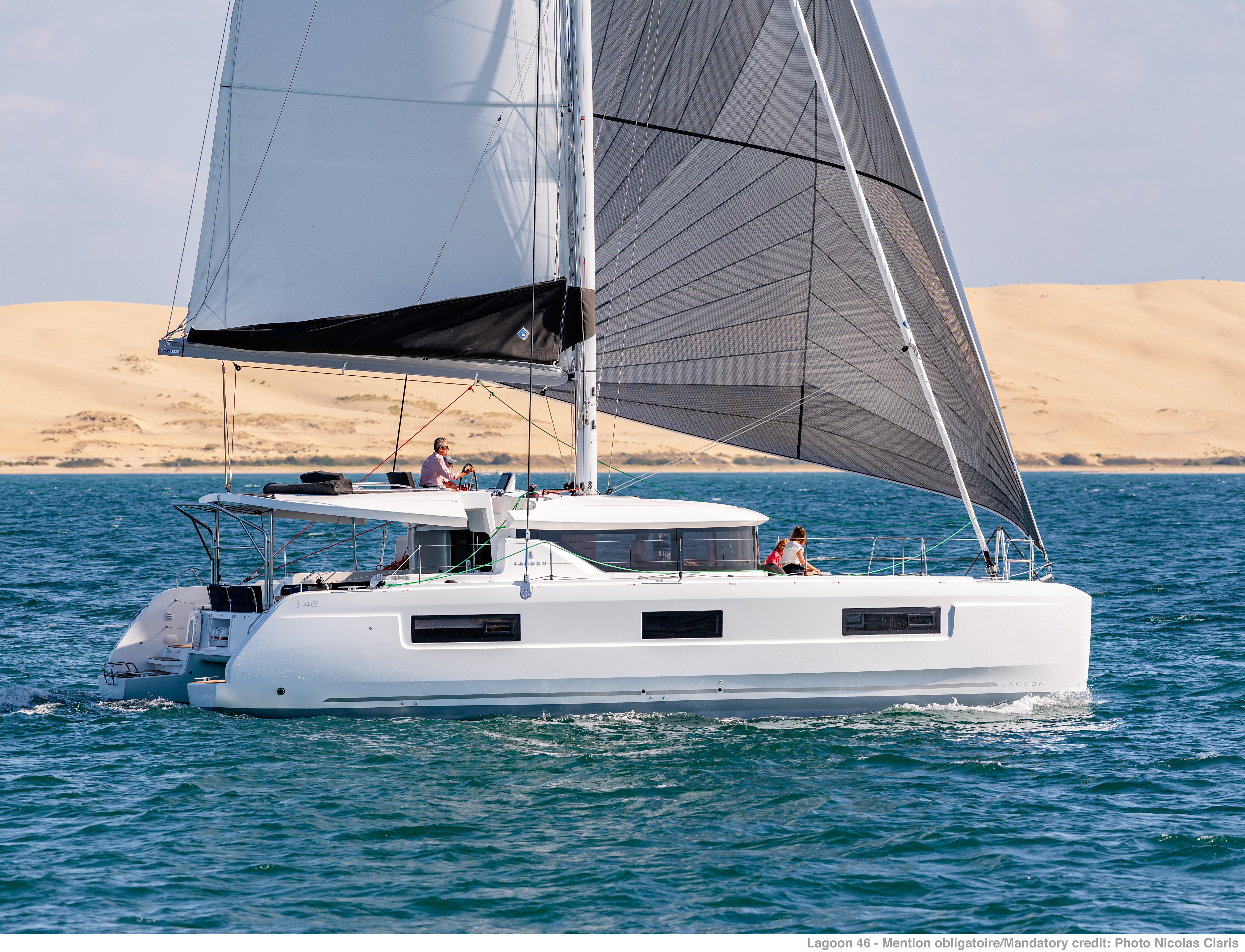 Designed with young families in mind, this wonderful new breed of catamaran makes living onboard easy-going and extremely pleasurable. Inspired by her larger sister, the Lagoon 50, the 46 boasts generous sized living spaces with elegant style and clever functionality. The flybridge is a delight and thanks to the high boom is safe while under way. Plus, with a good sized rig, a self-tacking jib and simple controls, the whole family will enjoy exploring the ocean under sail.