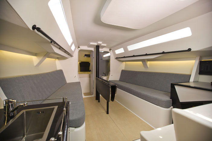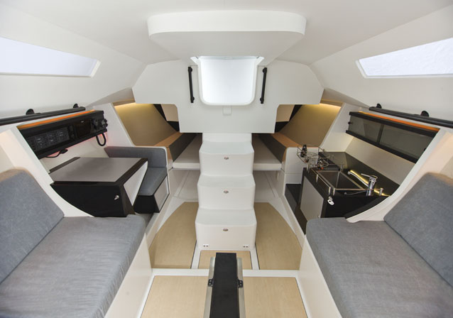 Down below the Ker 33 offers three double berths, two settees in the saloon, a separate heads, nav station, galley and carbon table making the accommodation surprisingly comfortable and suitable for cruising or long distance racing.