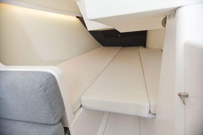 Aero stanchions, pushpit and pulpit, an ergonomic deck layout, straight led running rigging and performance Harken winches and Spinlock clutches are just some of the details that give the Ker 33 its pure racing spirit.