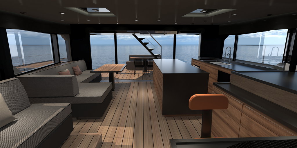 Designed to be sailed and cruised by couples and families alike, the MC55 offers a hugely safe, spacious and comfortable platform that is incredibly easy to handle thanks to her clever layout and the technology installed.