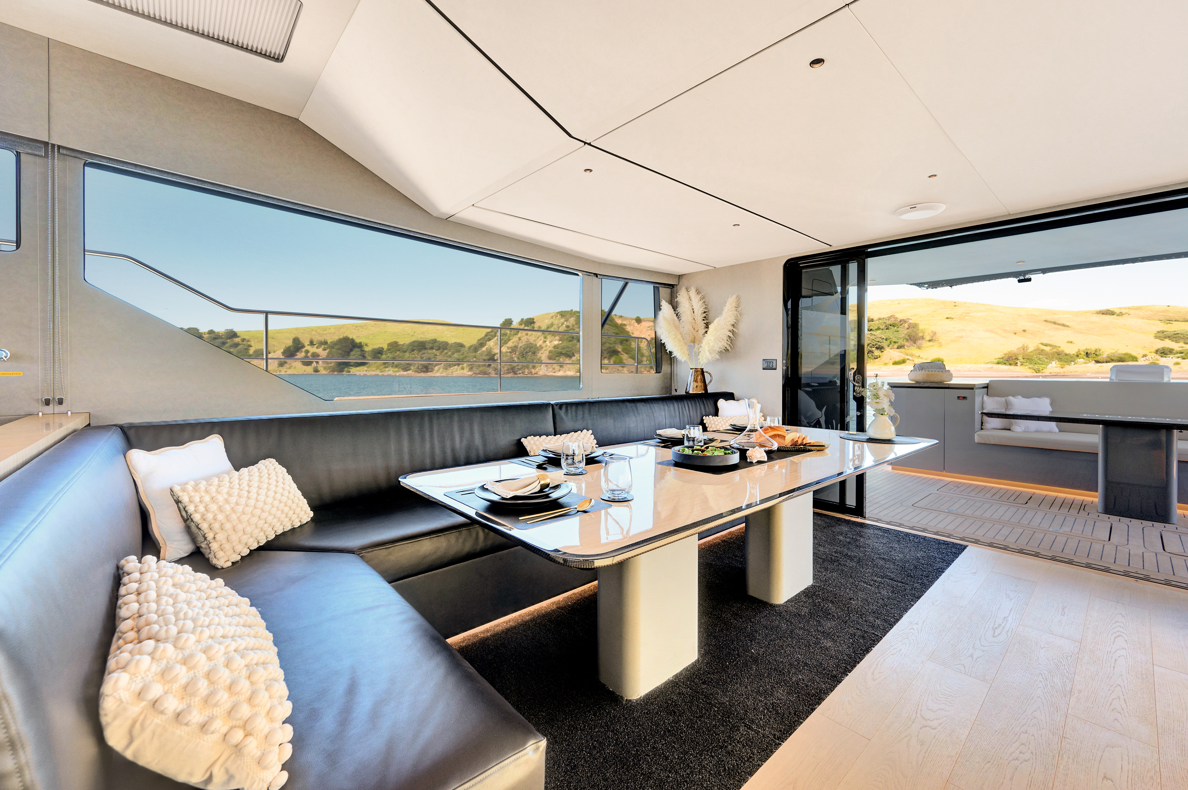 Interior styling comes from Design Unlimited, an award-winning studio with extensive experience in both large custom yachts and the production sector. Their attention to detail and innovative storage solutions that allow for living space to be maximised, make the MC63p a mini-superyacht, with luxury and performance ability perfectly partnered.