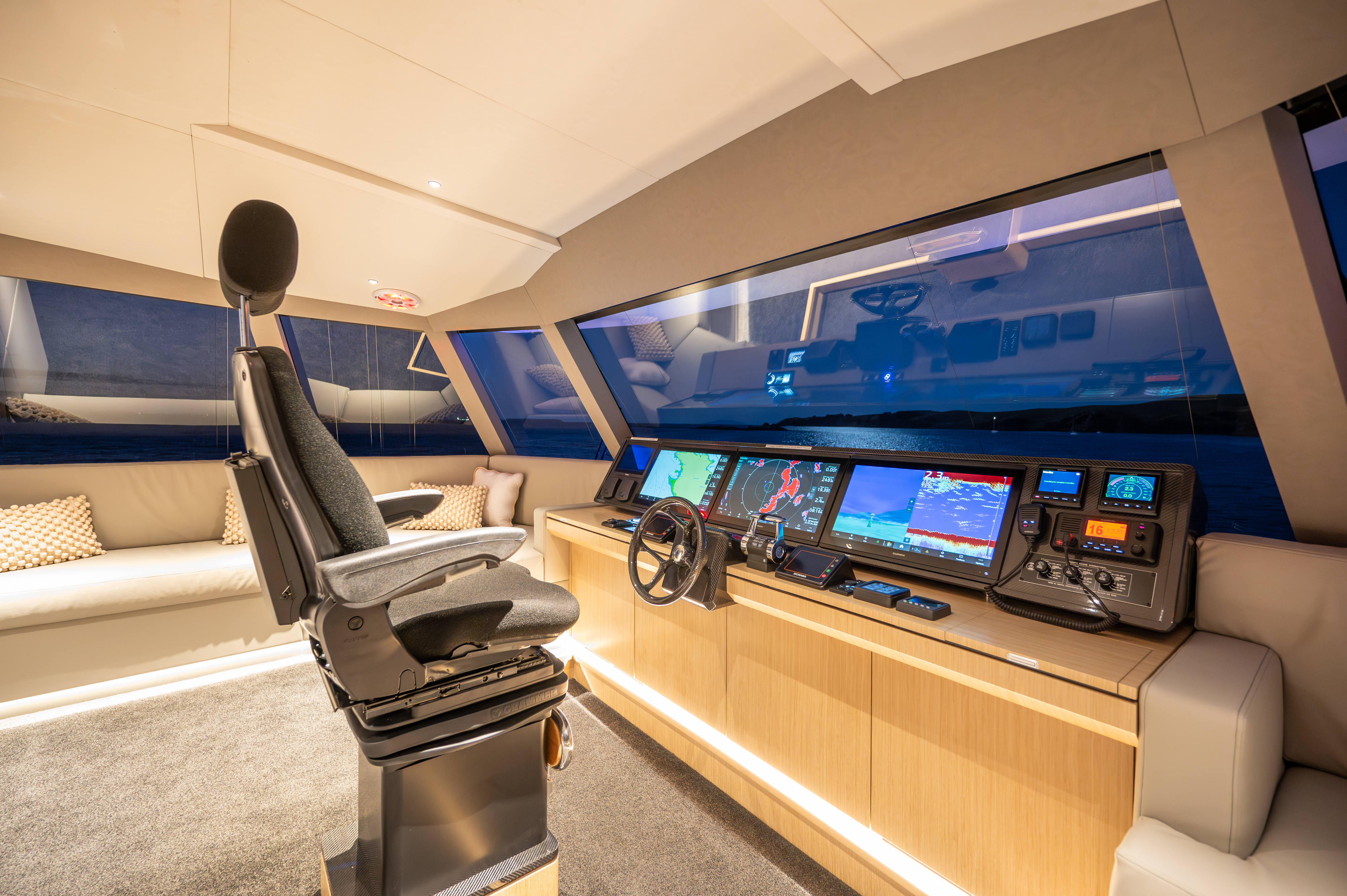 McConaghy’s carefully considered use of carbon and precise hull forms makes for a particularly fuel-efficient vessel at the lower speeds, yet the MC63p is able to achieve top speeds well in excess of 20kts.