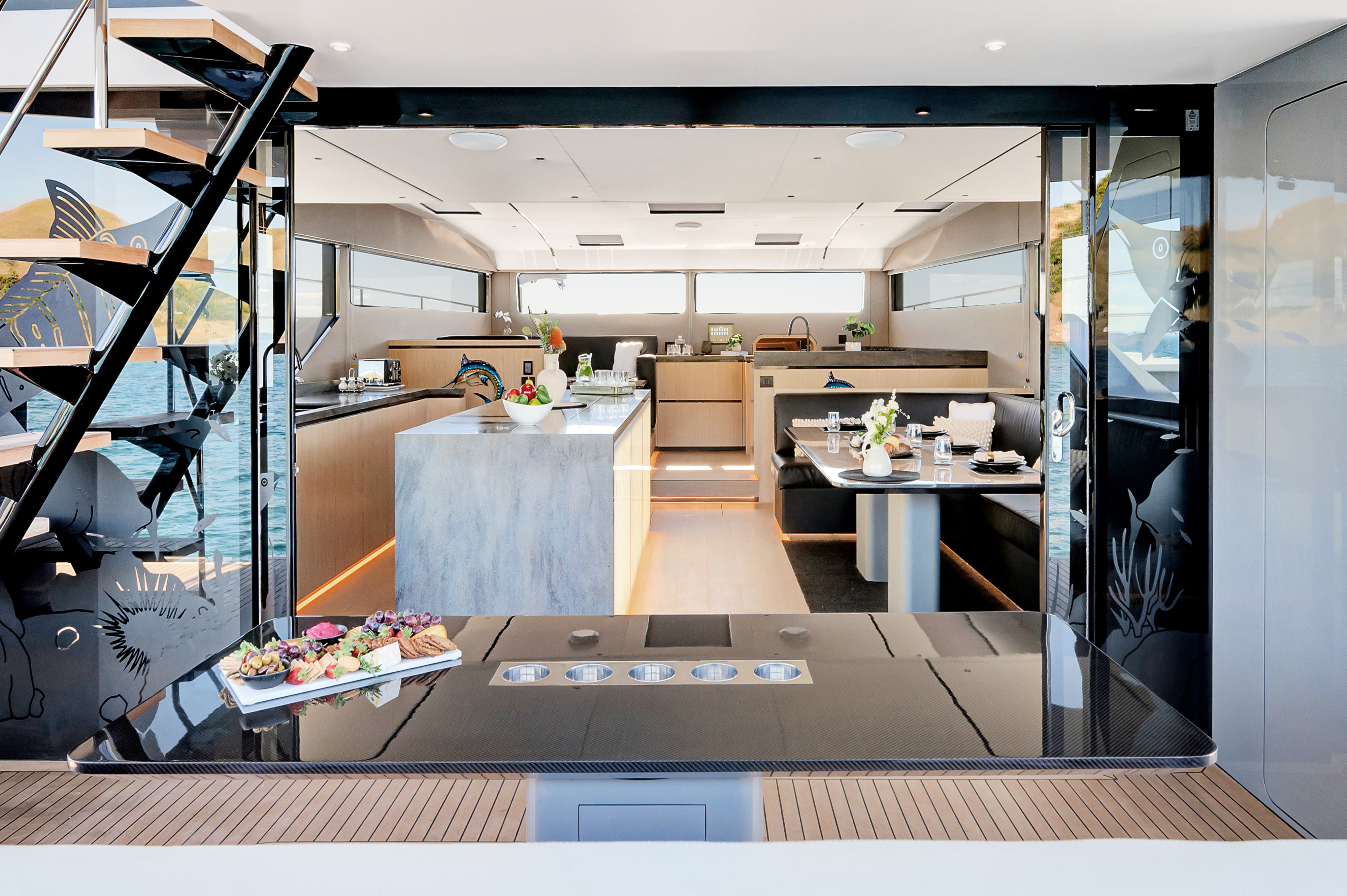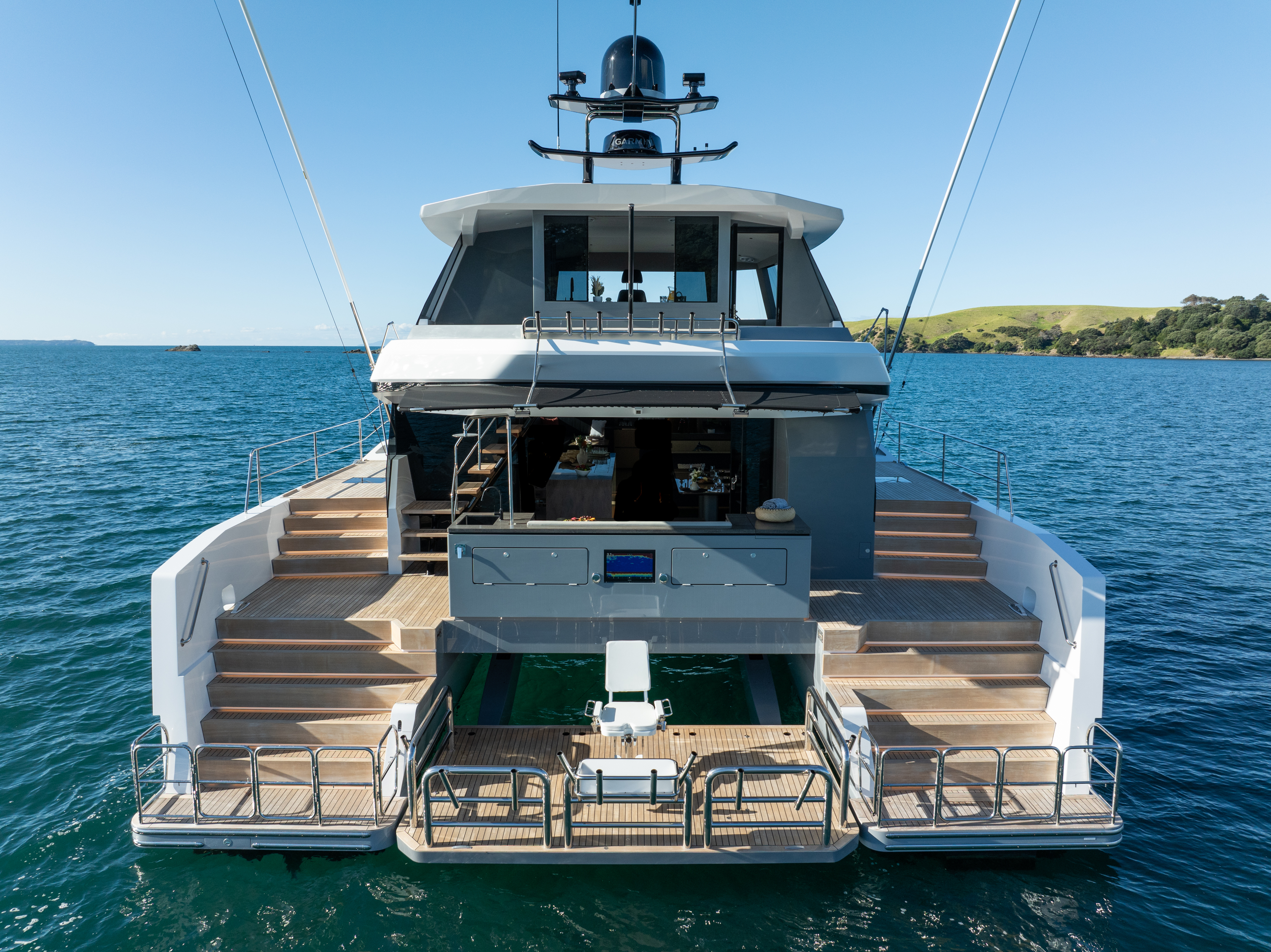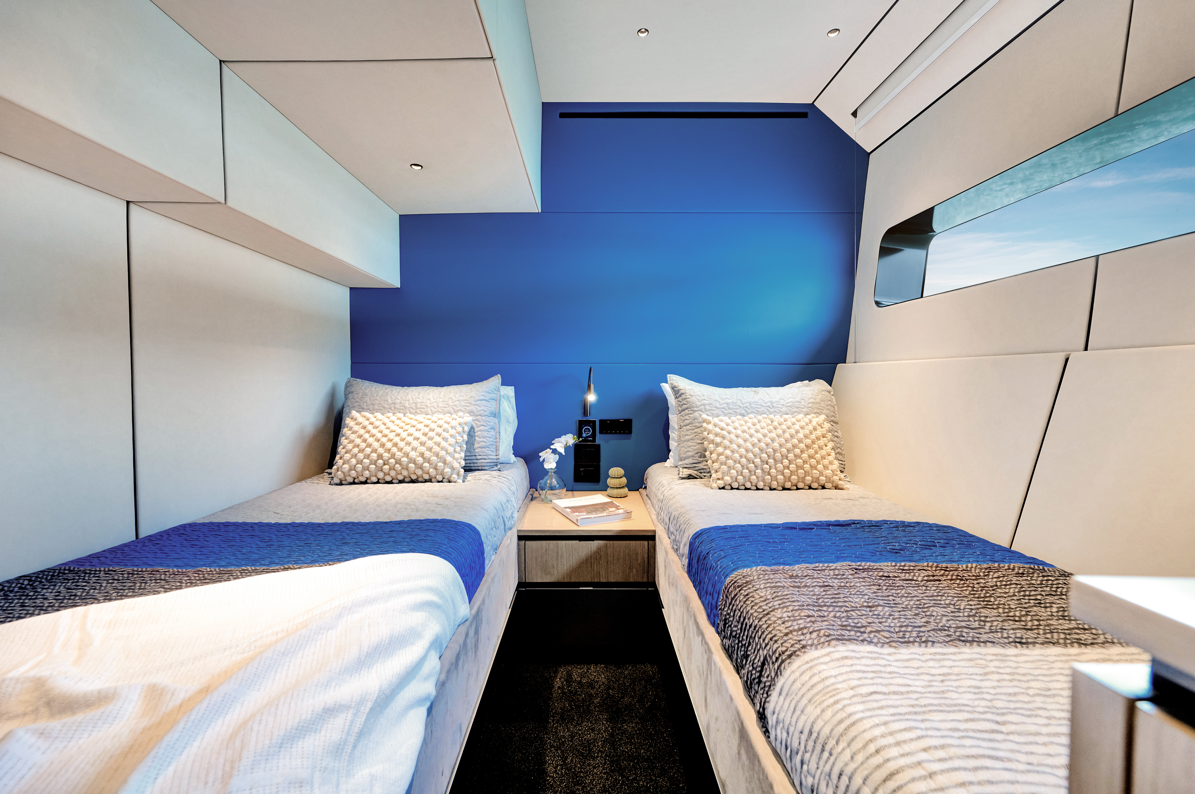 There are three versatile interior arrangements available, allowing for a three or four cabin layout or an arrangement that positions the master suite on the main deck.