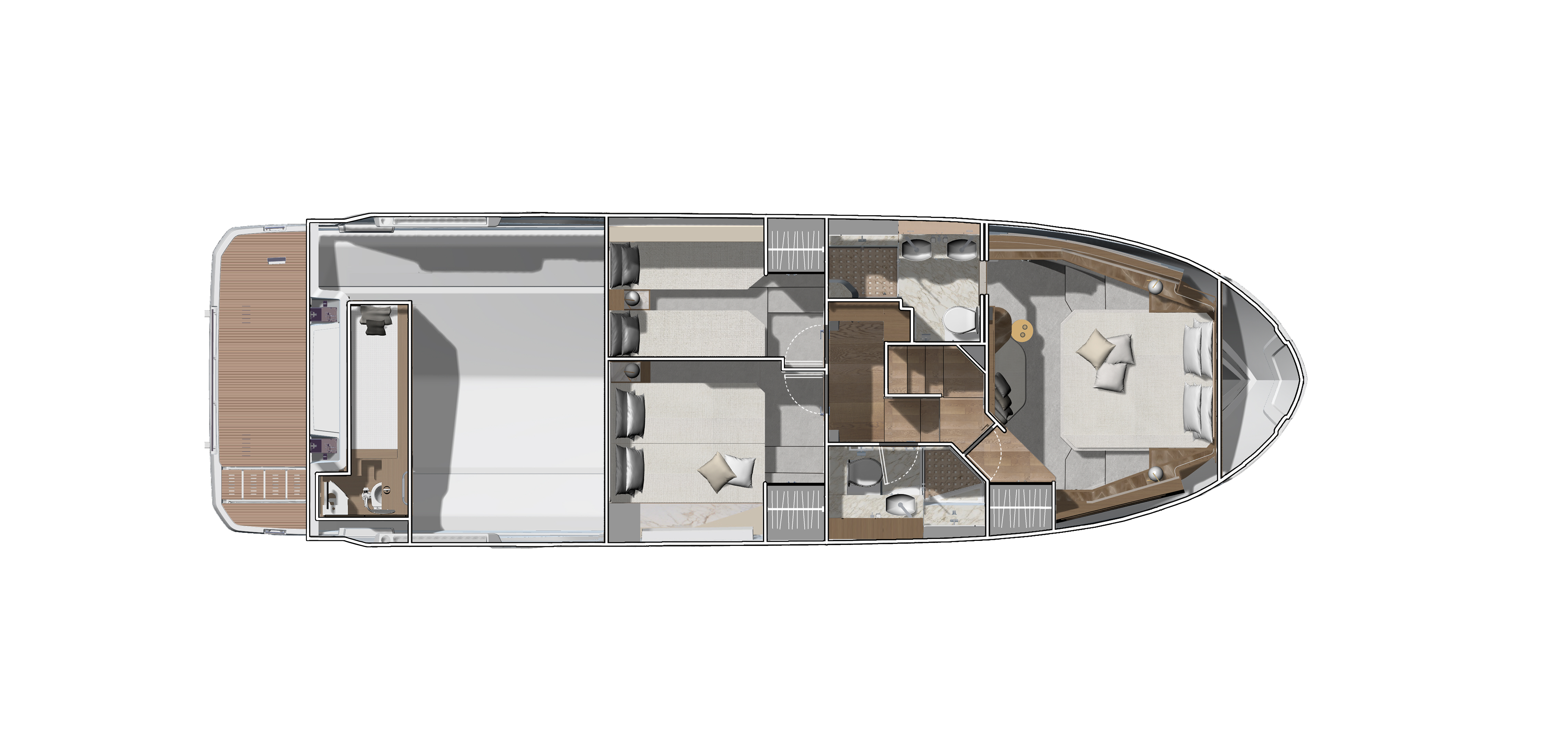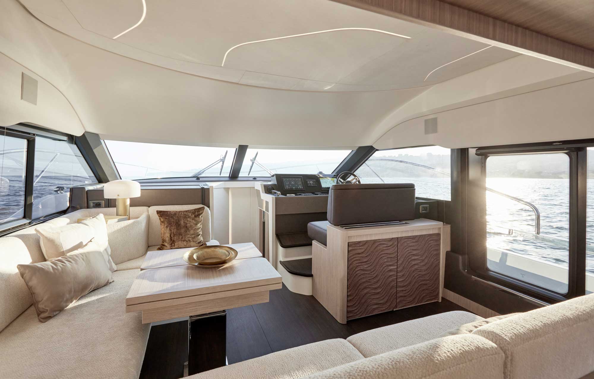 Introducing the all-new Prestige F-line. Evolving from the second-generation flybridge line, the F4.9 is the first model of this new and improved range from Prestige Yachts. Featuring a new hull design, refined elegance and a timeliness silhouette, this marks the beginning of a new movement in distinguished flybridge living.