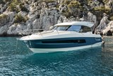 Boasting all the latest innovations of the brand, this sporty version integrates the concept of the Prestige 460 Fly in a faster more agile Coupe. With her remarkable sporty look, the Prestige 460S benefits from an incomparable design, open to the exterior. Adaptable to suit your needs, the large opening sunroof and immense aft sliding glass door can be used to open the living space up to the outside. The Prestige 460S allows one to enjoy an enhanced exterior space when fully opened and a more protected living space when closed.