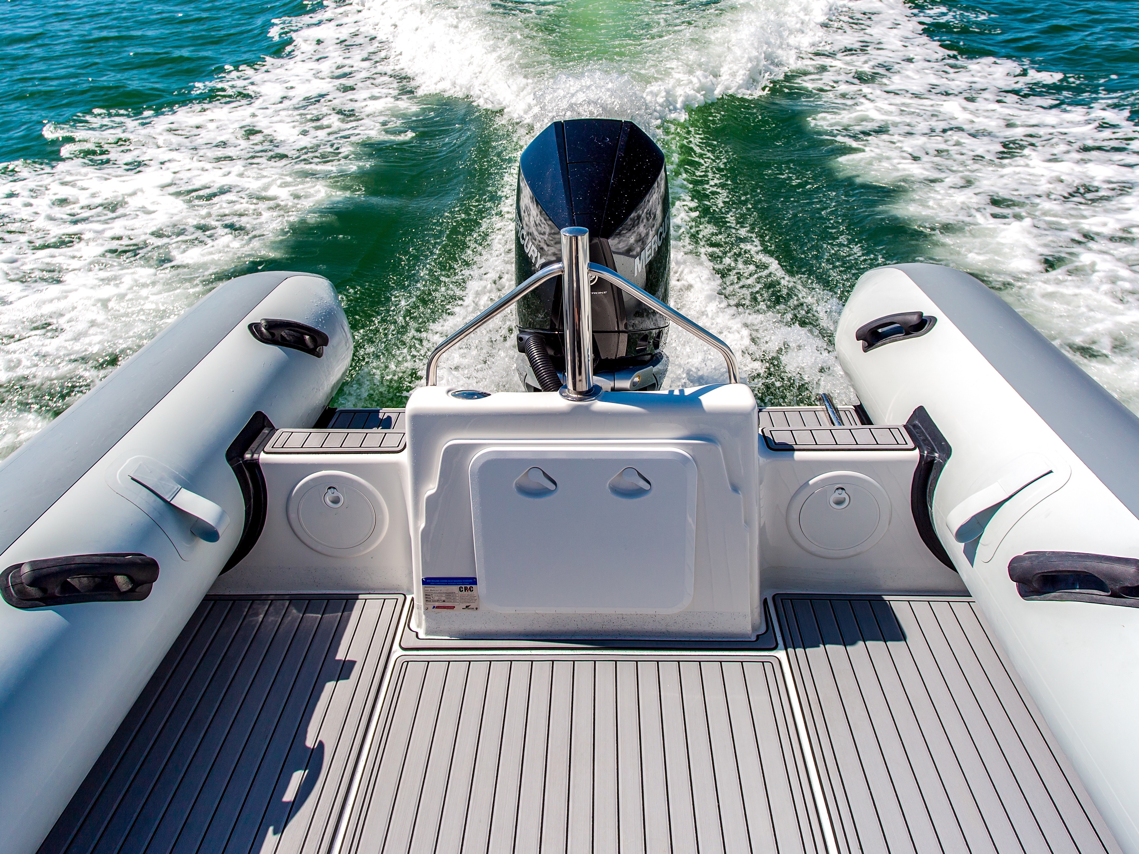 Designed with a single-engine transom, the 250 is a versatile platform that can be used both as a work boat or a family day boat.