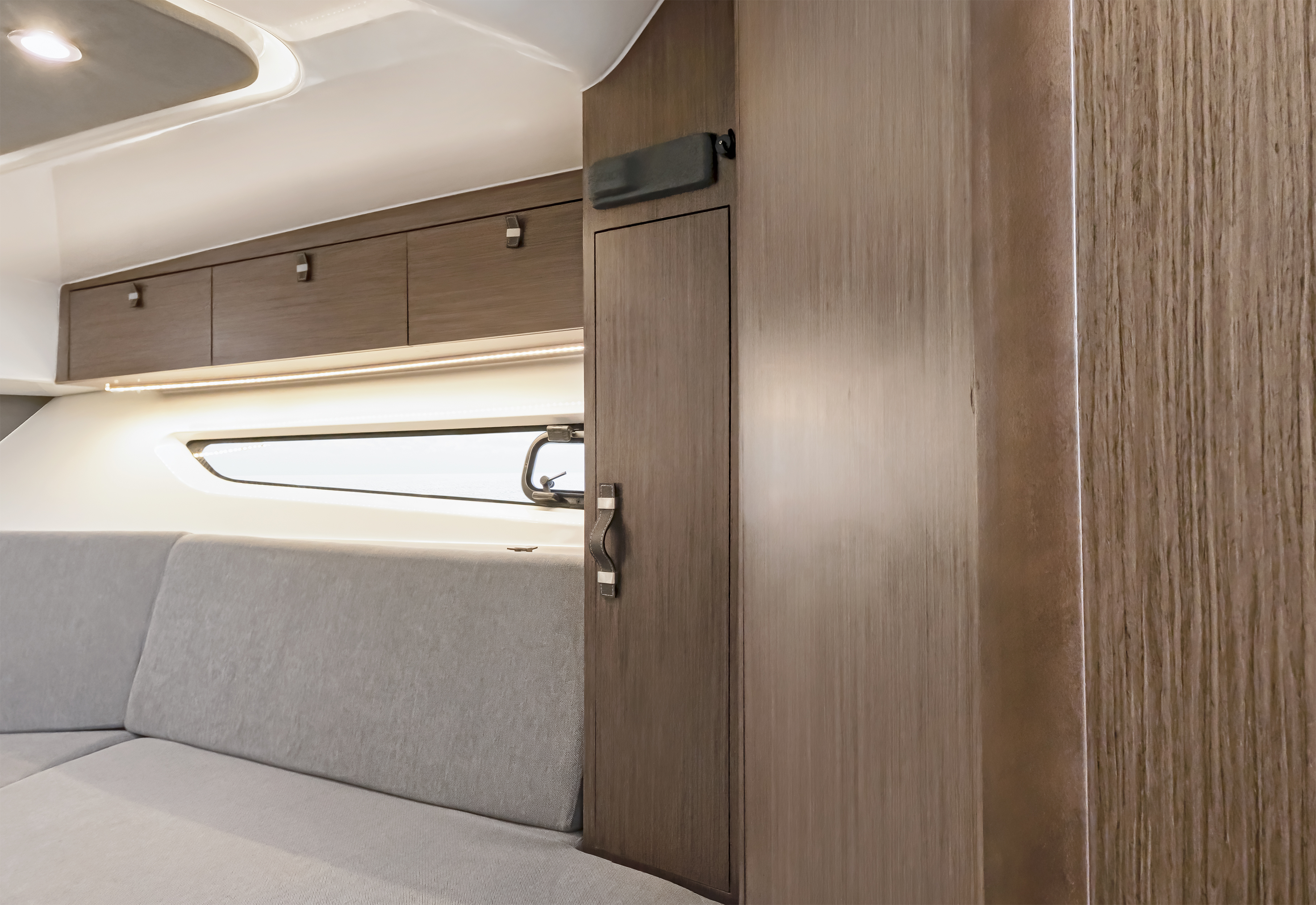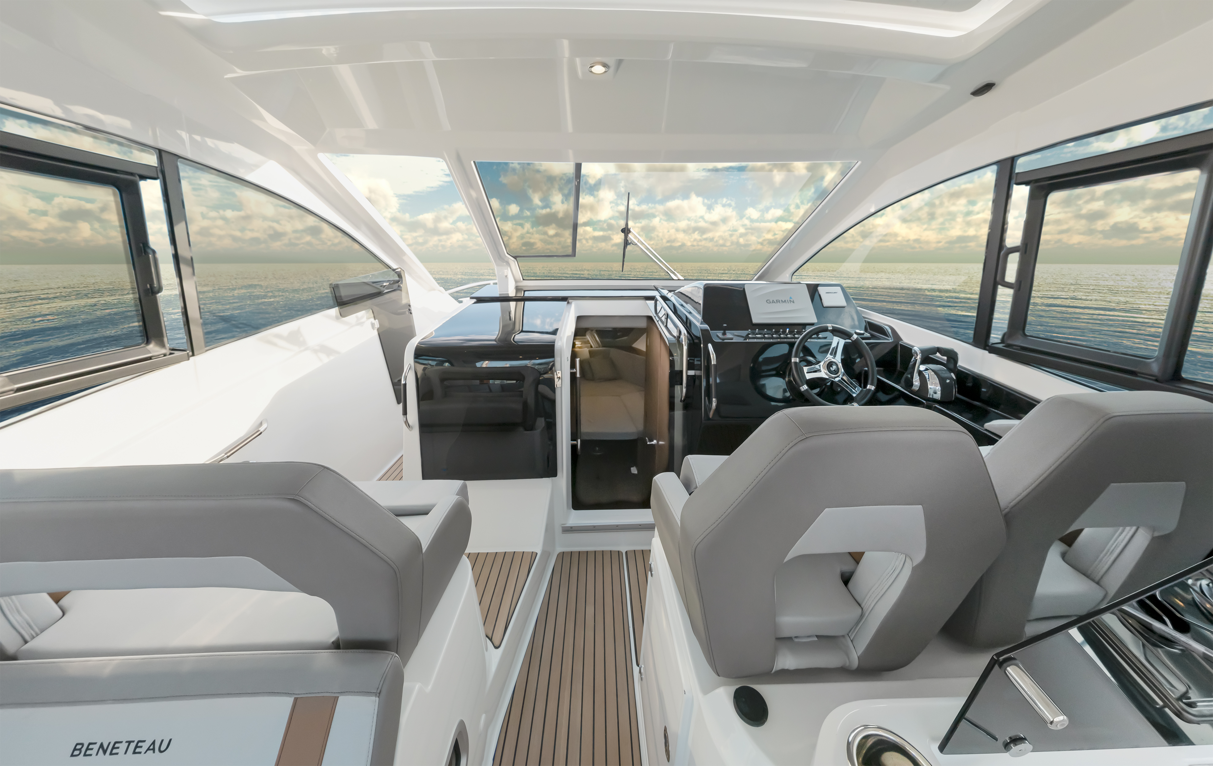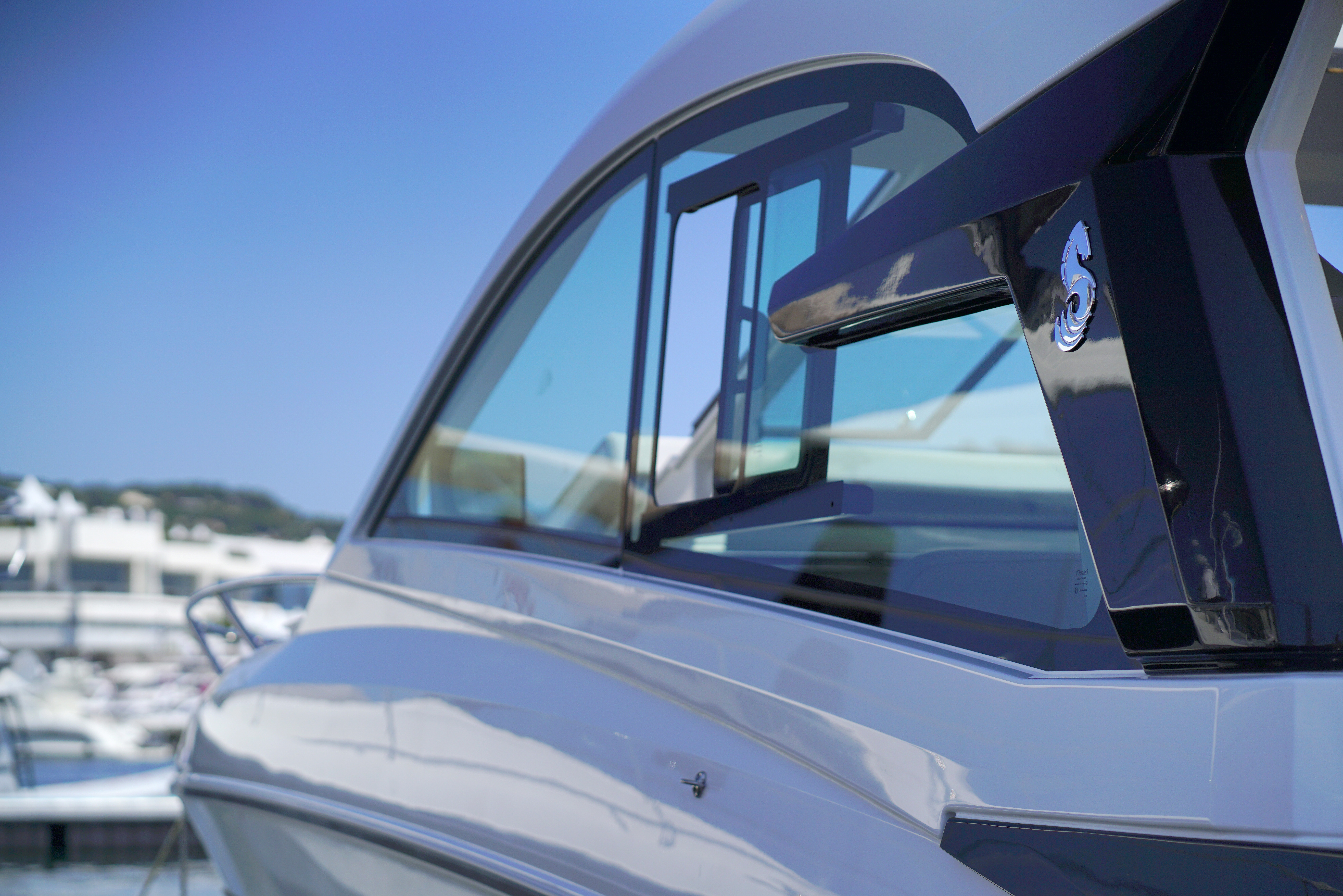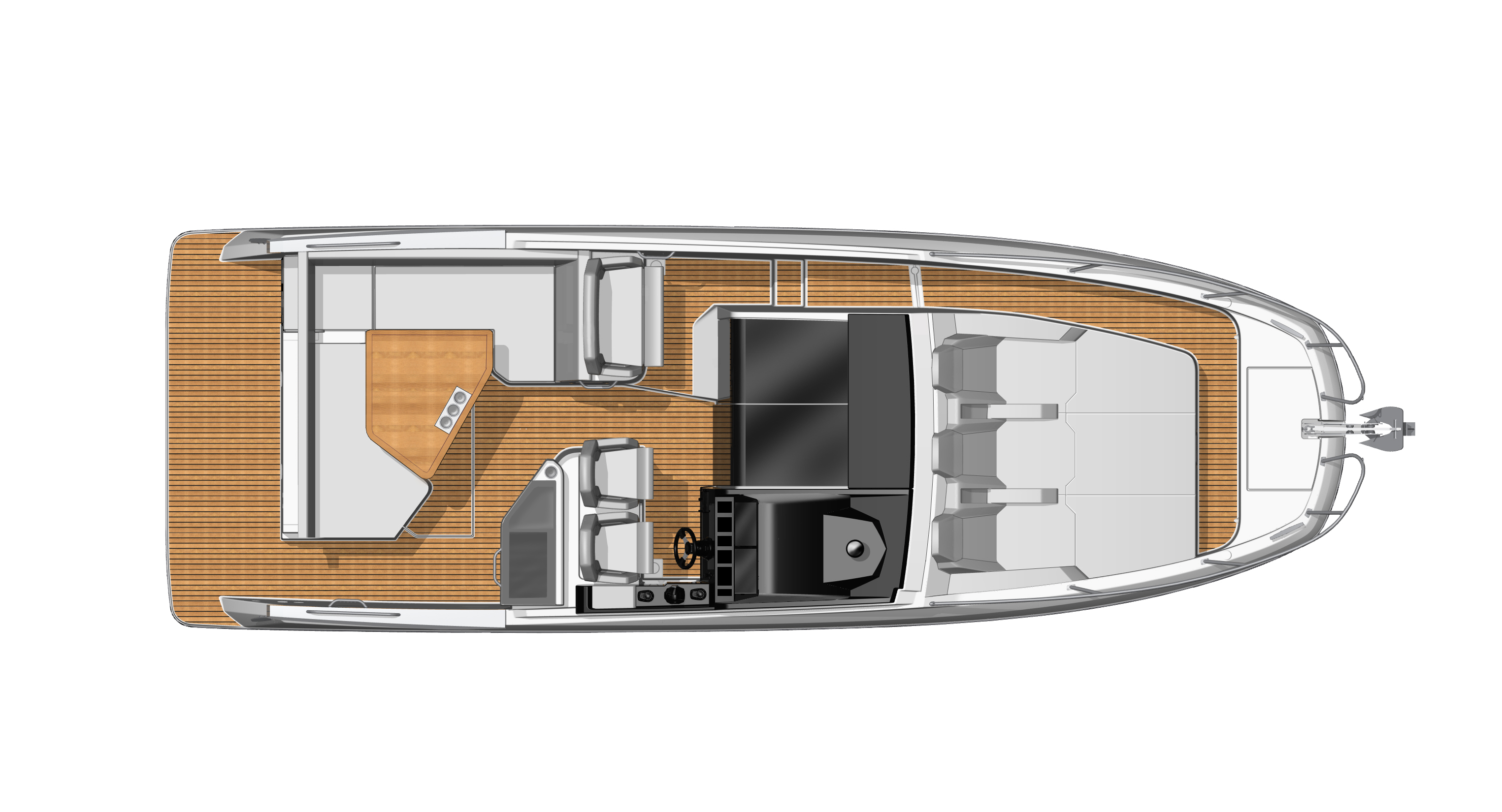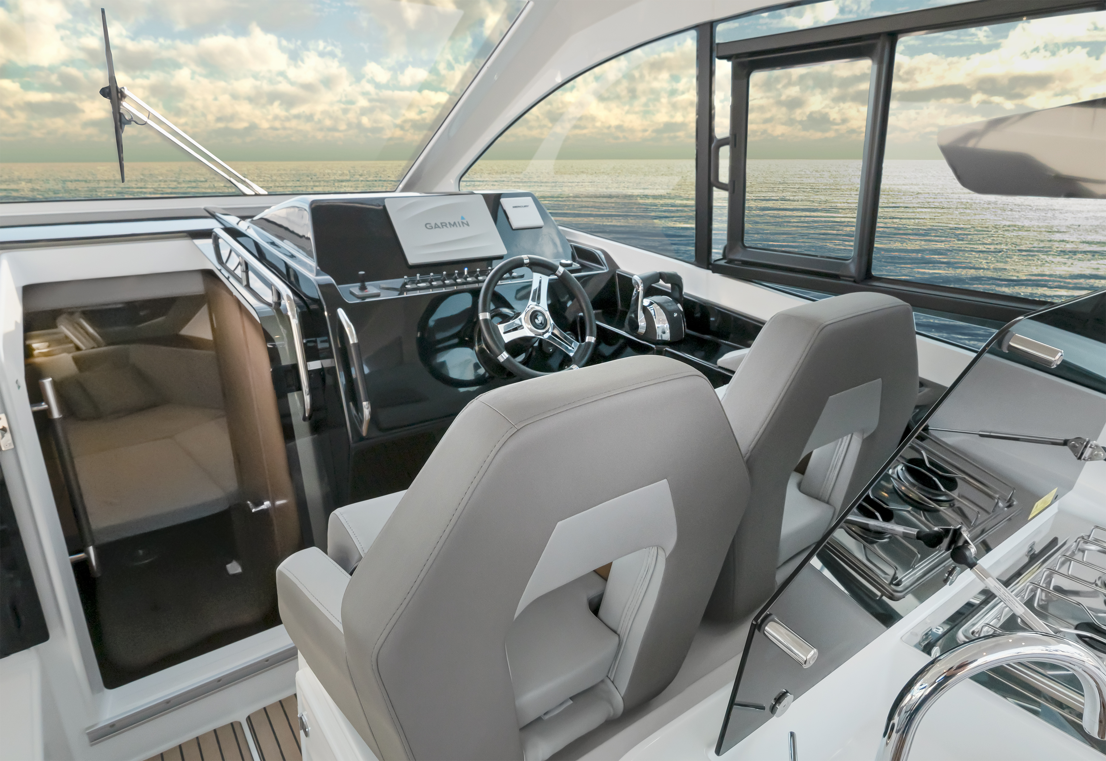 The Gran Turismo 32 shows off the new design of the future Gran Turismo line, with clean yet aggressive lines that combine style, practicality and flare. The GT32 is based on the deck plan of the Flyer 10 so gains all her advantages of the full beam main deck, side access through the windshield and Air-Step hull. The GT32 meets the challenge of combining the essence of a large open boat with that of a spacious hardtop offering all the comfort of an express cruiser. Available in both petrol and diesel inboard versions both of which can be offered with the joystick docking systems.