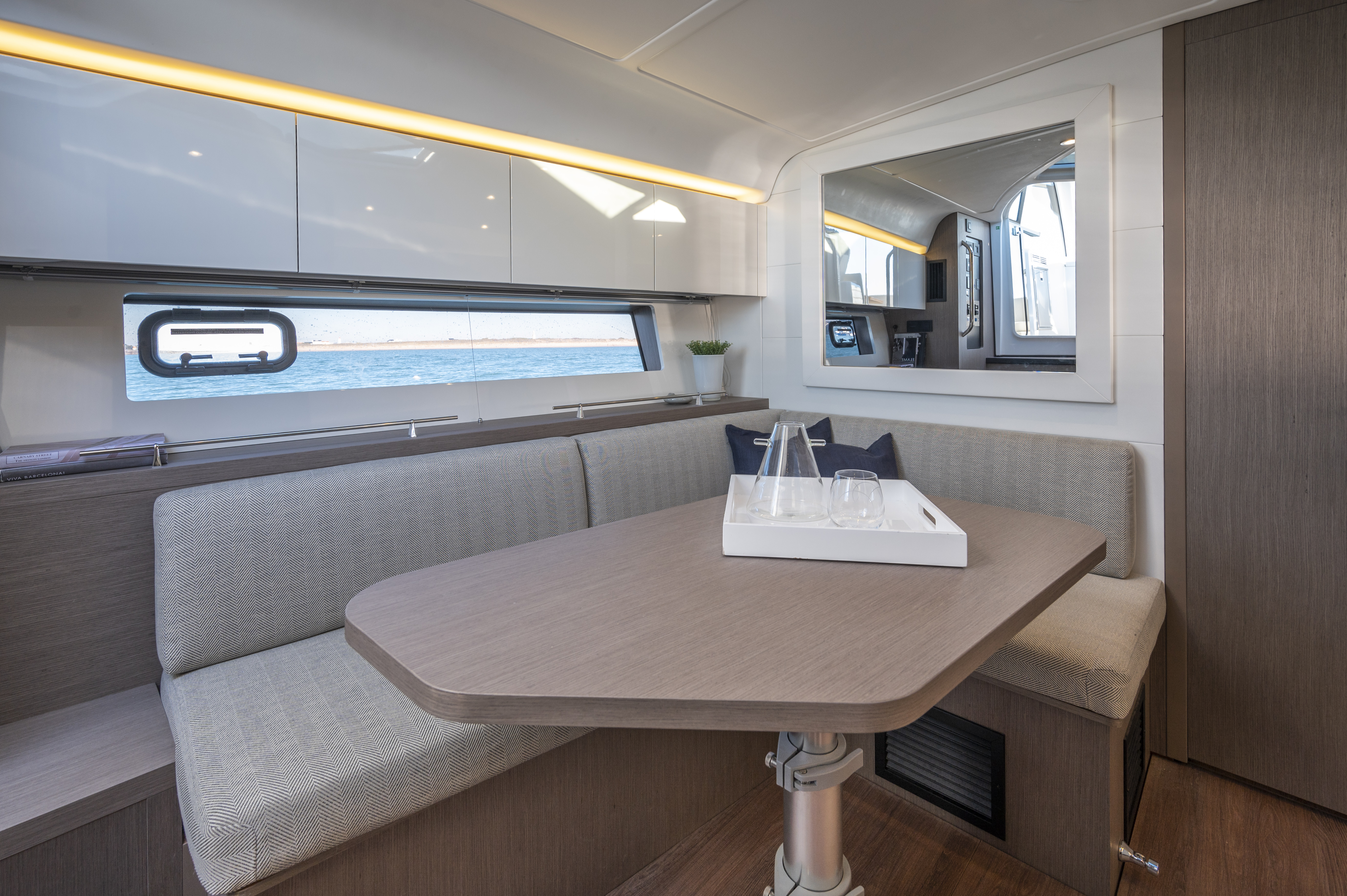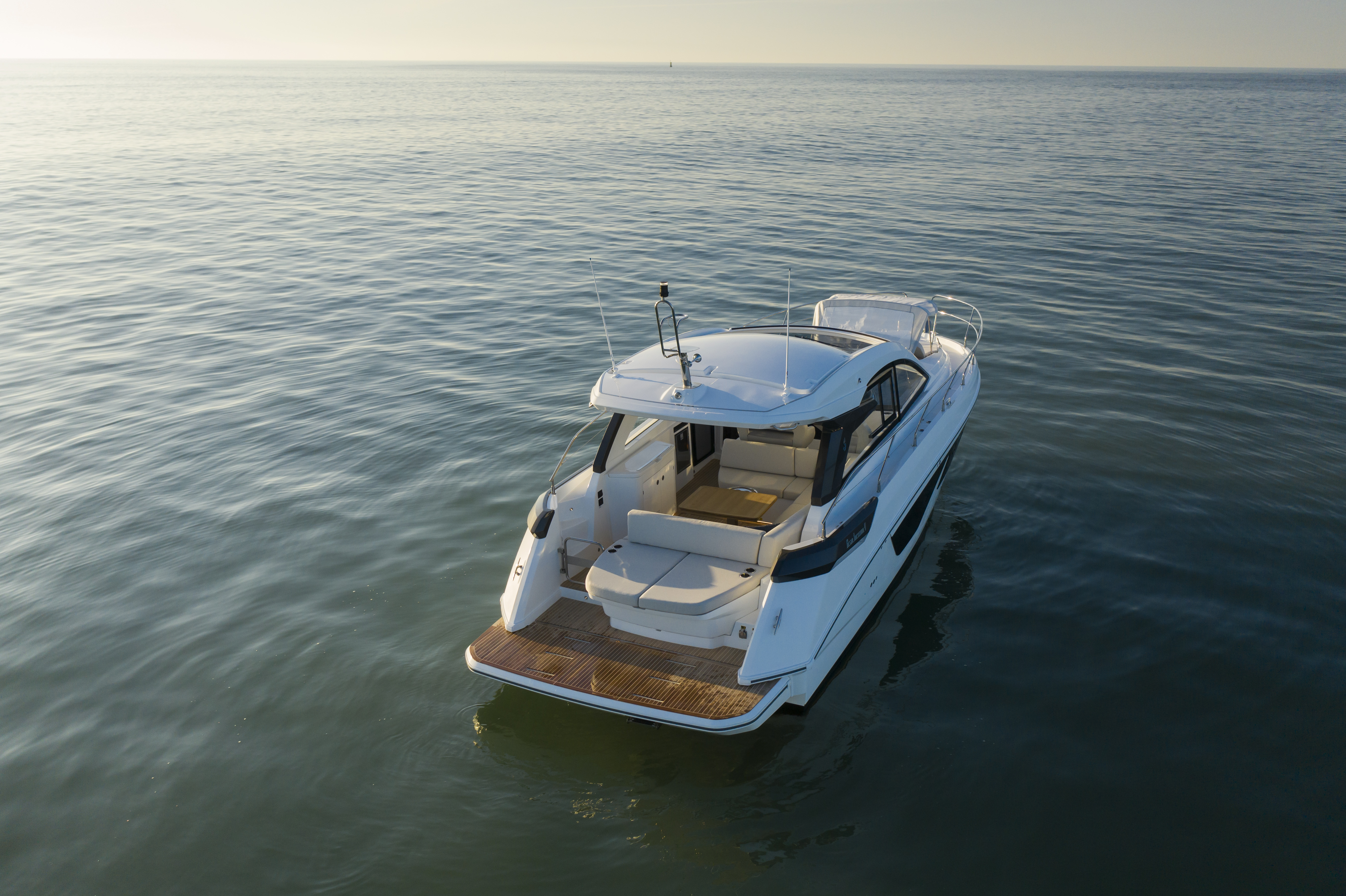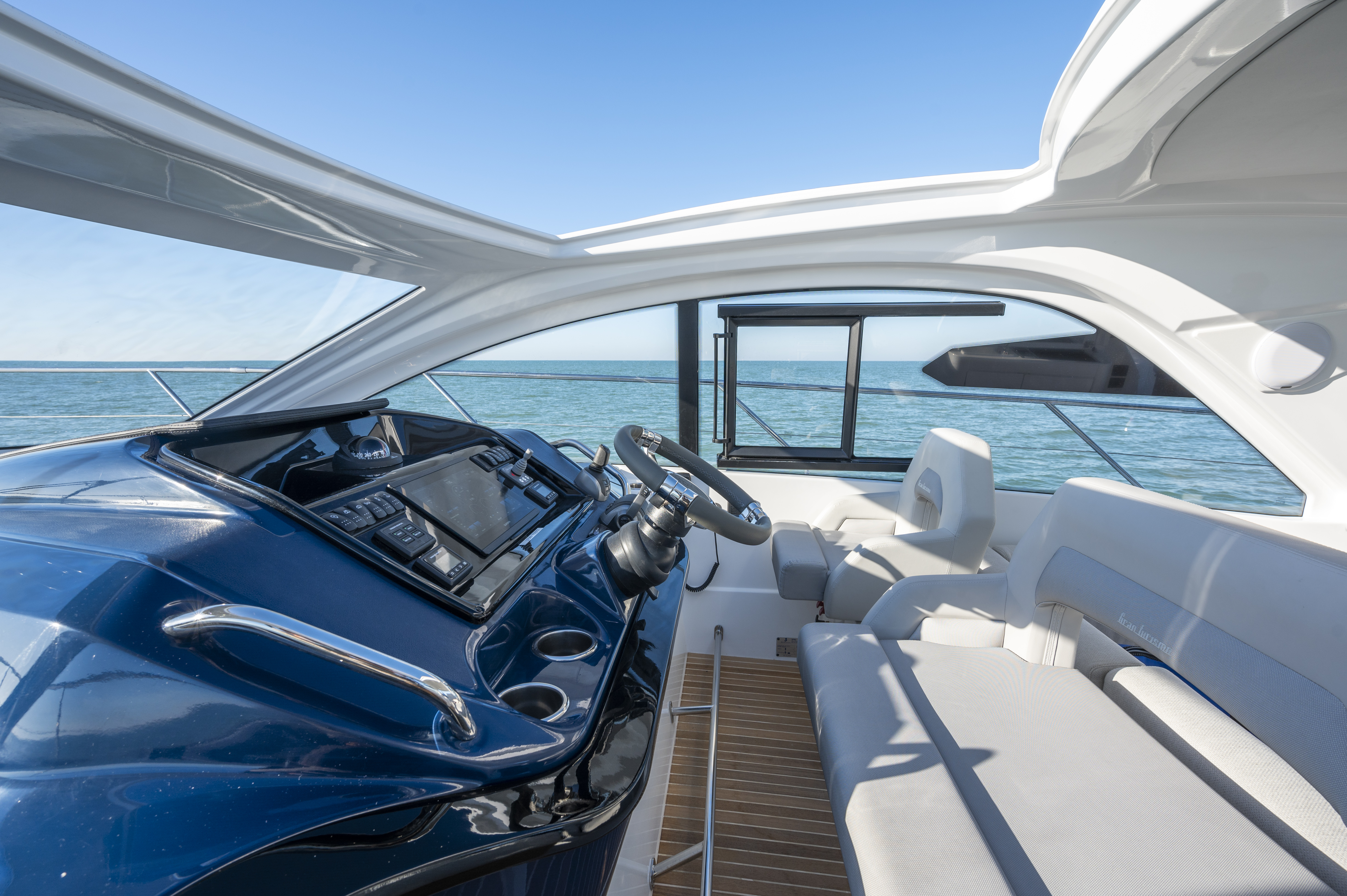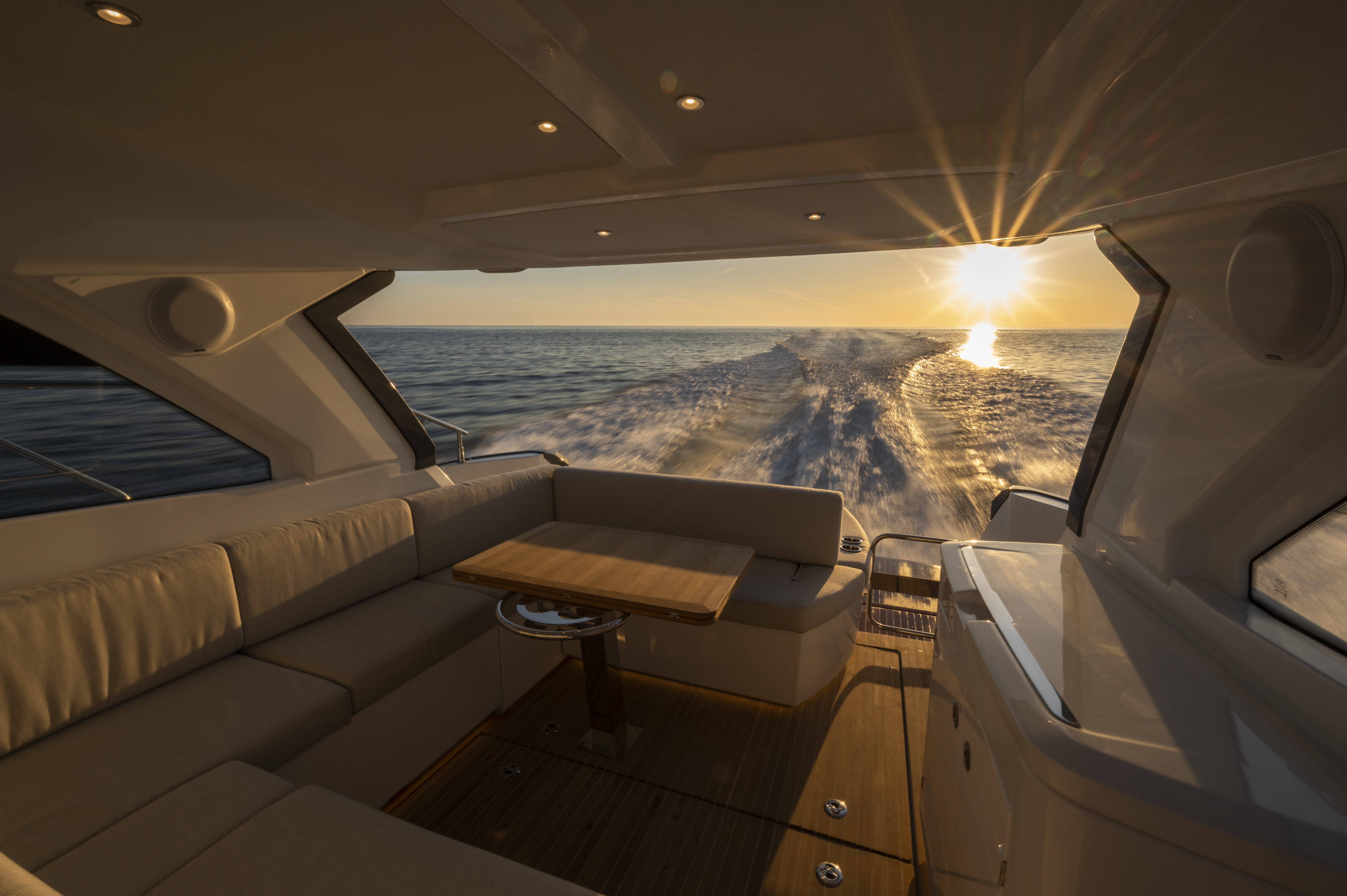 Elegant and comfortable, she is beautifully designed and her luxury fittings and clever layout appeal to everyone. With her sporty hull and slender lines, the Gran Turismo 41 immediately conjures up speed and elegance. The Gran Turismo 41 is designed to win you over, but she is also created with guests in mind. Everything on board is devised to make life easier and more enjoyable: safe movement around the boat, a highly social U-shape saloon, a functional outdoor galley, and comfortable relaxation space.