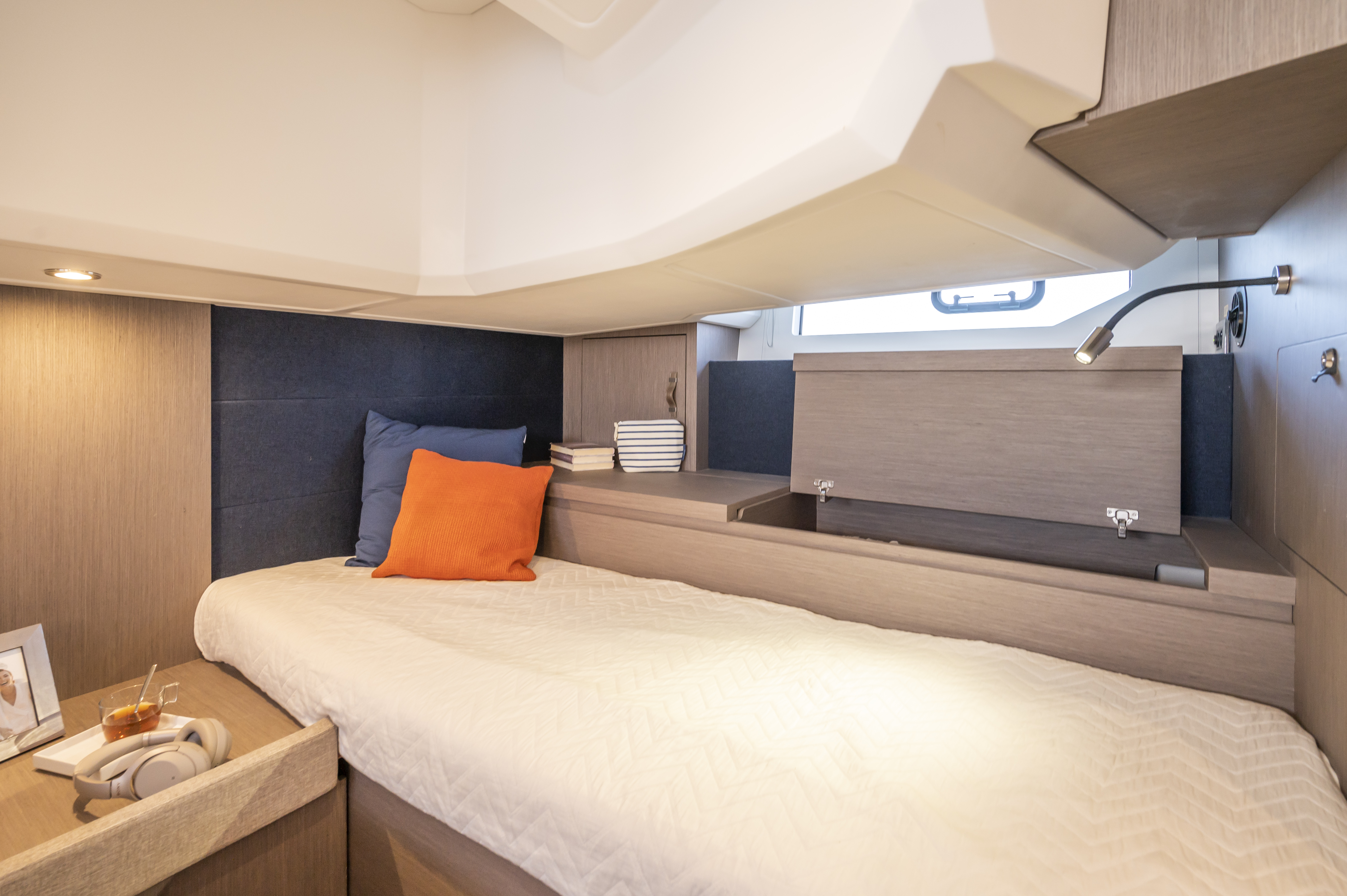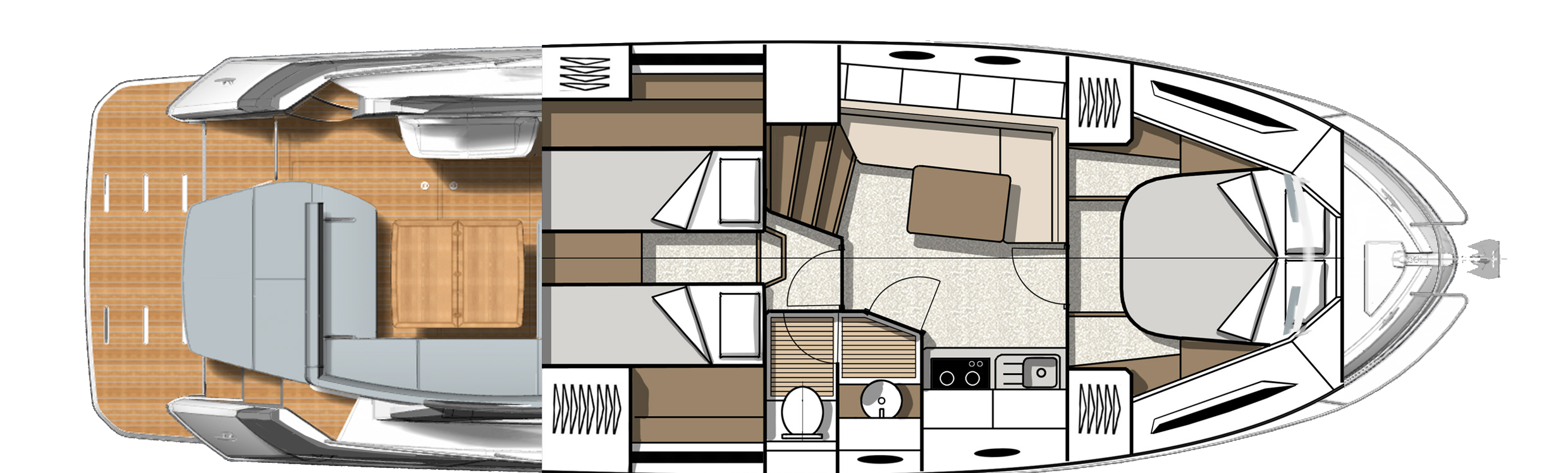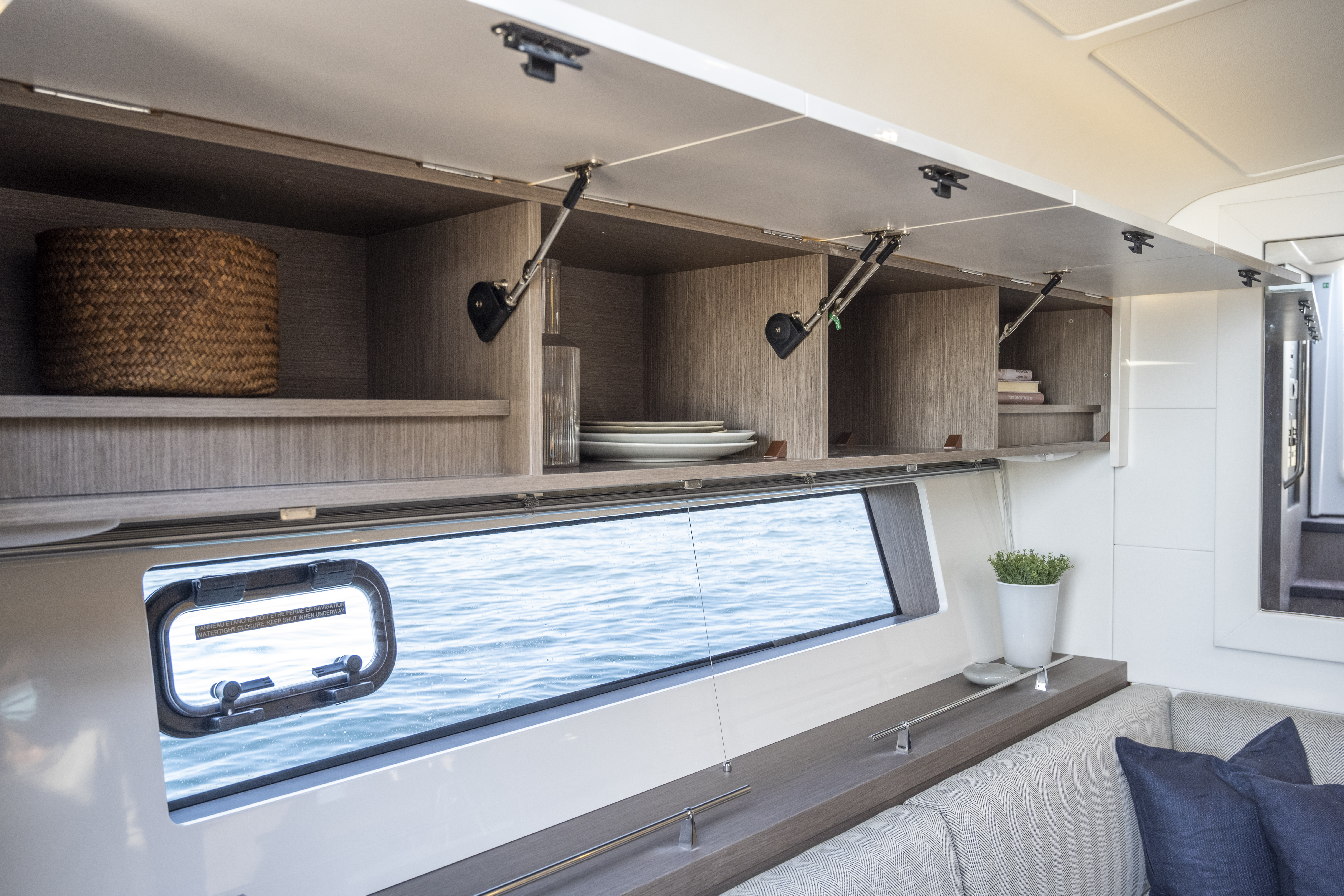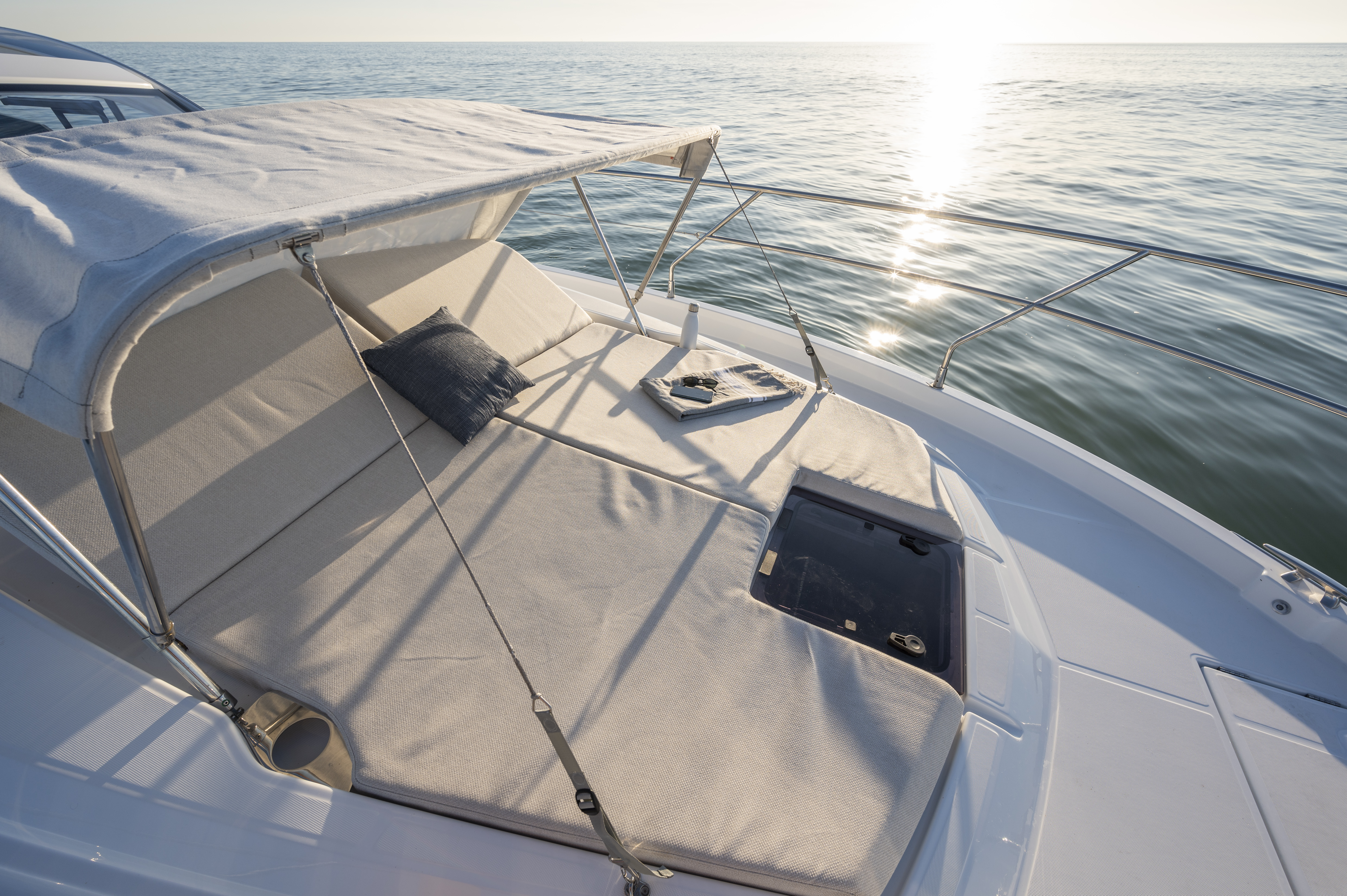 Elegant and comfortable, she is beautifully designed and her luxury fittings and clever layout appeal to everyone. With her sporty hull and slender lines, the Gran Turismo 41 immediately conjures up speed and elegance. The Gran Turismo 41 is designed to win you over, but she is also created with guests in mind. Everything on board is devised to make life easier and more enjoyable: safe movement around the boat, a highly social U-shape saloon, a functional outdoor galley, and comfortable relaxation space.