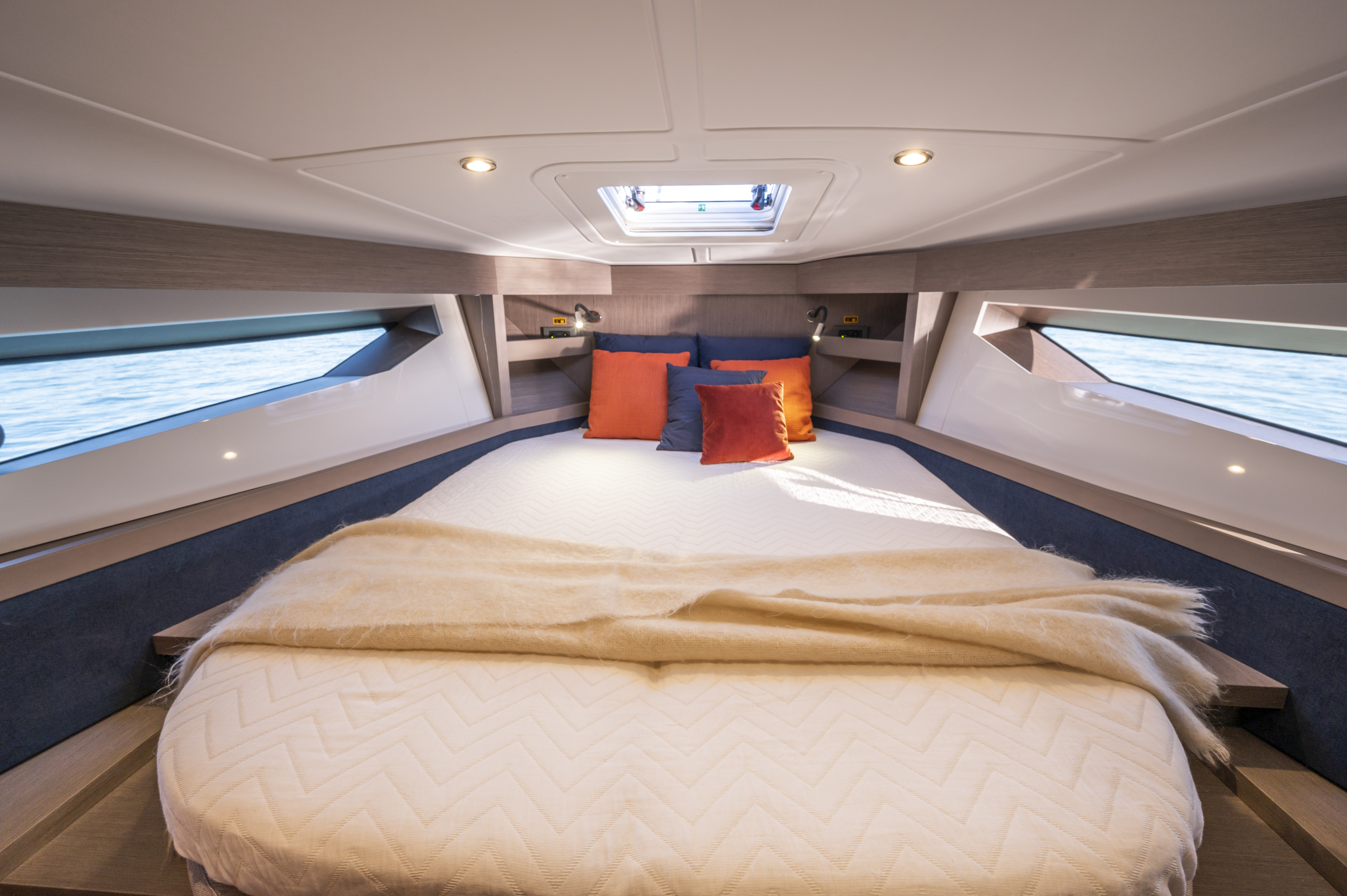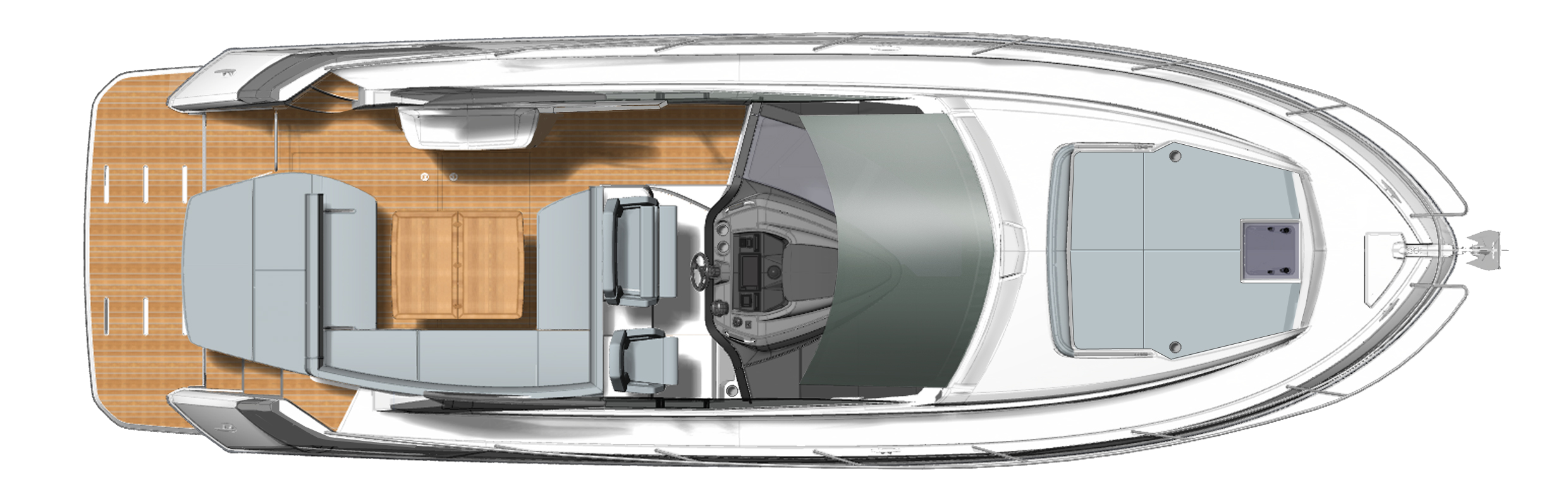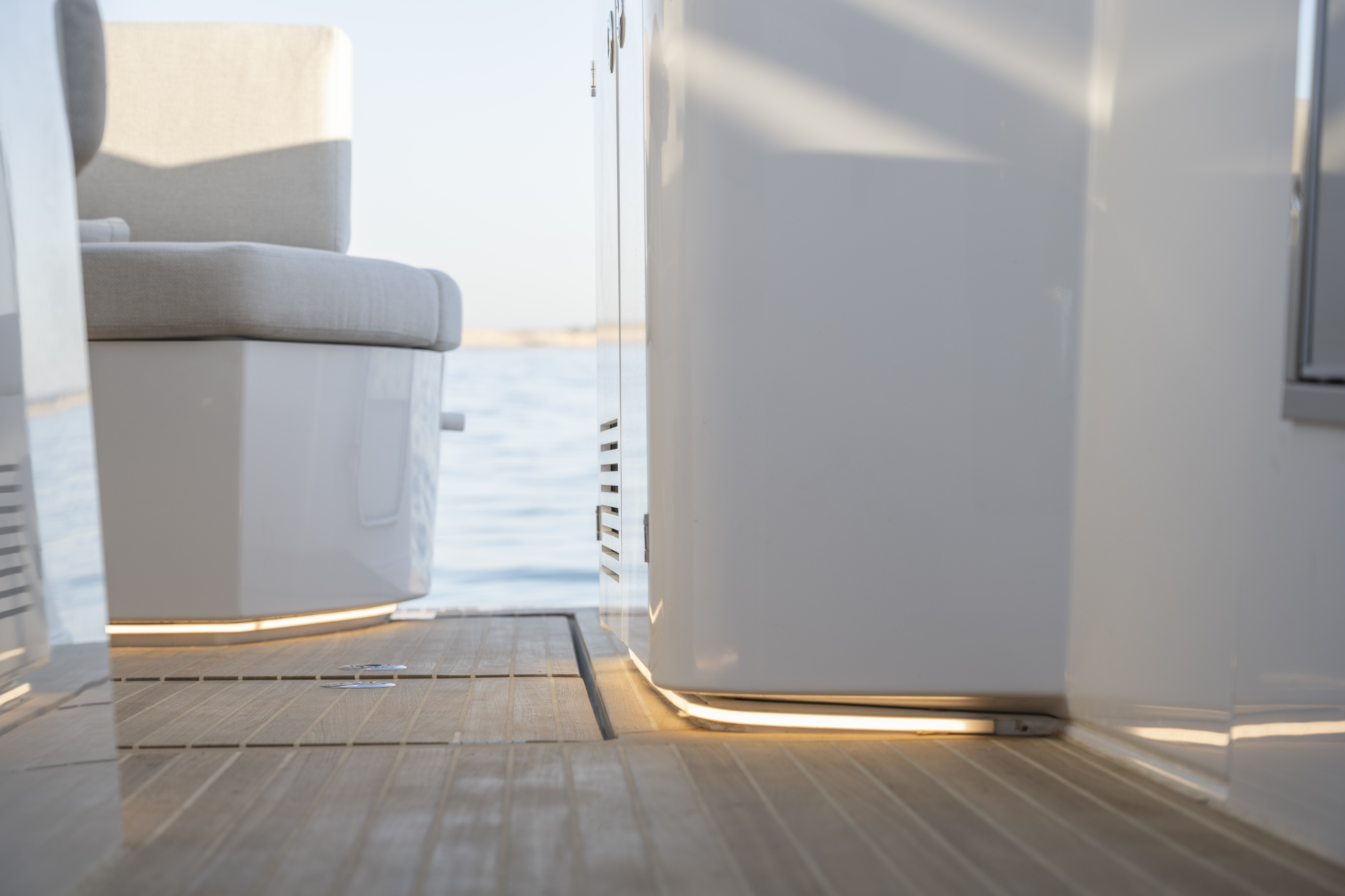 Air Step® technology increases the Gran Turismo 41’s speed and stability, by increasing the volume of air inflow under the hull. She accelerates faster, optimising speeds and reducing fuel consumption. This patent has stood the test of time and offers excellent seakeeping, simpler passage through the waves, linear acceleration and easily handling of curves. The "Air cushion" effect is reinforced by rear pads; V-shaped steps further improving the boat’s stability.