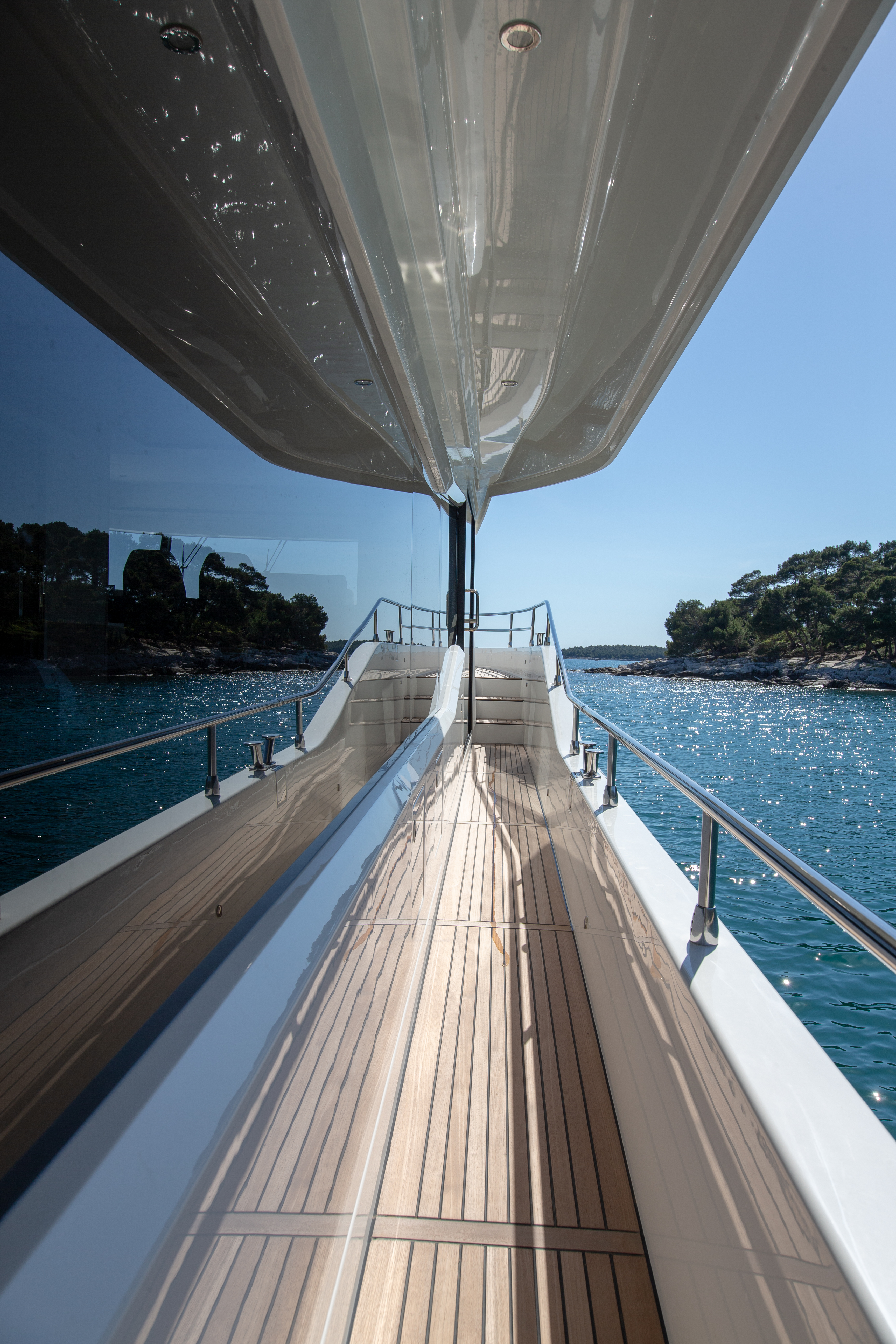 Access hatch to large stowage locker (standard) or skipper cabin (optional) to the aft port side