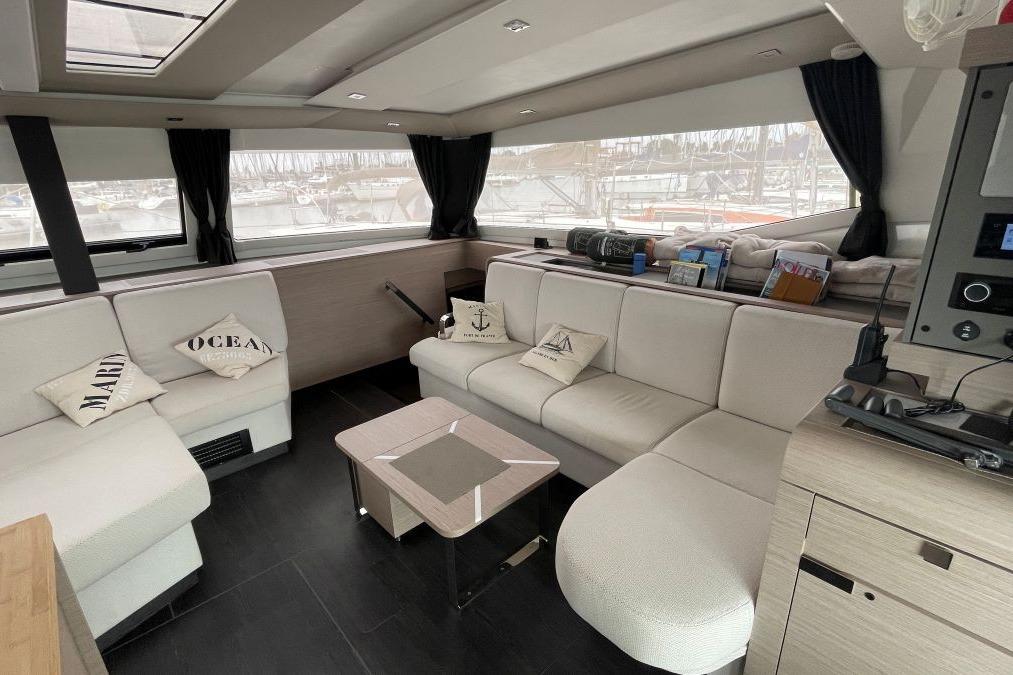 This pre-owned Fountaine Pajot Aura 51 is offered at €1,380,000 VAT included. Fully equipped and meticulously maintained, it is delivered ready to set sail. A rare opportunity on the market for such a recent catamaran.