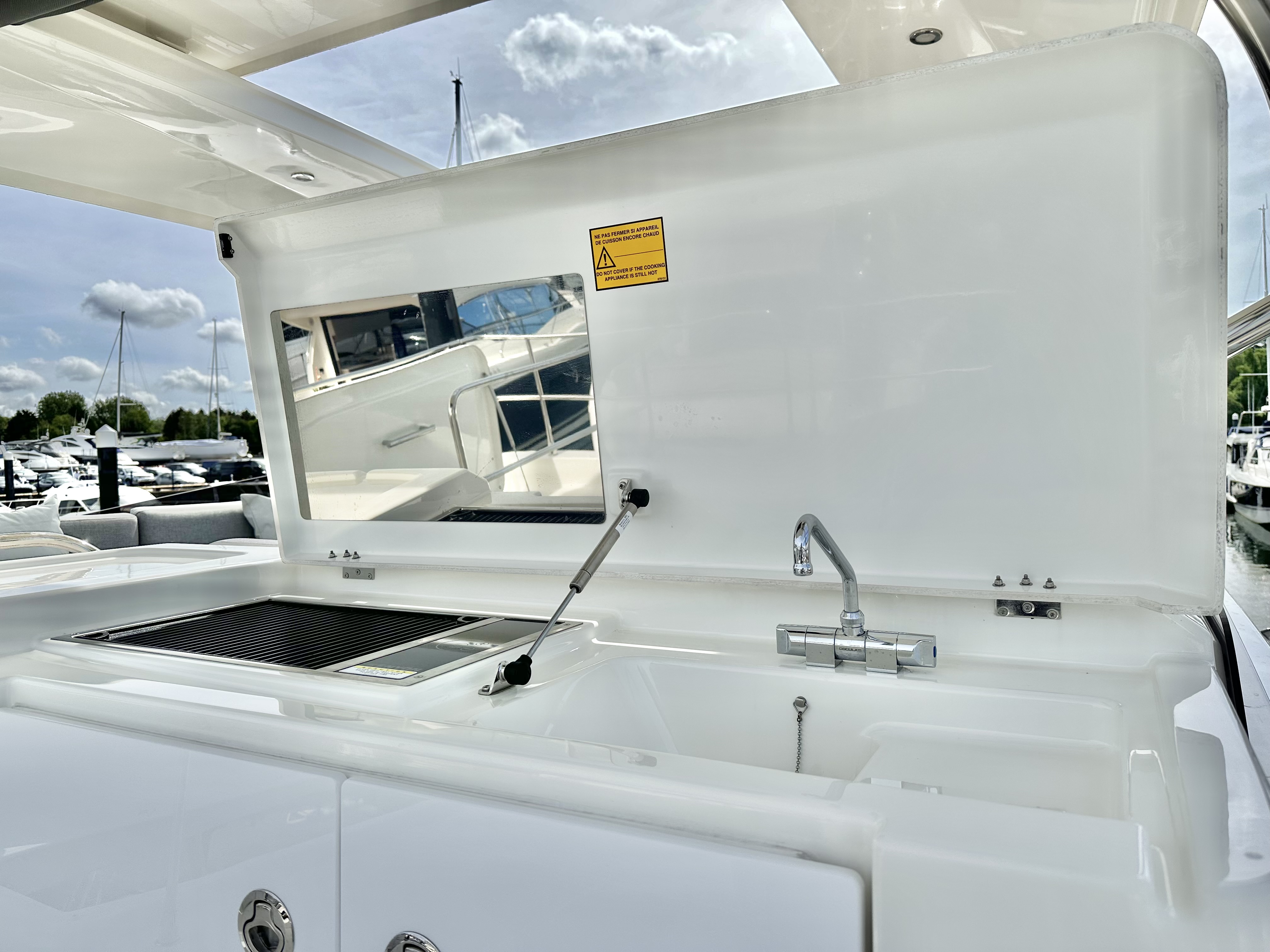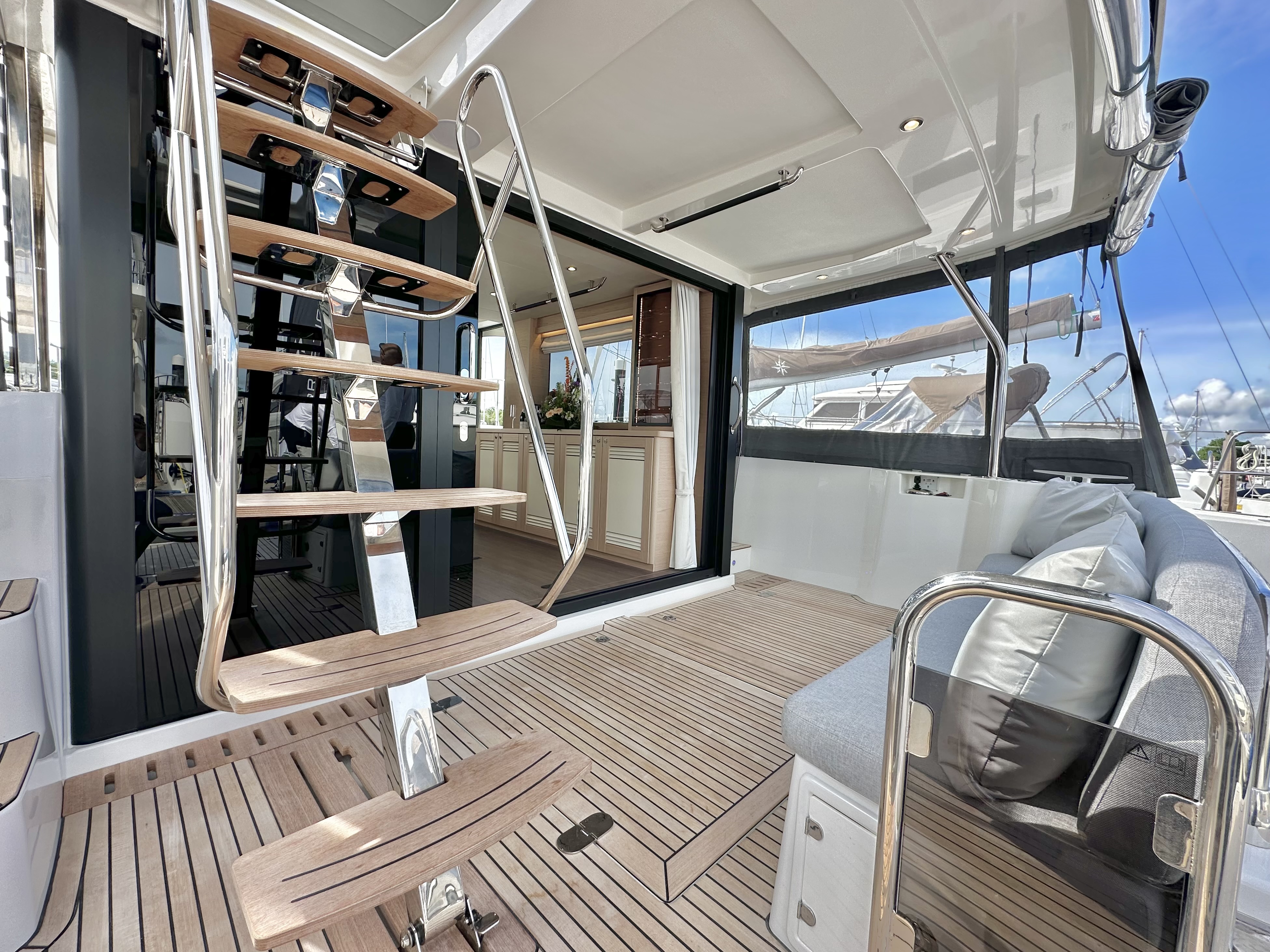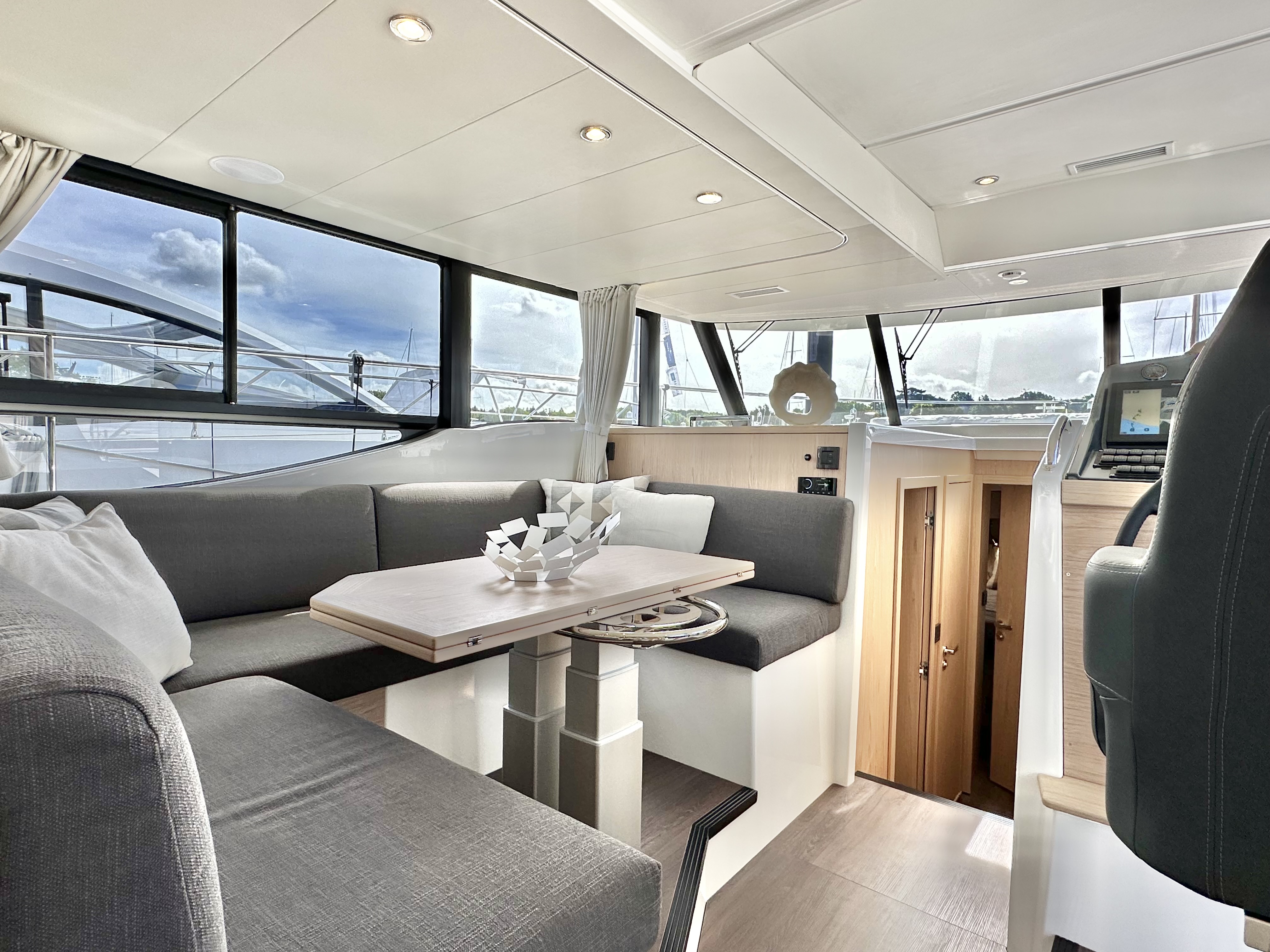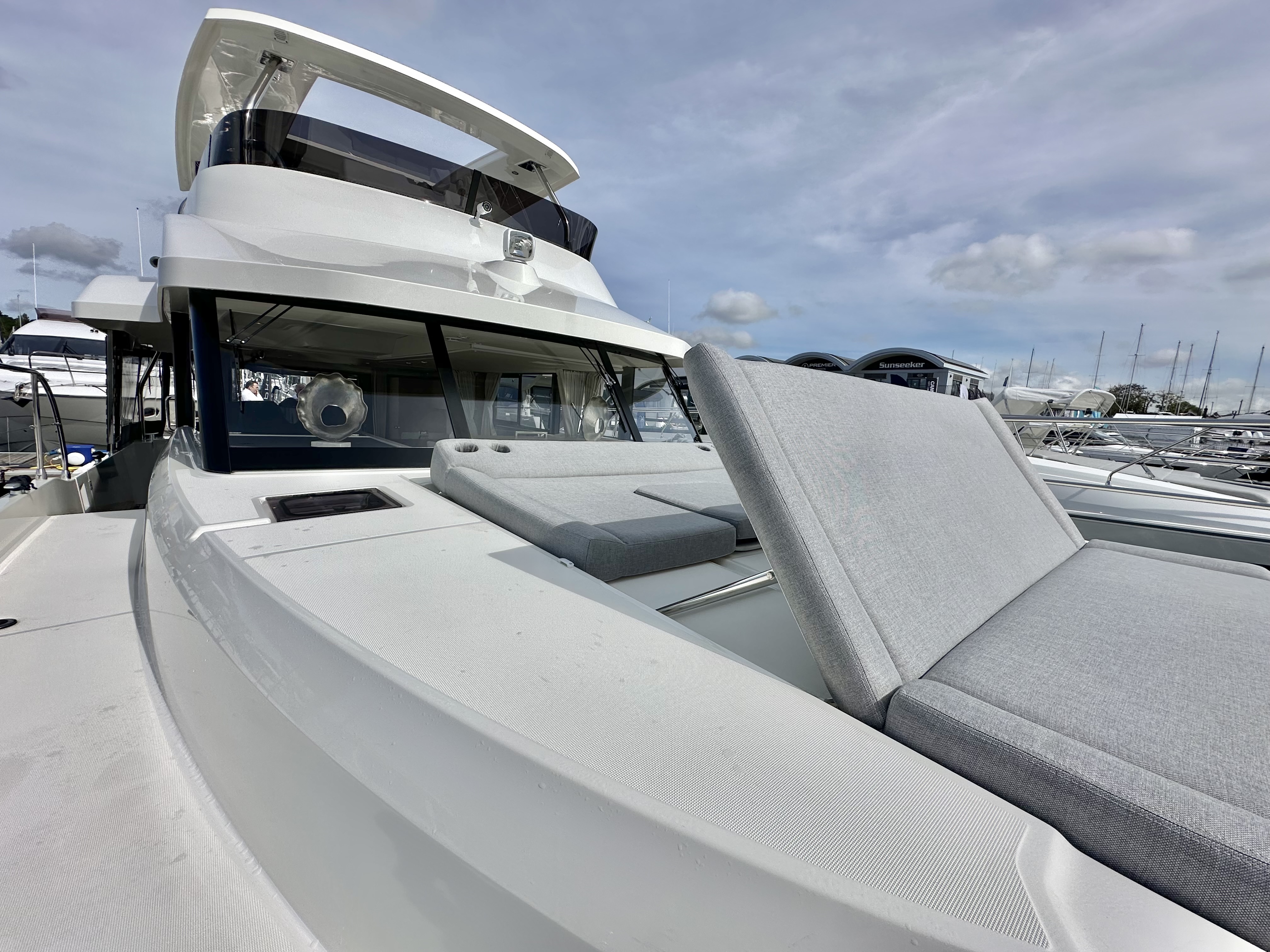 External upholstery: Cockpit cushions, foredeck sunpad and flybridge cushions in Dolce 51
