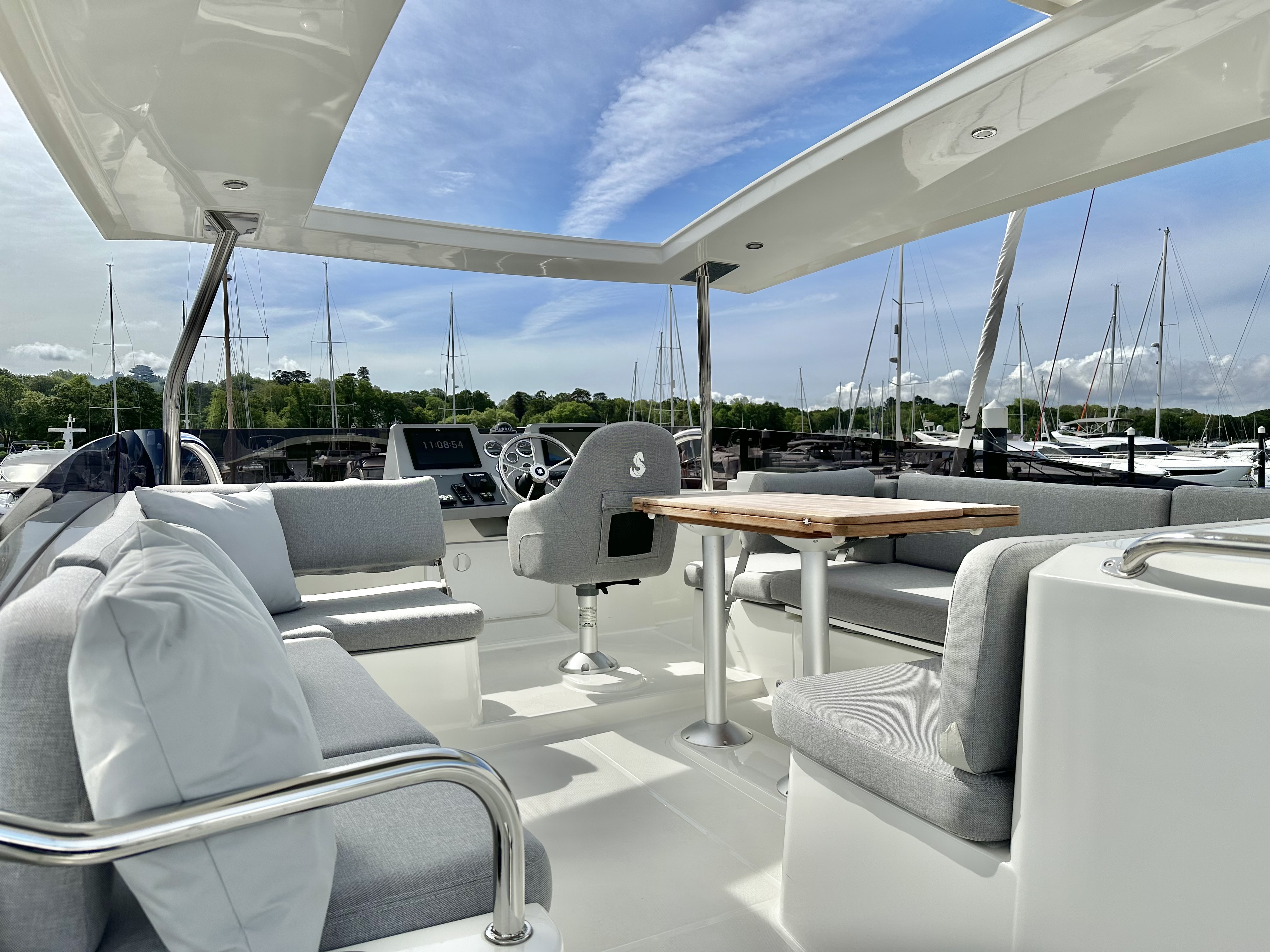This particular example is very highly spec'd including hi-lo bathing platform, hard top, air-conditioning, generator, joystick and comprehensive electronics suite. Full new boat warranties applicable. Competitive part-exchange and finance options are available. Be ready for your next adventures in 2025!