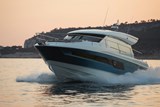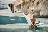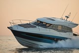 An example of a Prestige 460 S cruiser built by Prestige, France, is available immediately and includes full commissioning and delivery costs. Fitted with the larger option, twin Volvo IPS600 D6 440HP engines with joystick control, handling is a pleasure at close quarters. This Prestige is equipped with the excellence trim, Garmin electronics pack, hydraulic bathing platform and much more. With various interior and exterior upholstery and wood options, large windows allow natural light and evening ambient lighting. Large midship master stateroom and VIP cabin forward with scissor berth conversion, each with en-suite heads and shower, and convertible saloon for two extra berths.