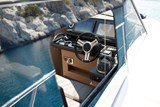 Helm console with engine throttles and manoeuvring joystick, full engine instrumentation, compass and cup holders