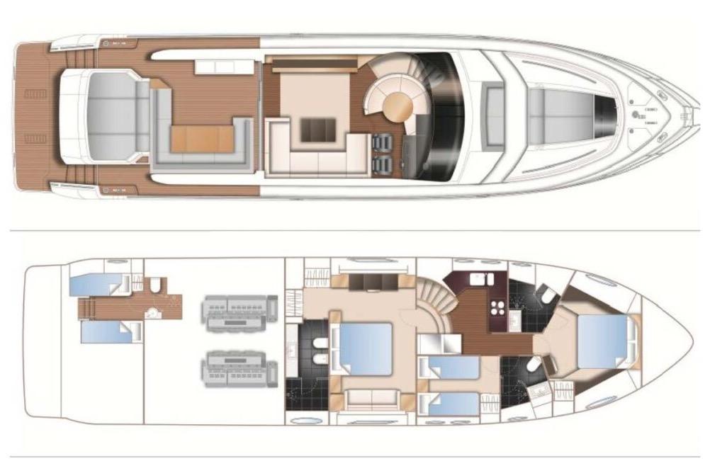 Benefitting from a comprehensive refit in 2024, the yacht features brand new upholstery throughout. She is powered by the most potent engine configuration available for this model—twin Caterpillar C32 ACERT 1723 hp engines—delivering a thrilling maximum speed of 37 knots.