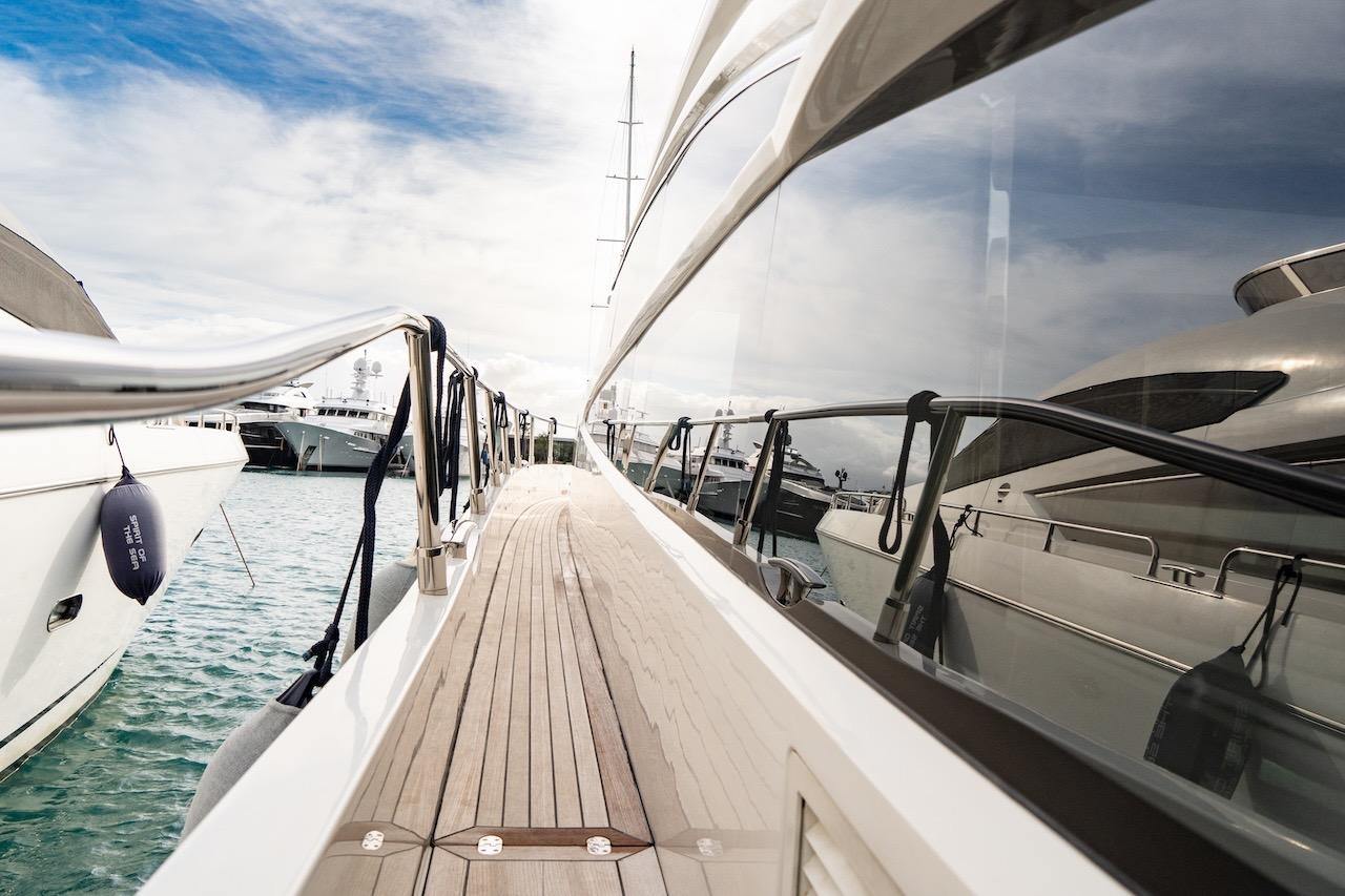 Her interior is finished in satin-finish Rovere oak, offering a classic yet contemporary feel. With its spacious 3-cabin-3-head layout, large electronically operated hardtop, and extensive recent technical upgrades, this vessel is ready for immediate seasonal use.