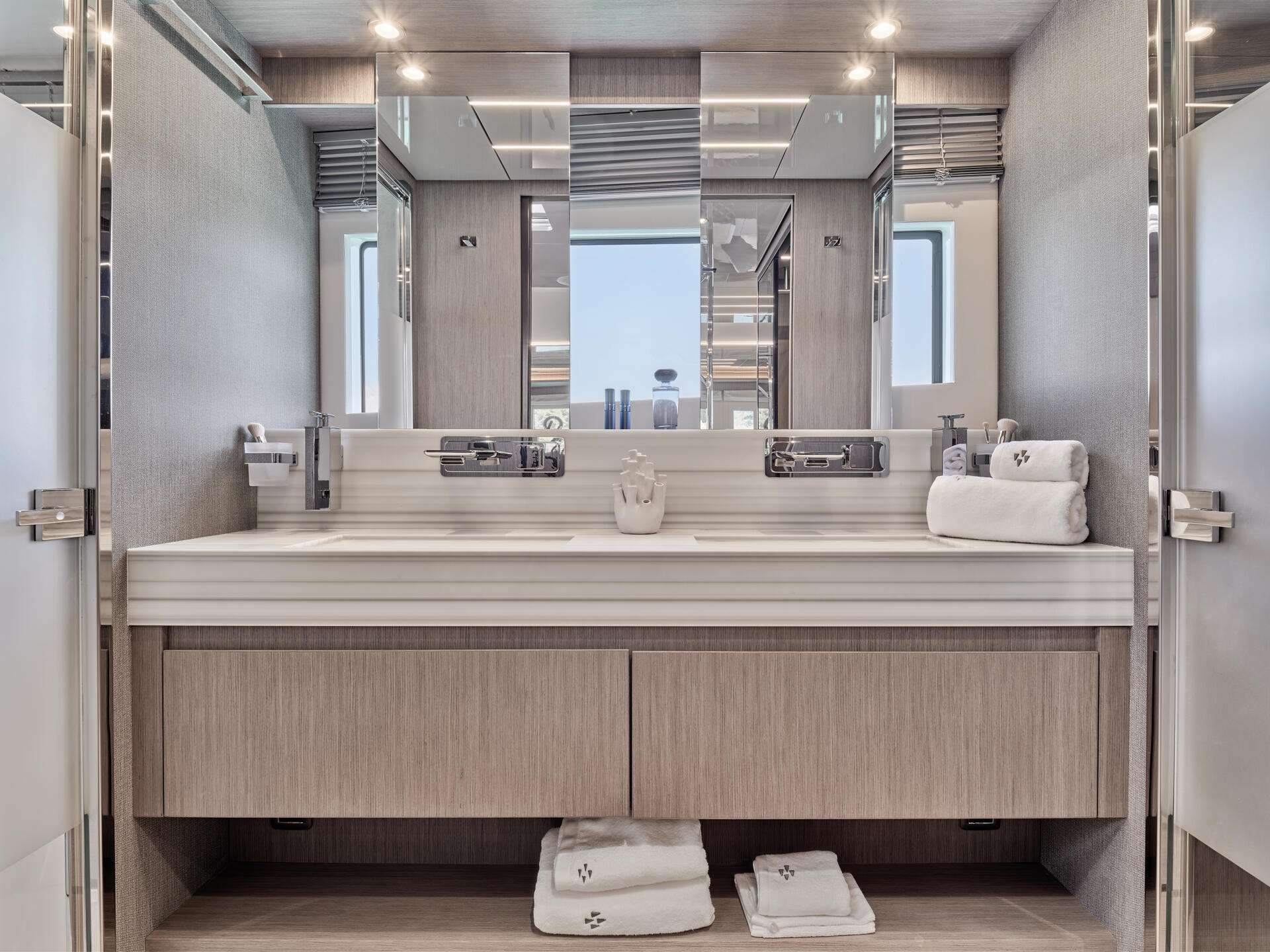 Powered by twin Volvo D8-600hp diesel engine with joystick controls for ease of close quarter handling, the catamaran hull design of the M8 not only guarantees reduced fuel consumption and greater range but also natural stability and excellent handling at sea.