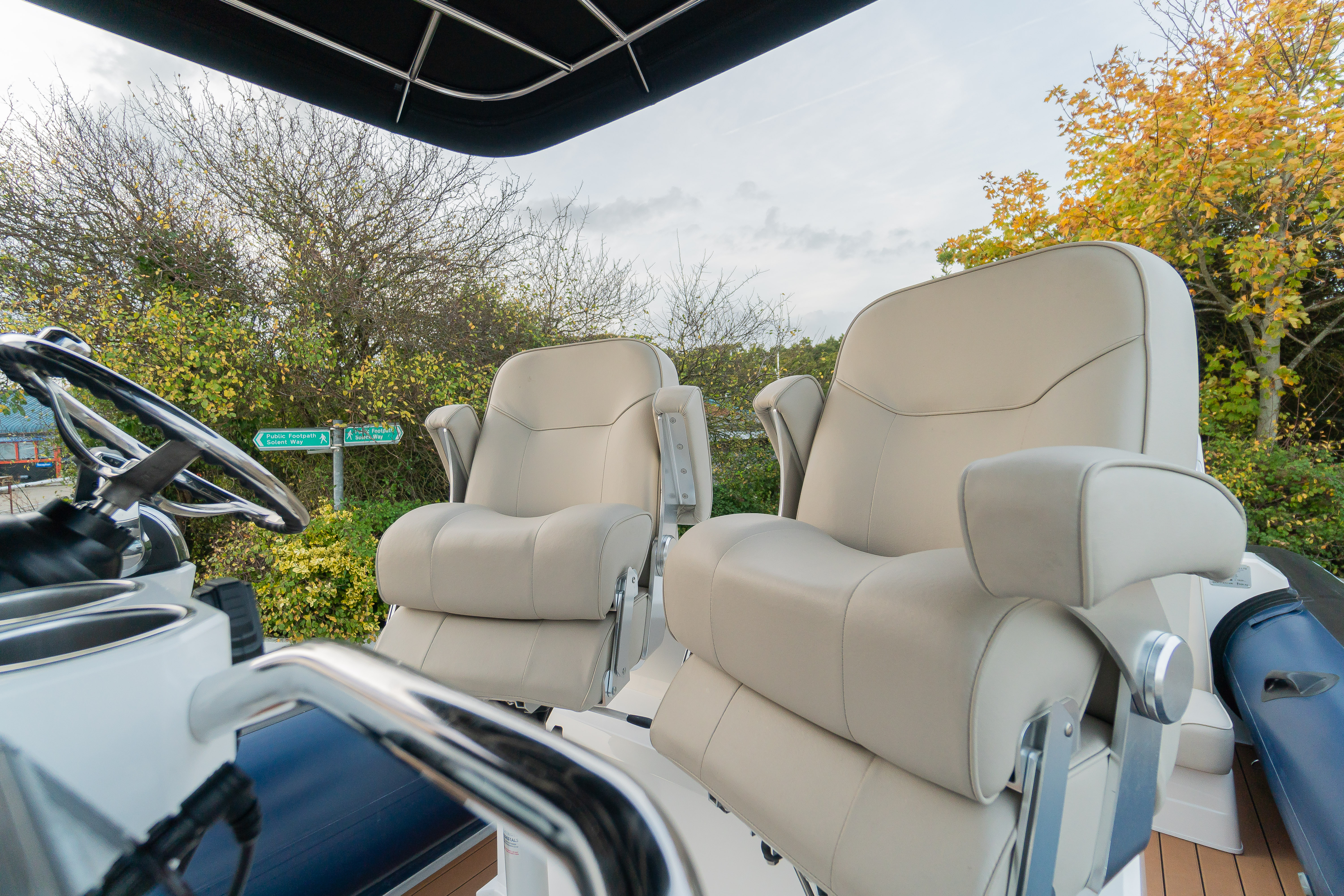 Dual soft rider luxury bolster seats at helm (in Sand)