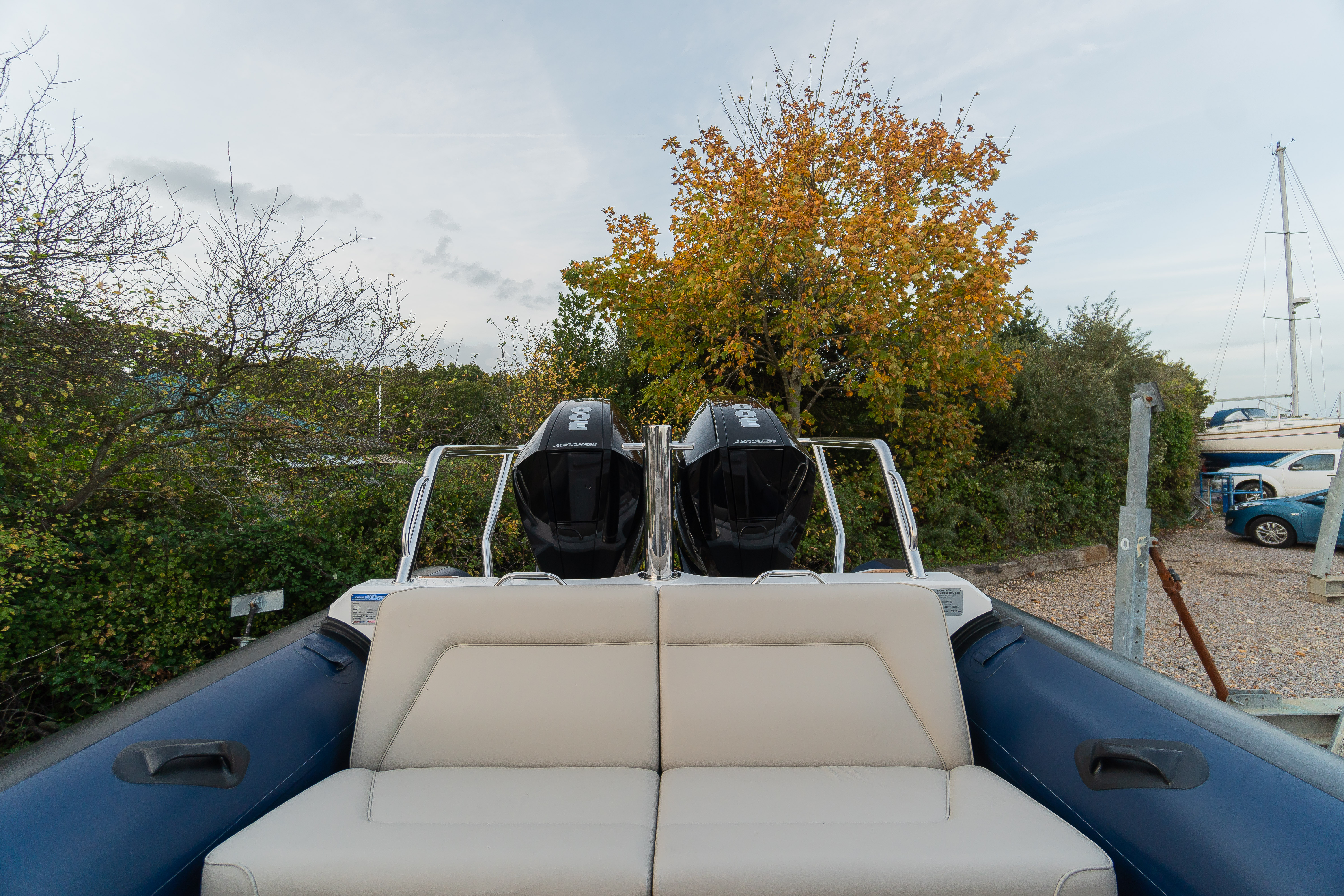 This boat packs the ultimate Protector punch: she is full of optional extras including a cockpit wet bar, modular luxury transom seats and electric flush toilet with holding tank. She'll turn heads wherever you drop the automatic stainless steel under-bow anchor, then again when the twin Mercury Verado 300 hp engines launch you back from where you came. This is the ultimate 310 Chase and is available for immediate delivery. Currently ashore in Port Hamble, contact us to arrange your viewing, sea trials are also available.