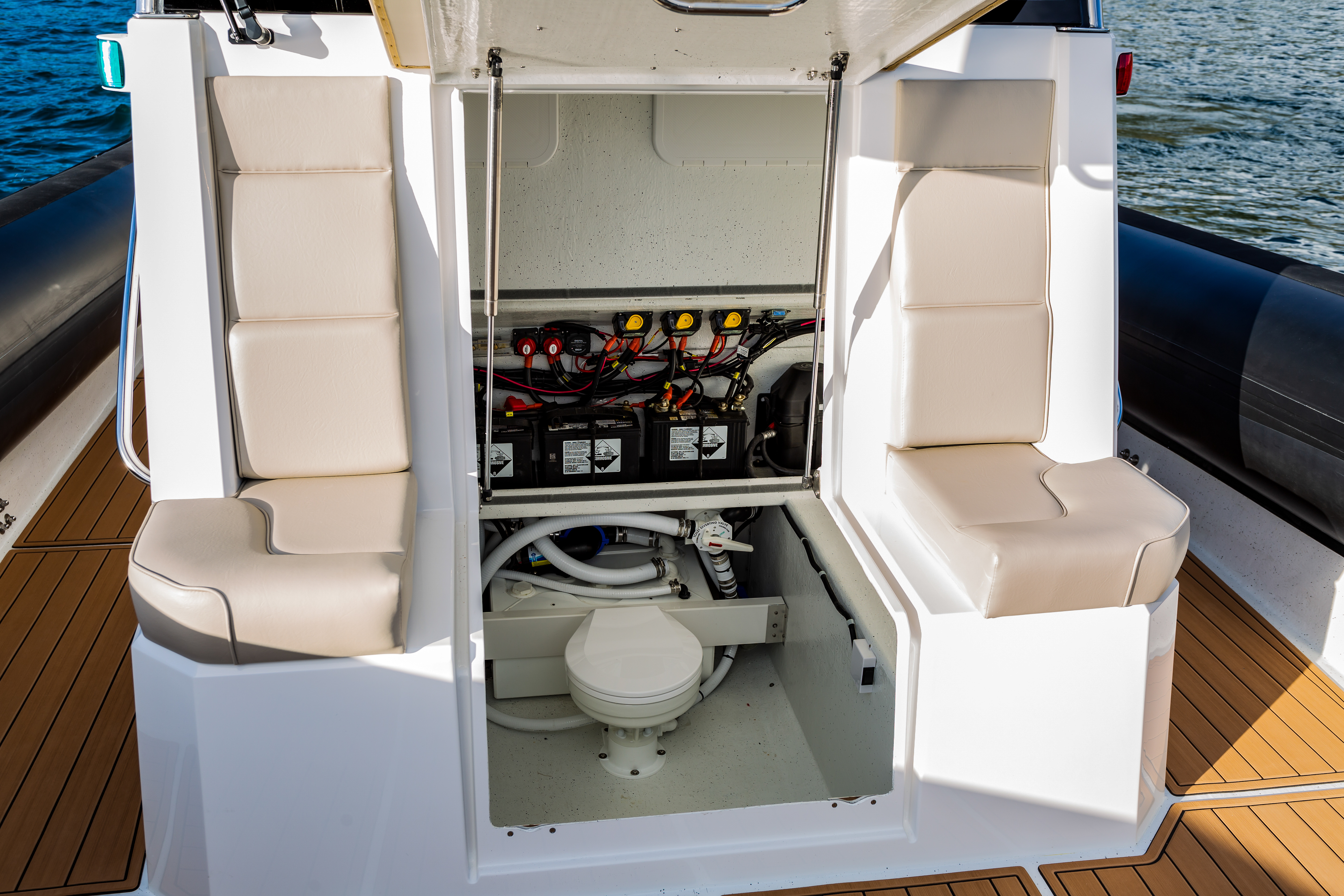 Fuel filler stations on transom (port and starboard)