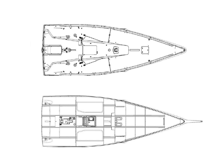 THE KEEL - Deep keel, with a straight blade, aimed at minimum drag. Supplementary leeway reduction is provided by the foils.