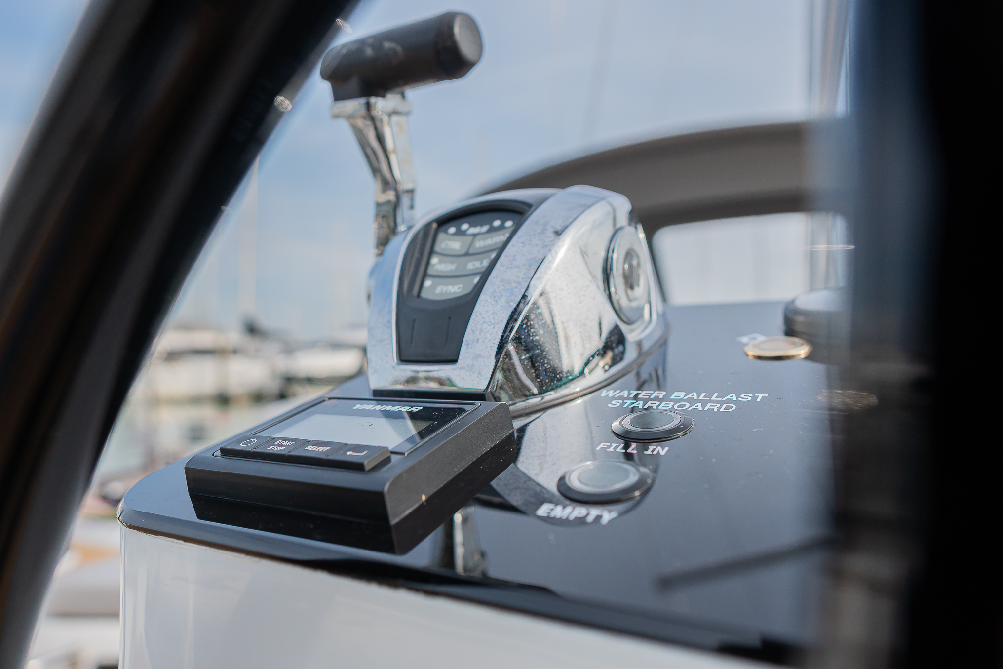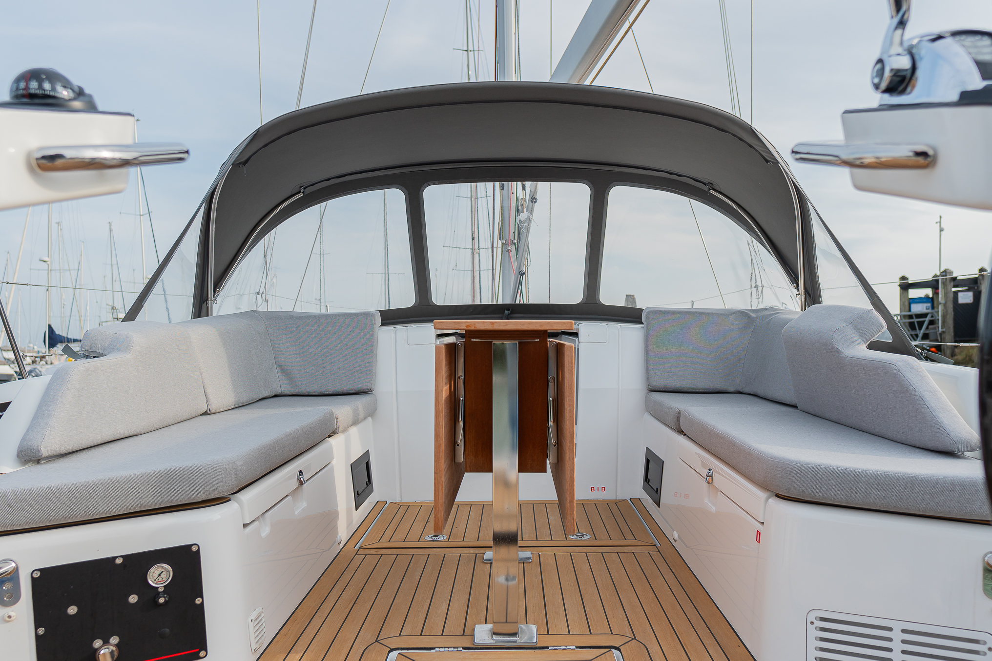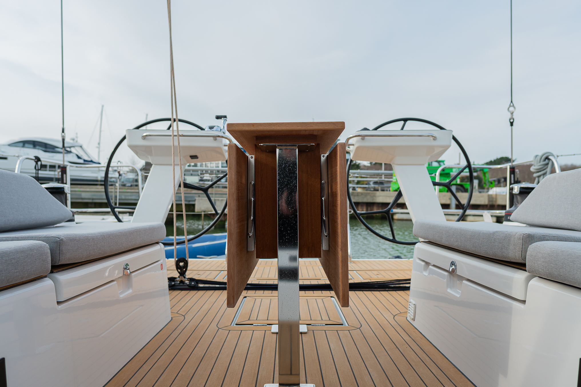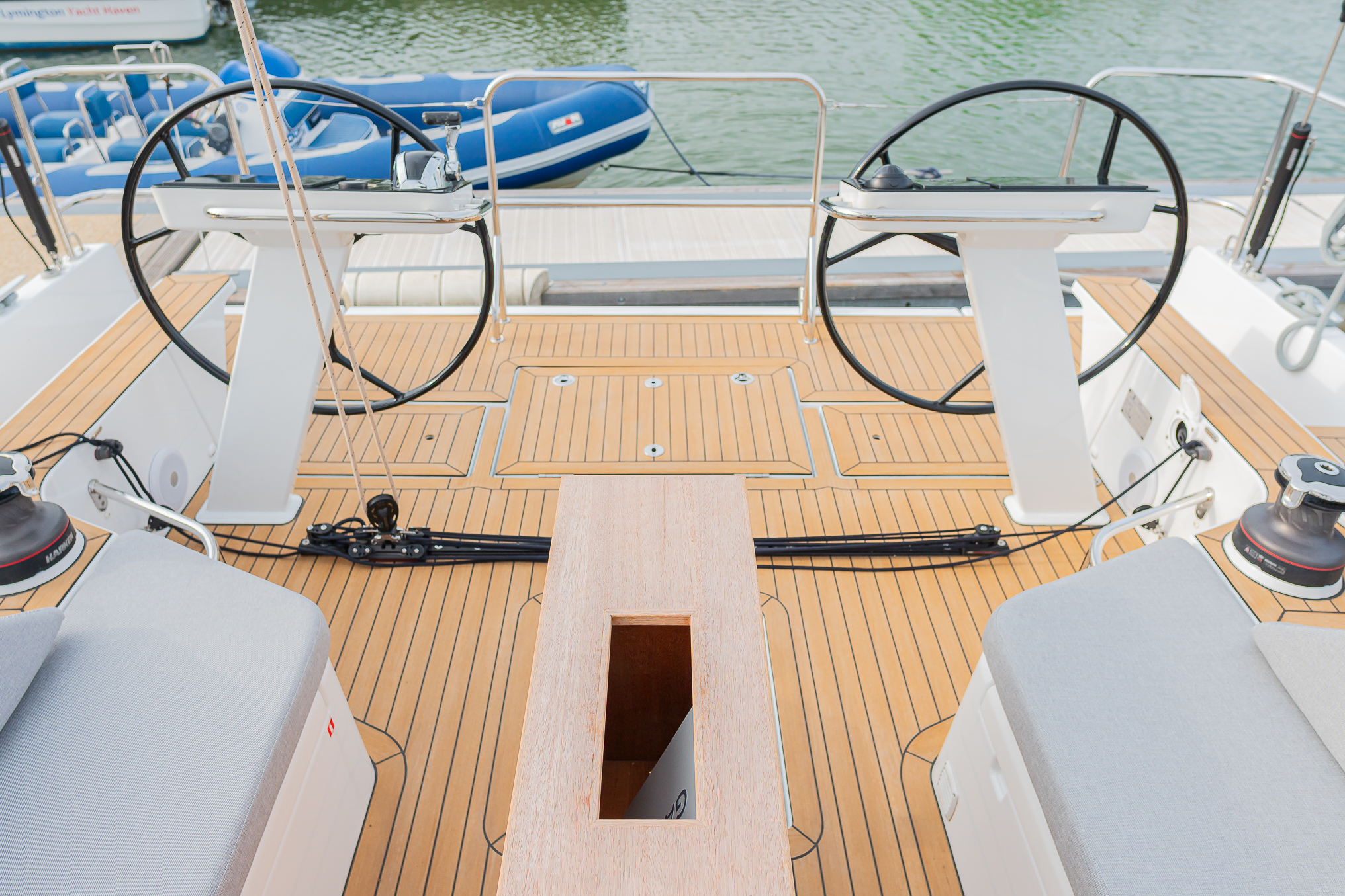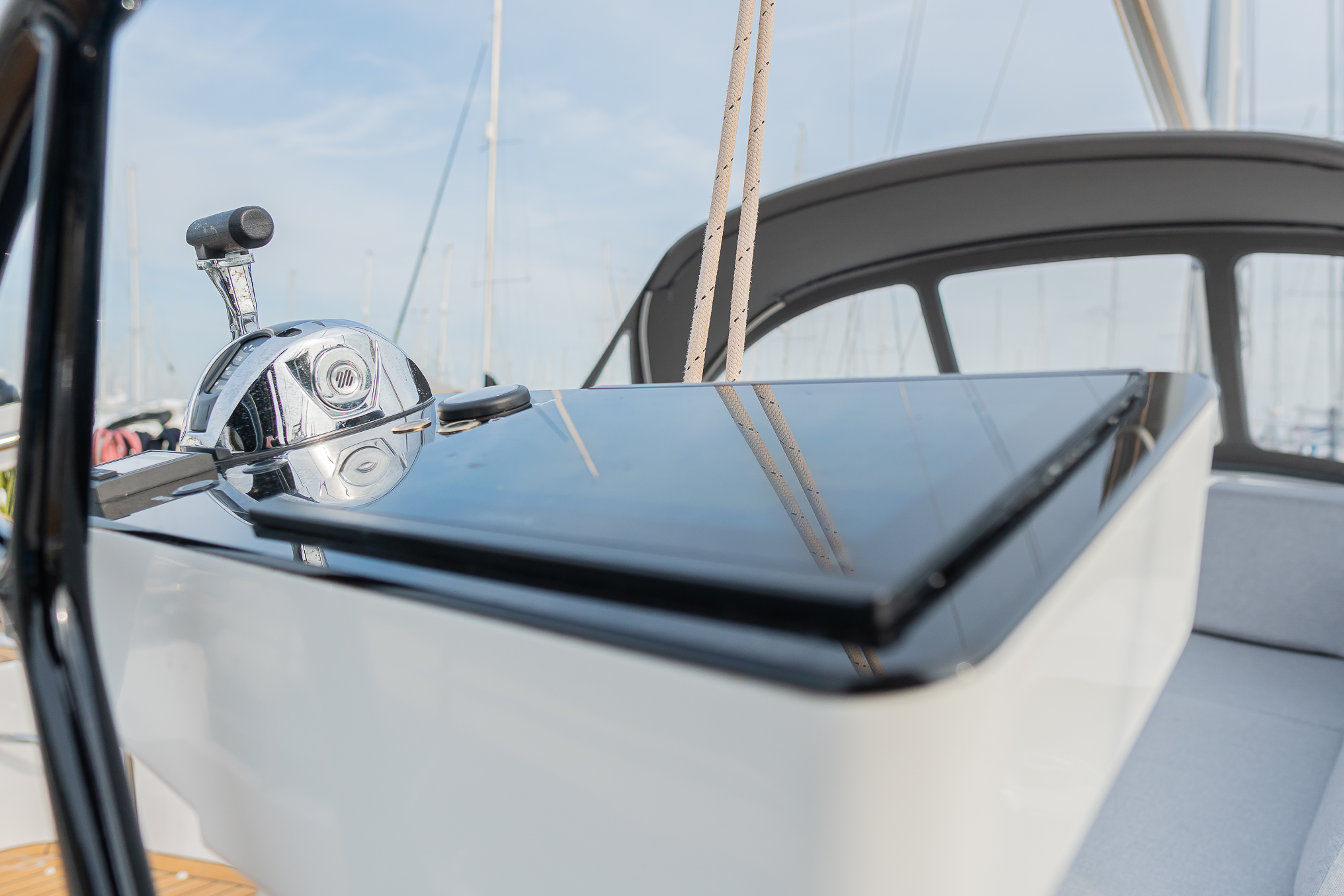 The cockpit is thoughtfully designed for social sailing, featuring four winches positioned conveniently forward of the helm and easy access to spacious side decks. The sail plan is expertly crafted to achieve a perfect balance between the mainsail and foresail, ensuring optimal sailing performance.