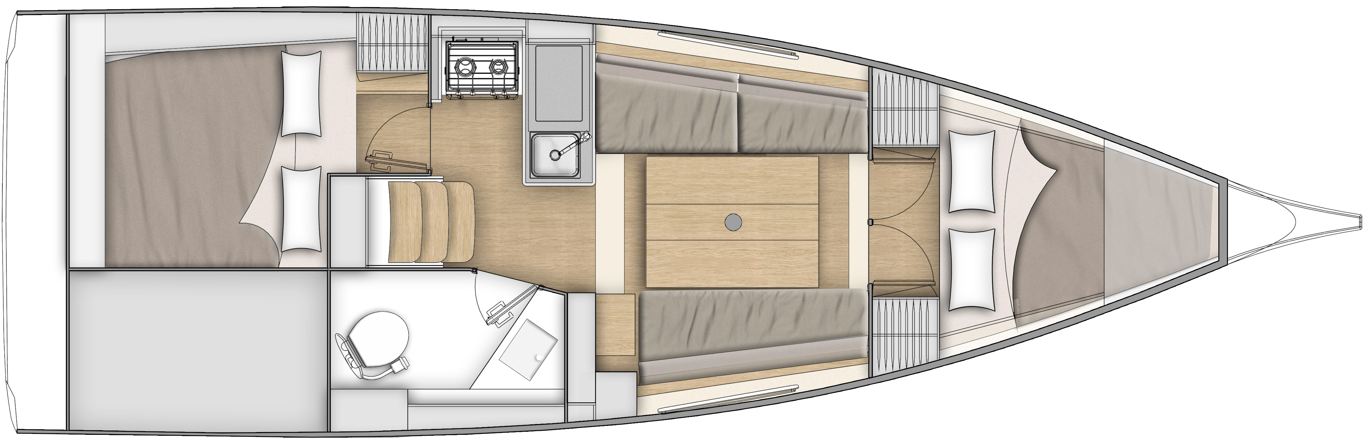 Equipped with a deep iron keel and twin rudders along with twin wheel steering, a full hull chine, a large and very sociable cockpit plus a generous sail plan which completes the package of the perfect family cruiser. Below decks, this model in the Oceanis range boasts a spacious saloon bathed in natural light, a fully equipped galley and two large double cabins. With luxurious and modern fixtures and fittings throughout, the Beneteau Oceanis 30.1 really does offer an excellent living space for extended periods onboard.