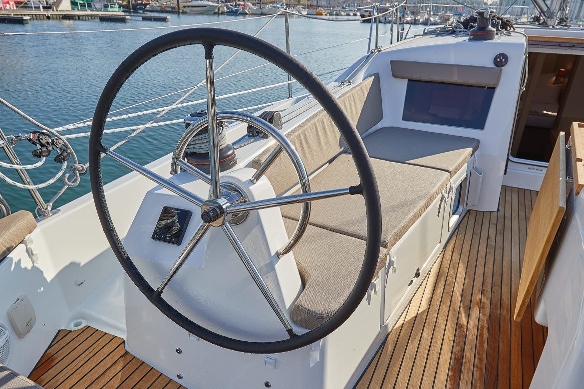 Sailing was never so enjoyable aboard a 41-foot sailboat. With her powerful hull, the Sun Odyssey 410 perfects the art of sailing and comfort on board. The model is particularly secure, featuring side decks without obstacles and comfortable coaming. All is as with her predecessors from the 8th generation, the Sun Odyssey 410 benefits from a lower boom, which facilitates access to the sail and increases the sail area. Centralized winches, which can be controlled directly from the cockpit, also contribute to safety on board.