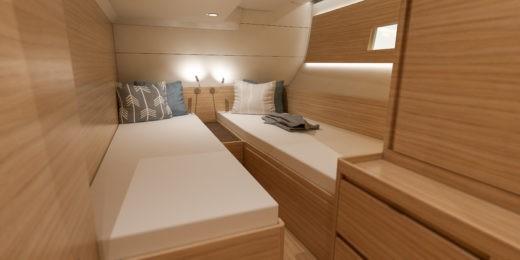 In the X56 all weight saved is used to increase the yacht’s stability enabling the crew to have a more relaxed time and to feel safer and more comfortable. The fact, that the hull is cured, baked at high temperatures for almost 24 hours, not only optimises the hull material properties but also minimises the risk of the darker coloured hull surfaces to suddenly start posturing, losing the surface finish.