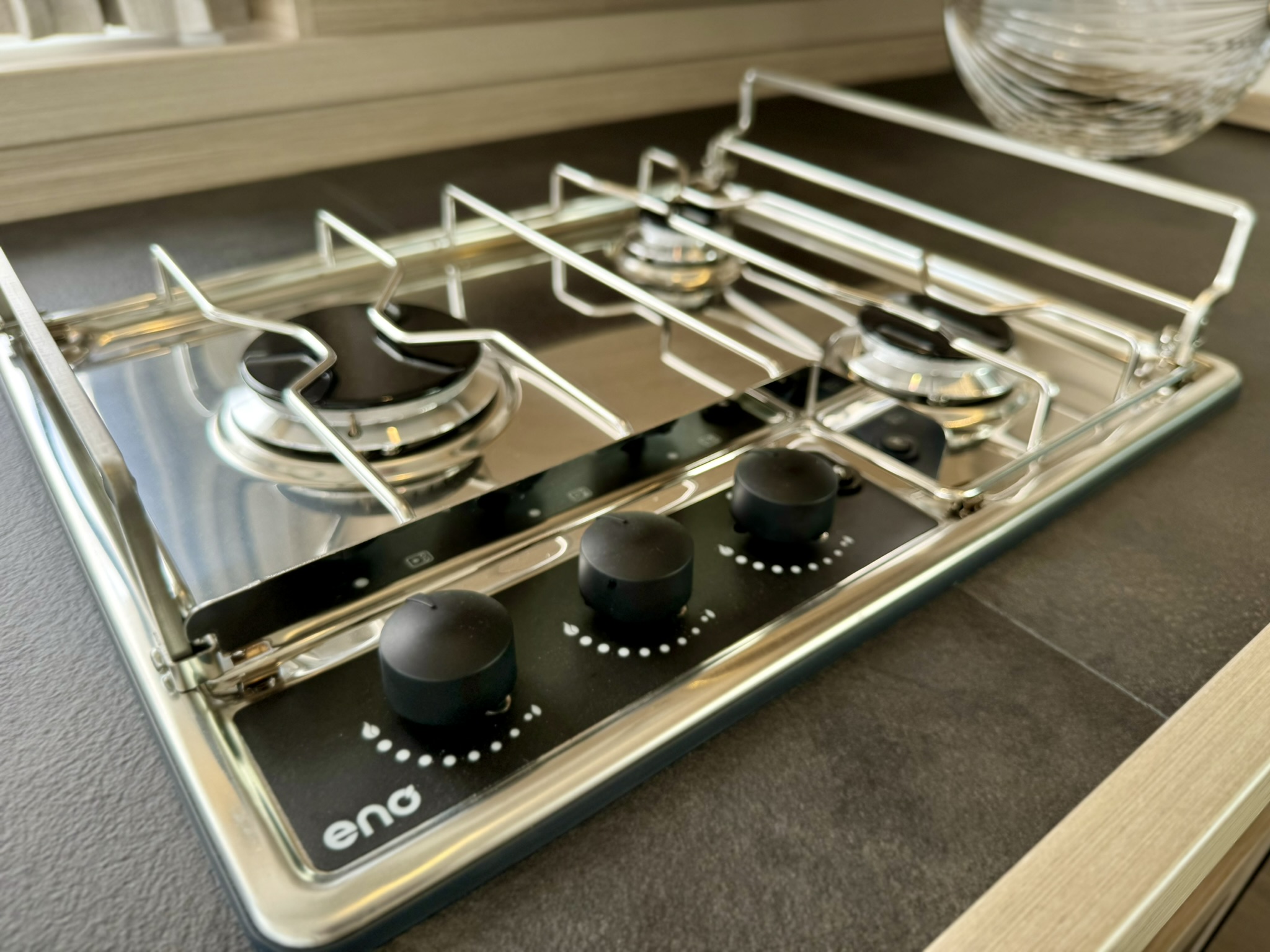 Three burner gas hob, gas oven under worktop