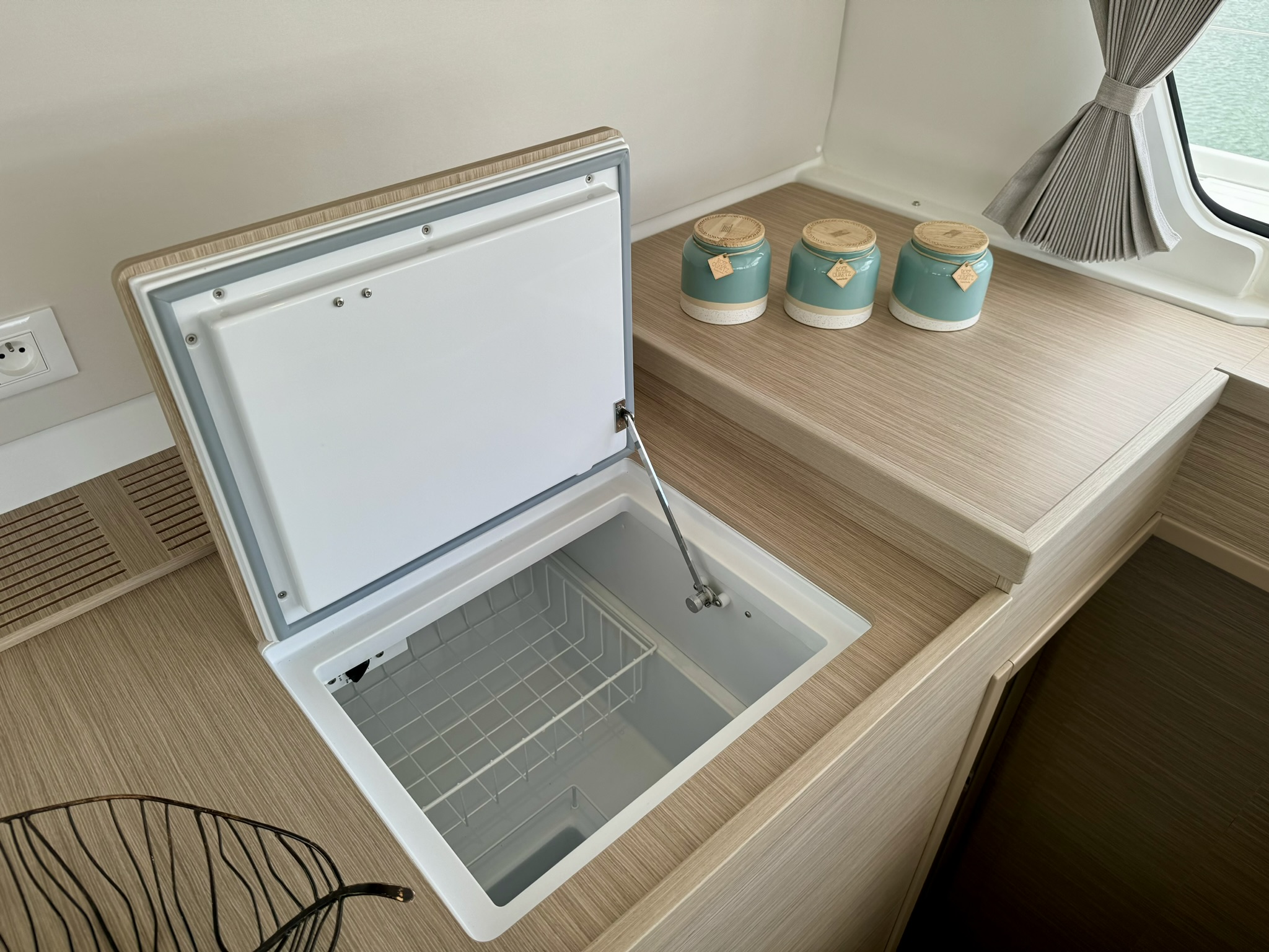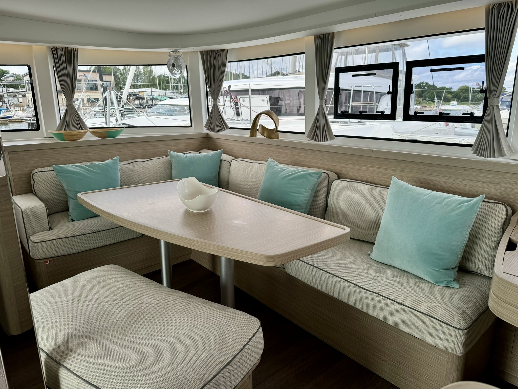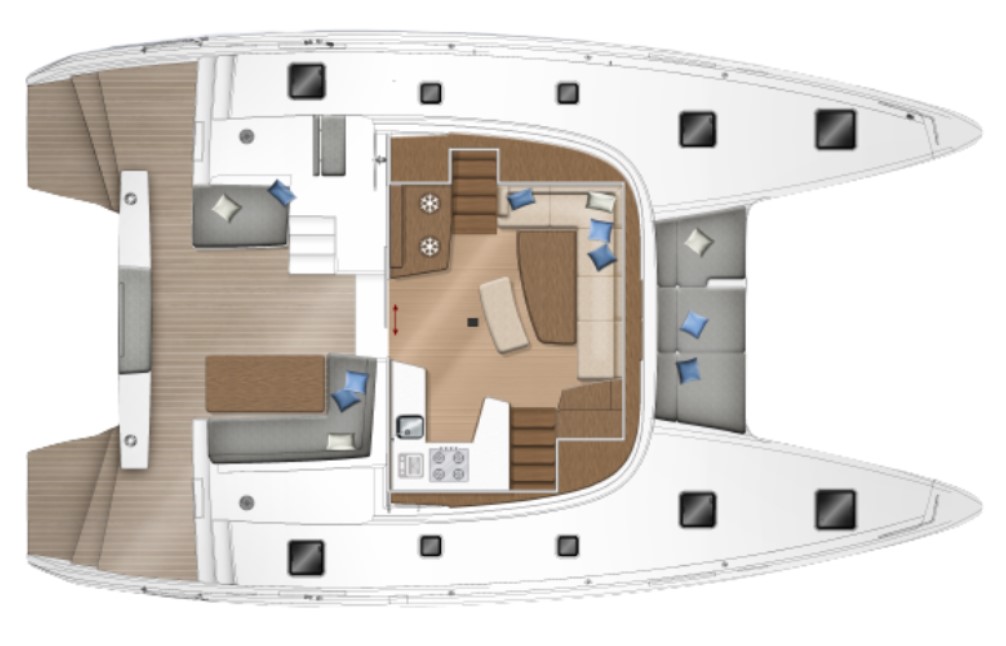 The bright and airy saloon is flooded with natural light and has class leading galley, seating, work surfaces and storage.