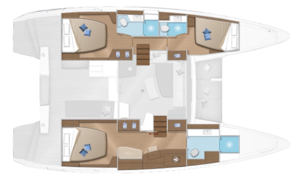 With the owner's layout, as is the case with this Lagoon 42, the accommodation is unrivalled offering three double cabins, all with ensuite heads compartments.