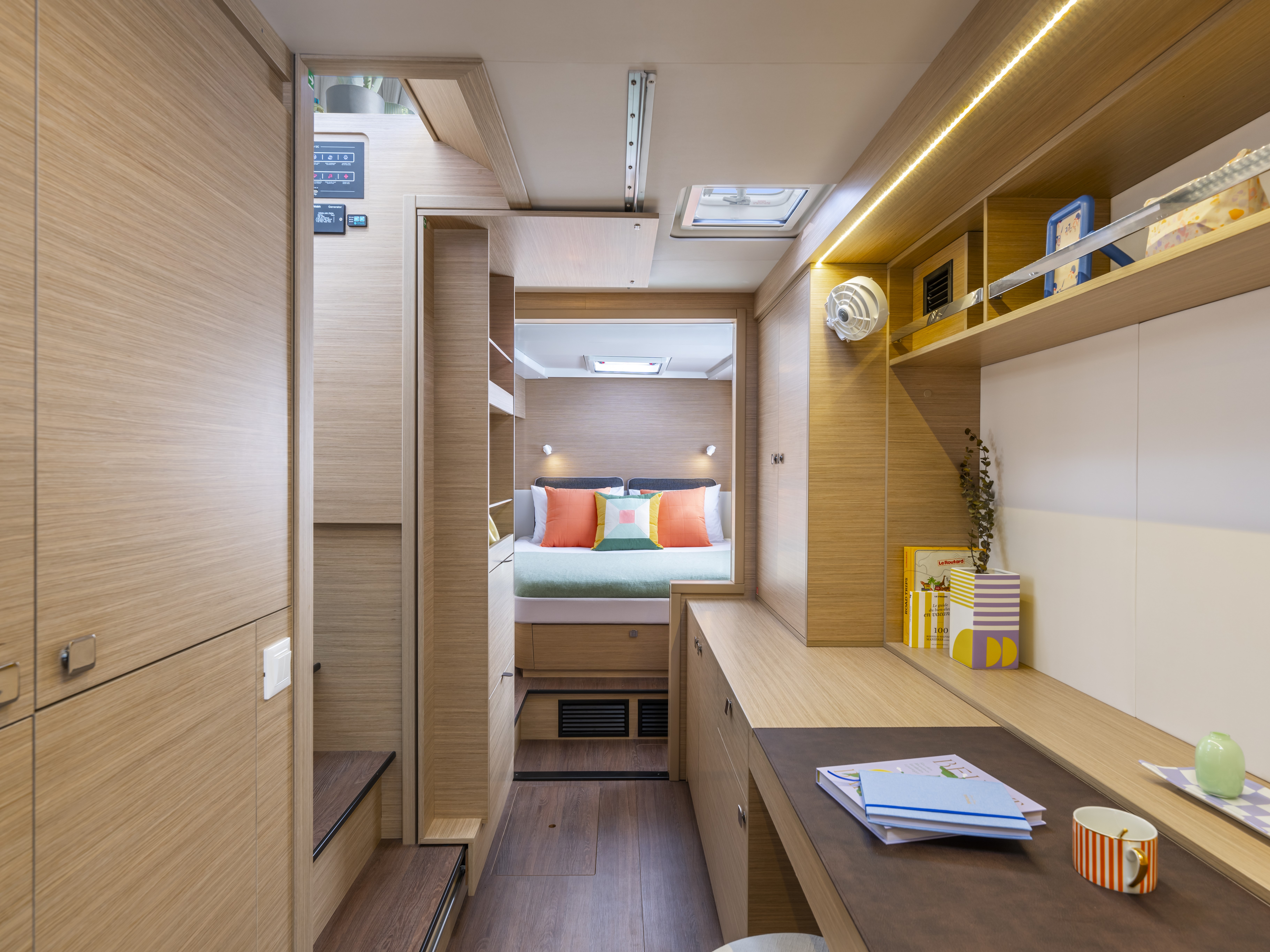 Aft cabin with island bed, hanging locker and storage
