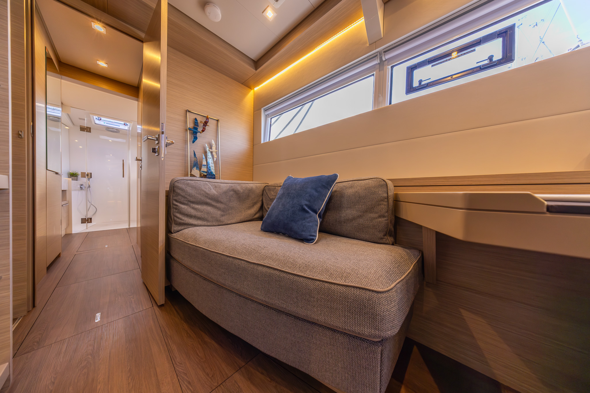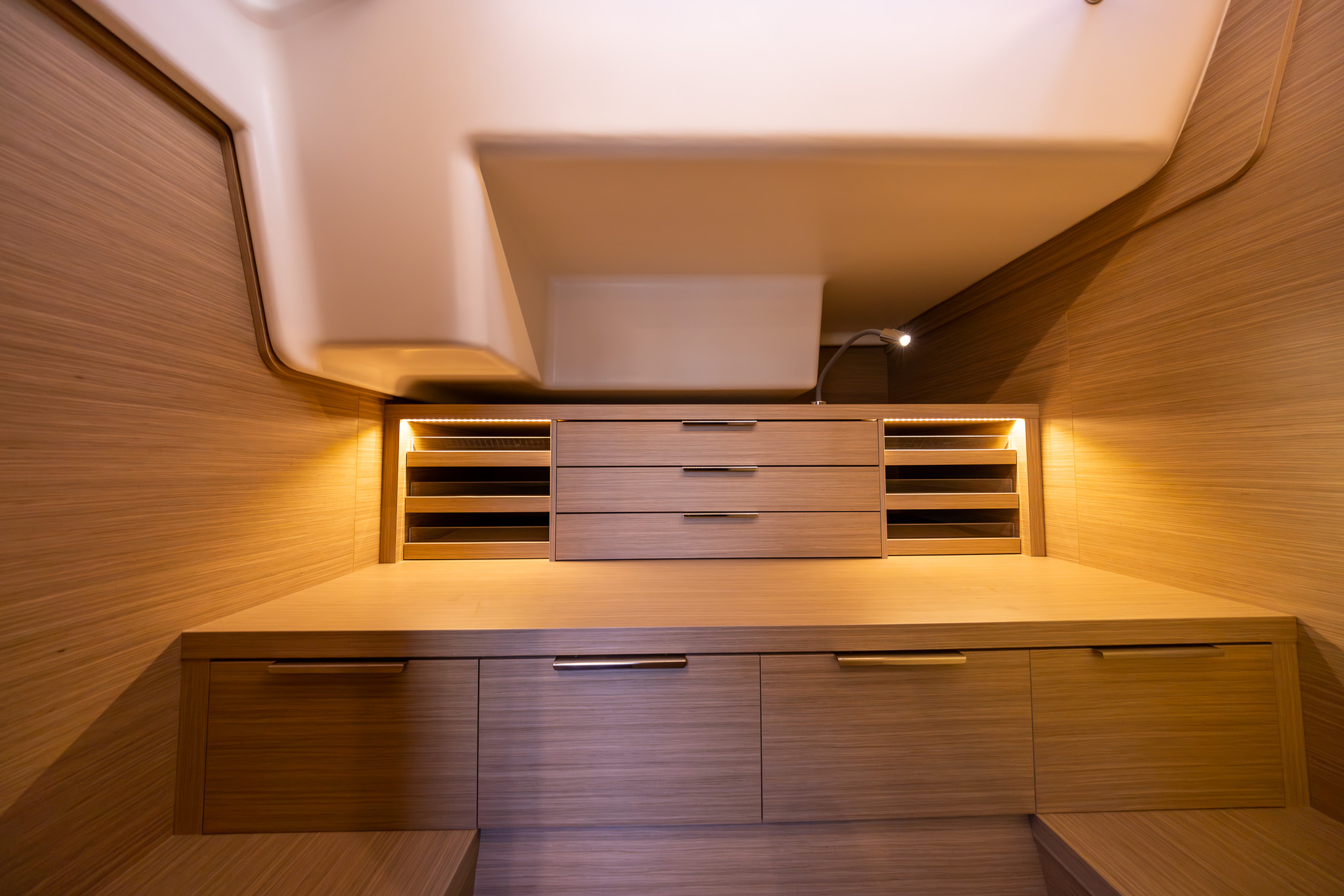 The owner's cabin benefits as well from this layout optimization and proposes, as standard, a large walk-in dressing room