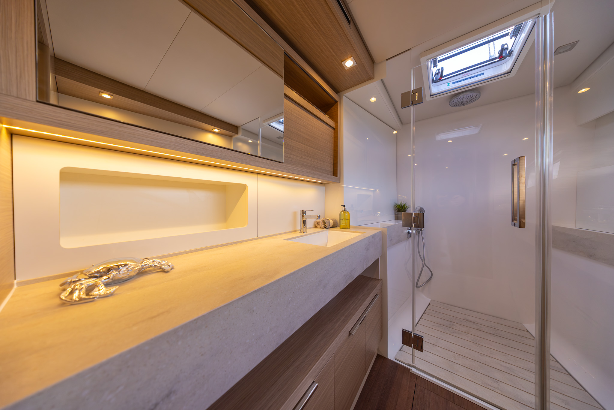 Space and storage are fabulous, with the dressing room area providing unrivalled storage for a yacht of this size